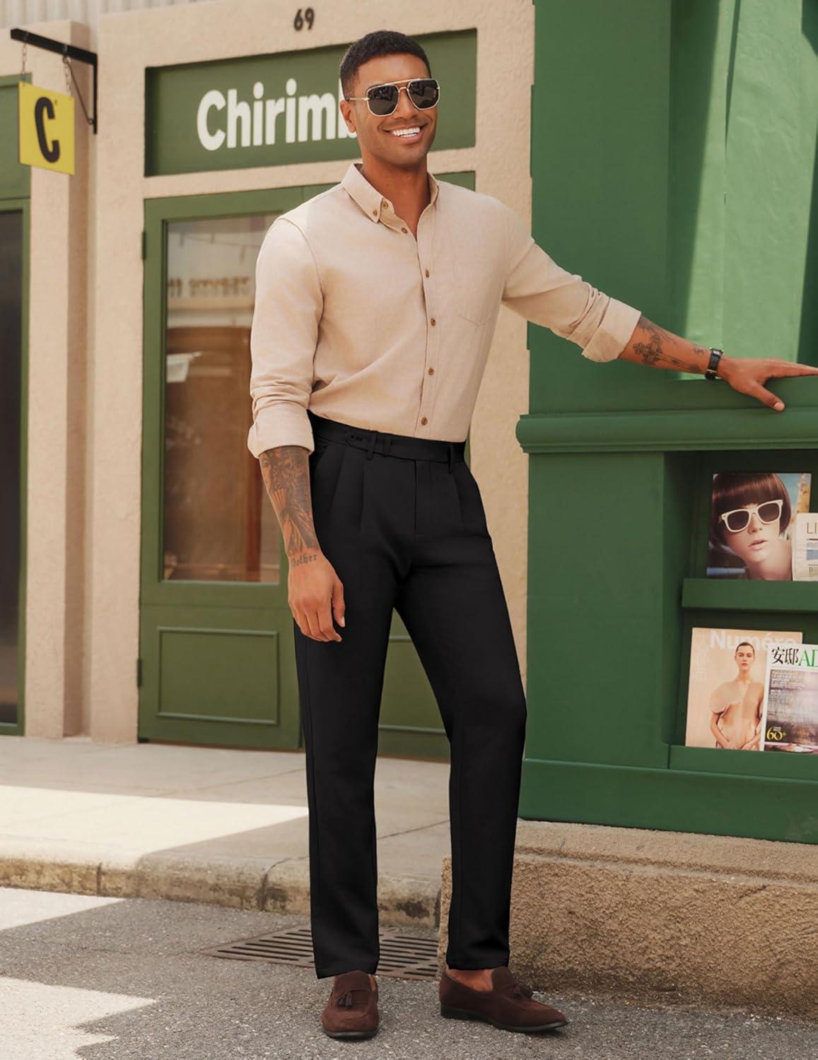 Be the first to review “PJ PAUL JONES Mens Dress Pants Vintage Pleated Tapered Cropped Trousers Extended Waist Dress Pant Casual Slacks(Black)”