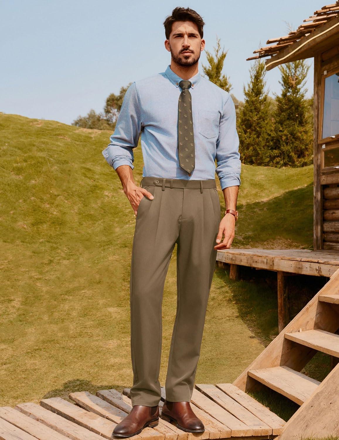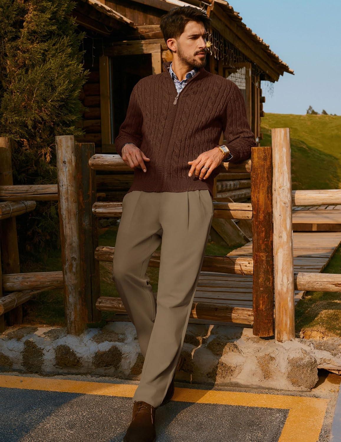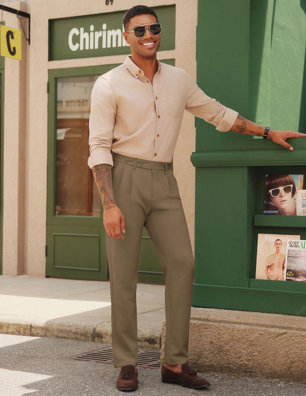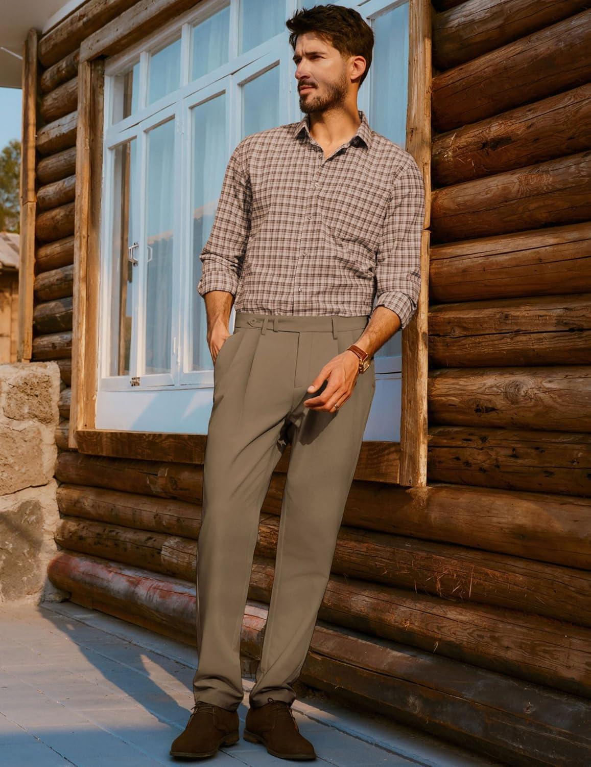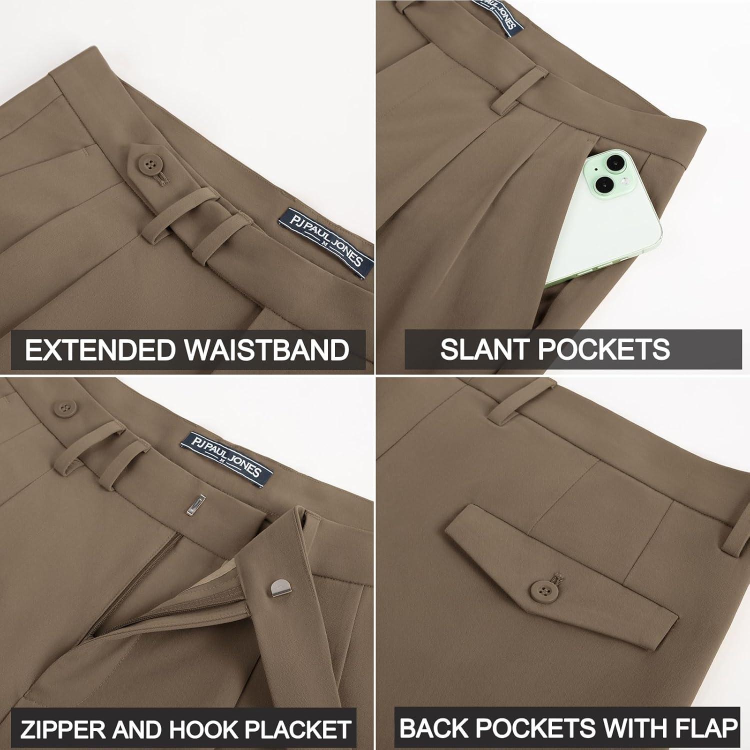PJ PAUL JONES Mens Dress Pants Vintage Pleated Tapered Cropped Trousers Extended Waist Dress Pant Casual Slacks(Brown)