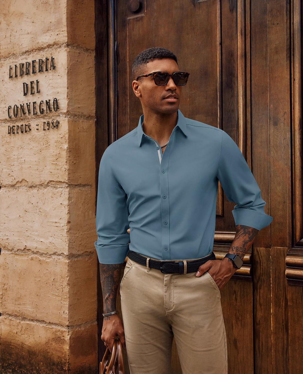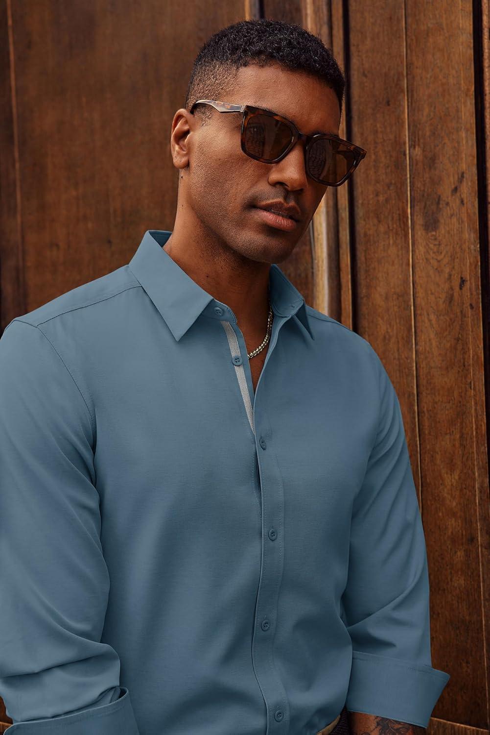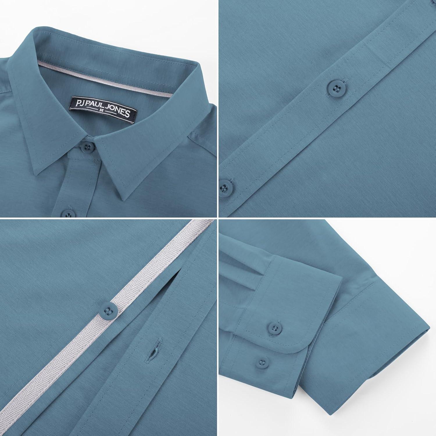 PJ PAUL JONES Mens Dress Shirts Wrinkle Free Stretch Button Down Shirt Casual Long Sleeve Business Shirts(Blue)
