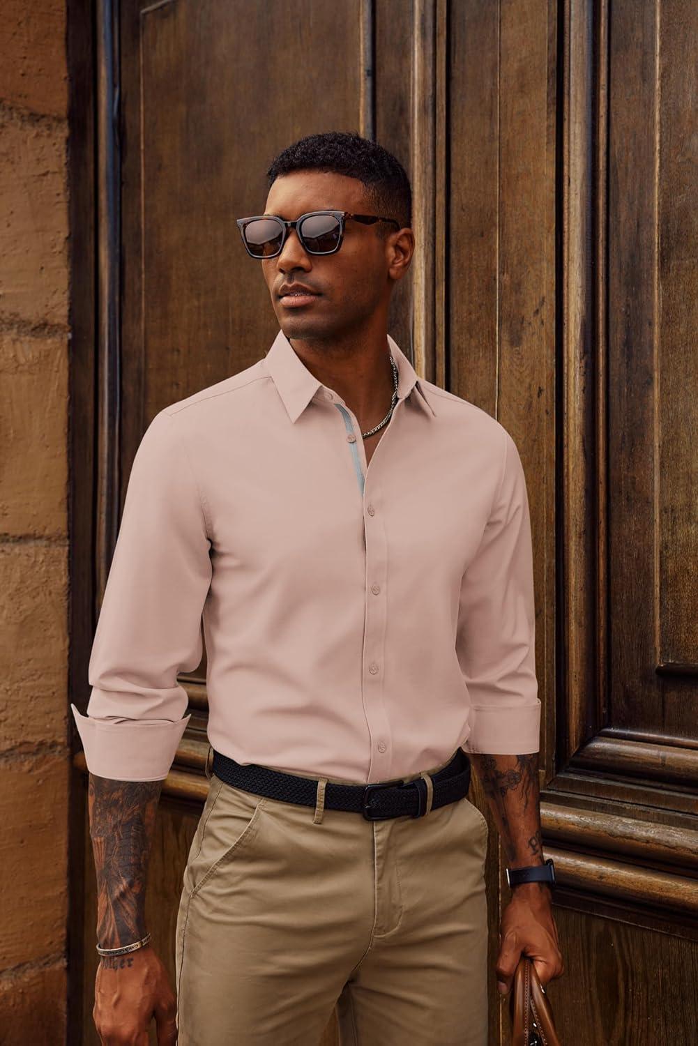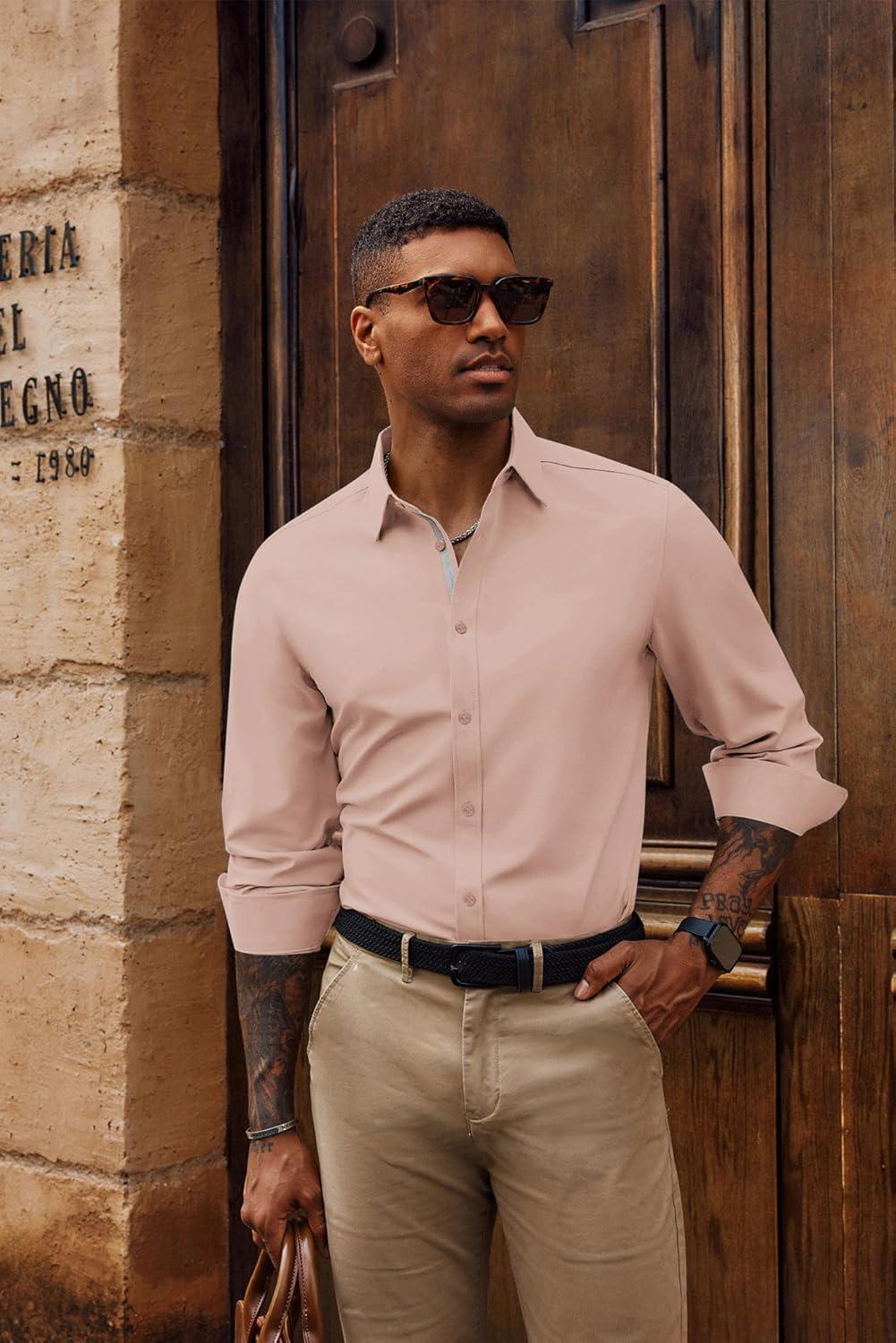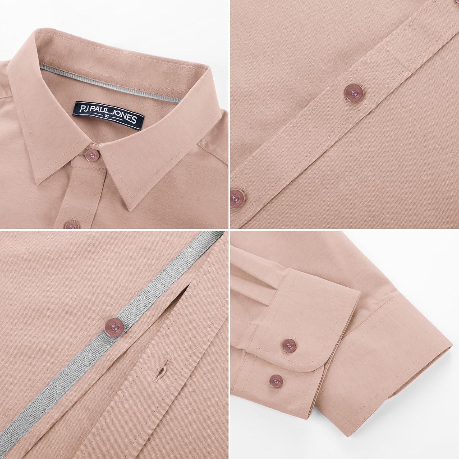 PJ PAUL JONES Mens Dress Shirts Wrinkle Free Stretch Button Down Shirt Casual Long Sleeve Business Shirts(Blush Pink)