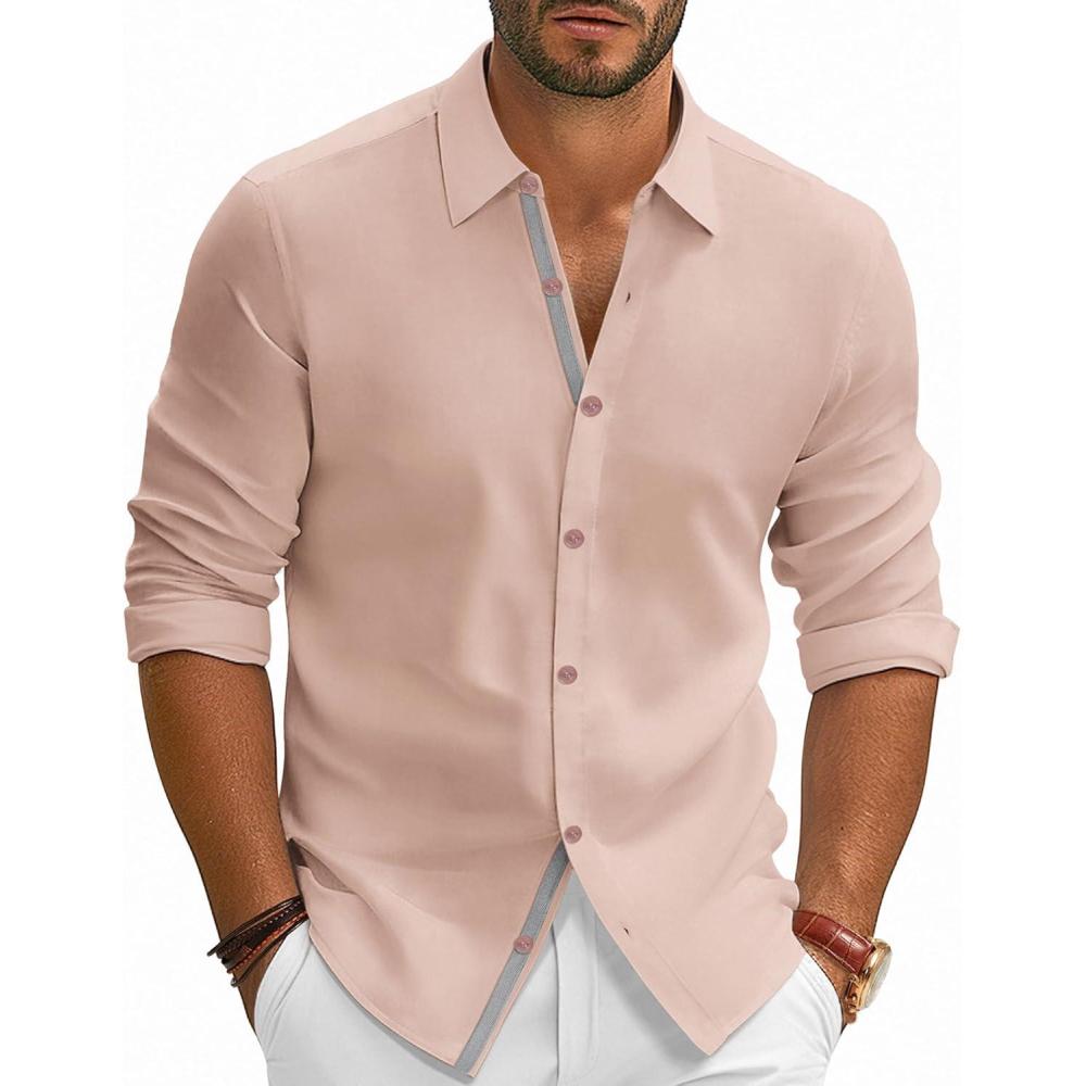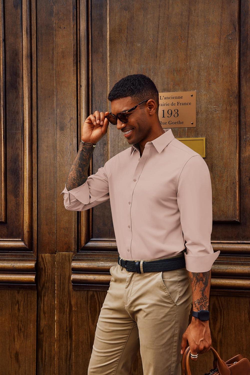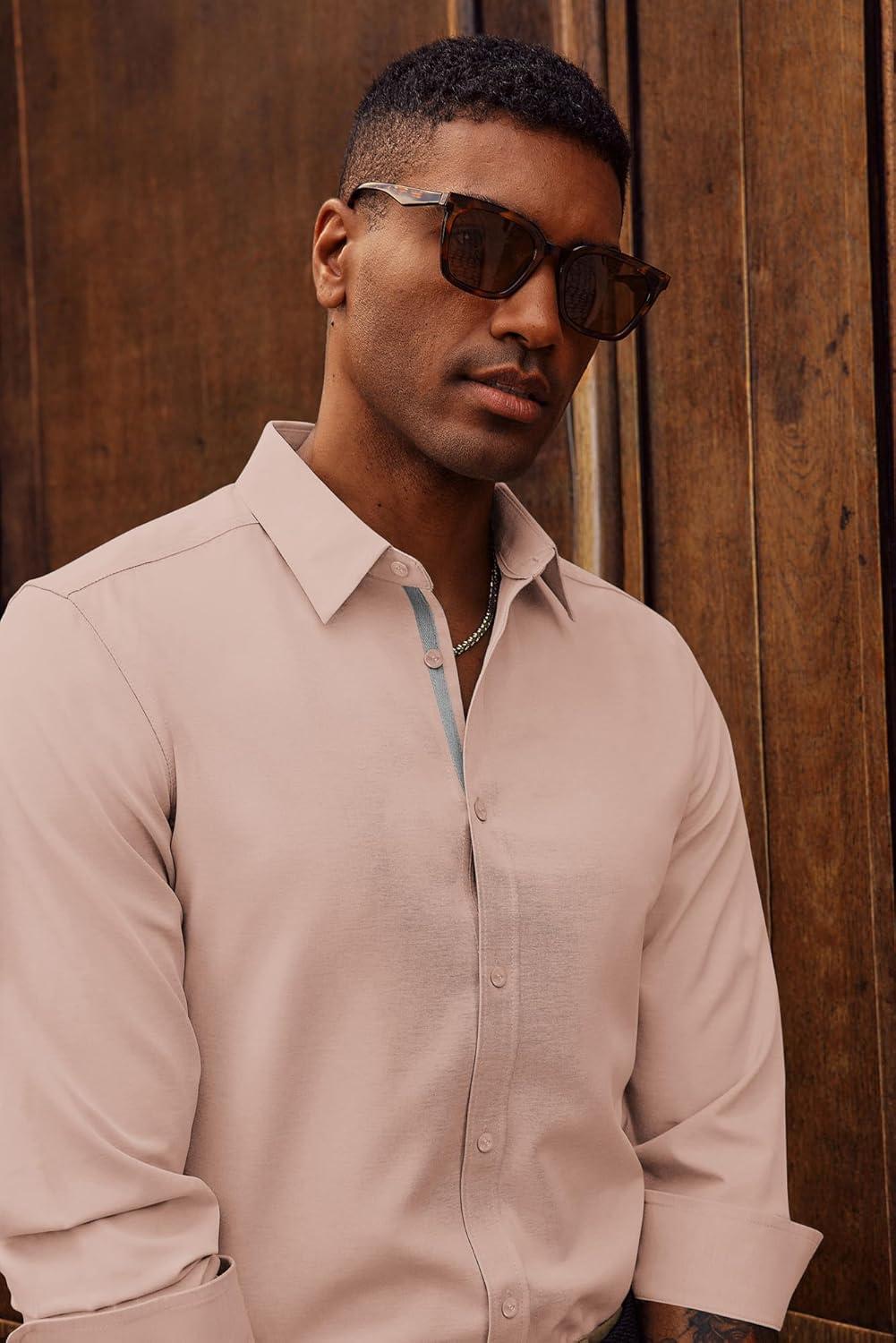 PJ PAUL JONES Mens Dress Shirts Wrinkle Free Stretch Button Down Shirt Casual Long Sleeve Business Shirts(Blush Pink)