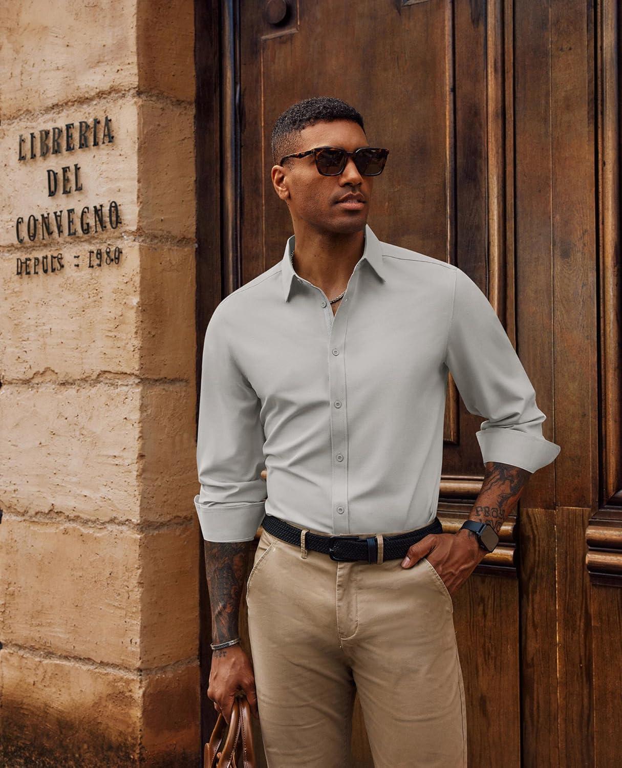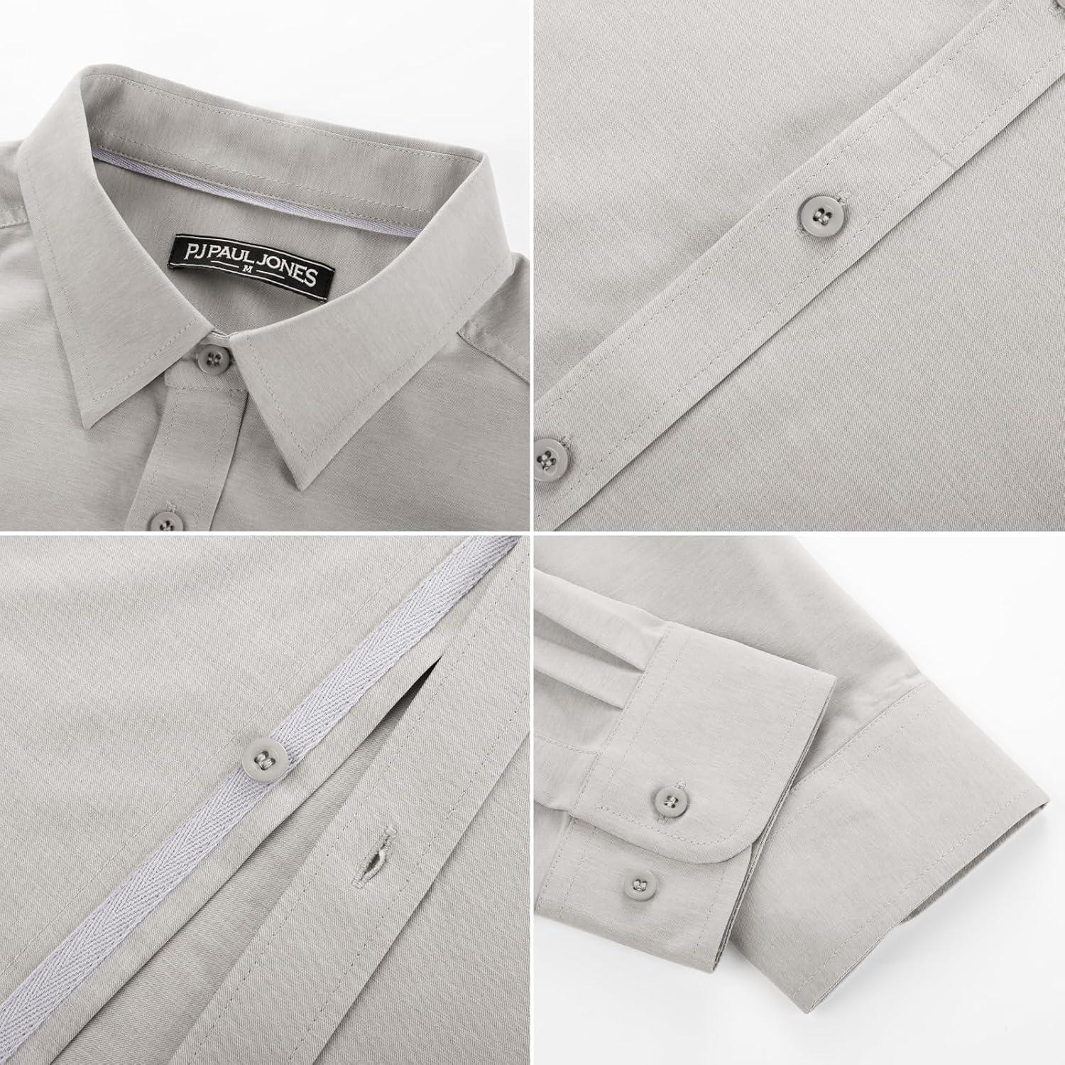 PJ PAUL JONES Mens Dress Shirts Wrinkle Free Stretch Button Down Shirt Casual Long Sleeve Business Shirts(Gray)