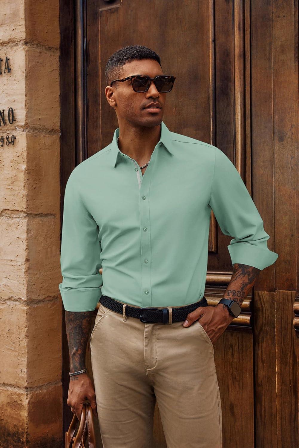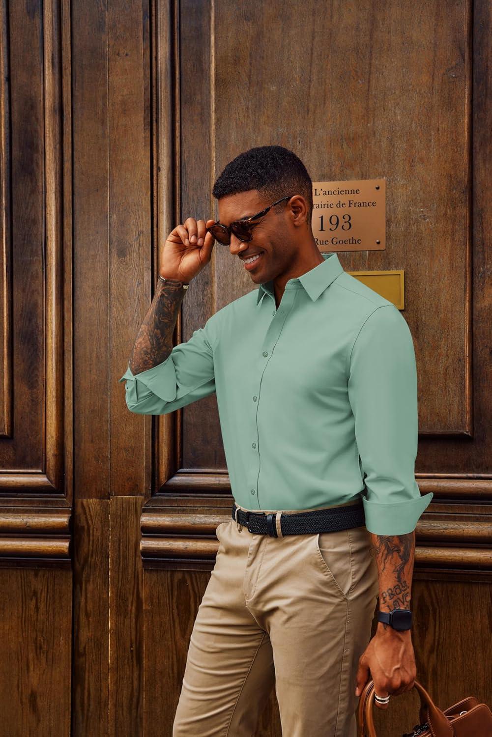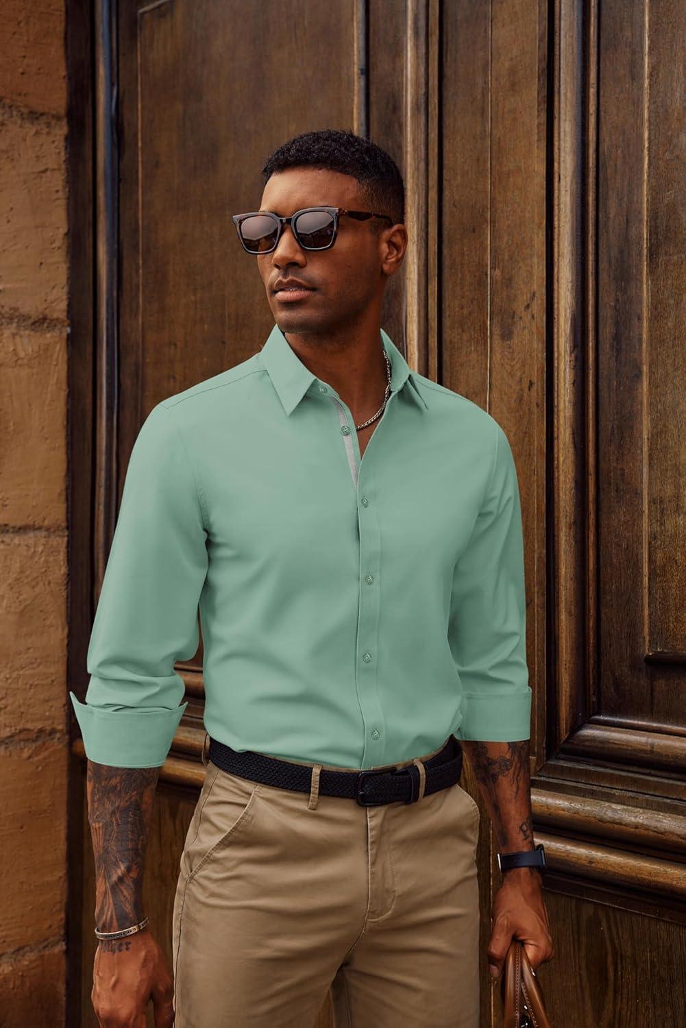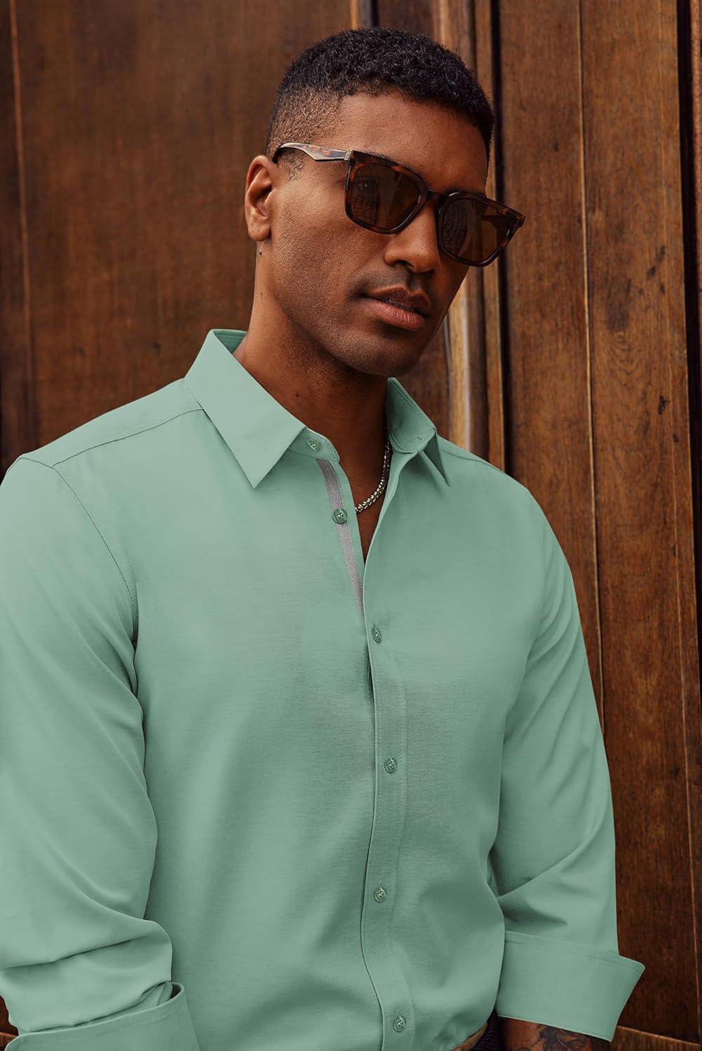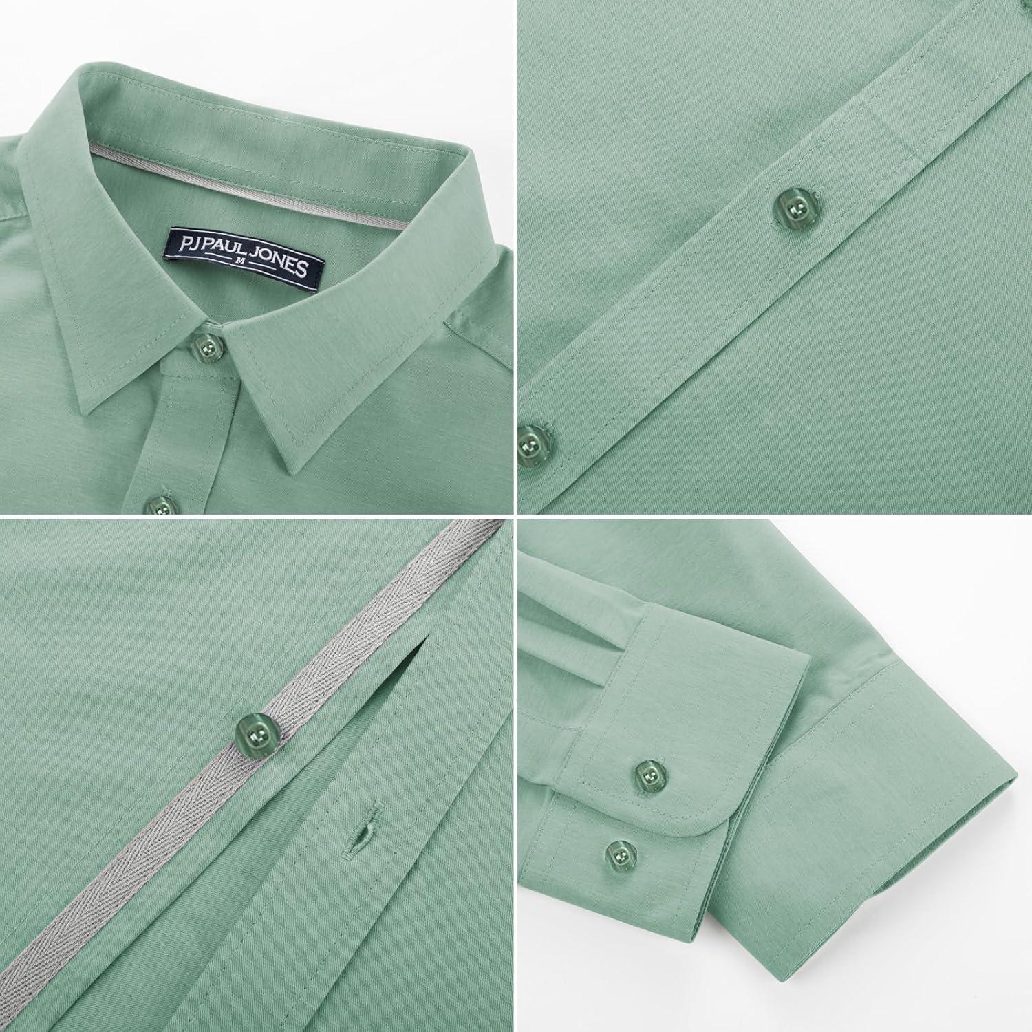 PJ PAUL JONES Mens Dress Shirts Wrinkle Free Stretch Button Down Shirt Casual Long Sleeve Business Shirts(Green)