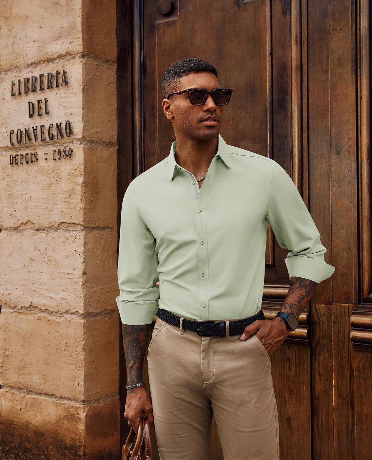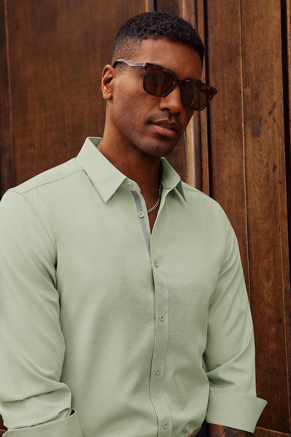 PJ PAUL JONES Mens Dress Shirts Wrinkle Free Stretch Button Down Shirt Casual Long Sleeve Business Shirts(Light Green)