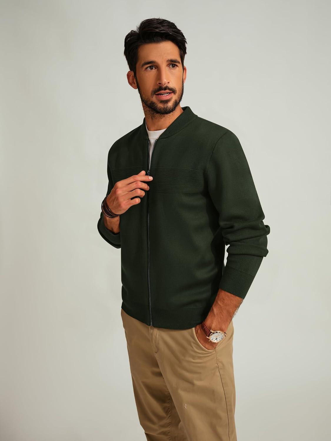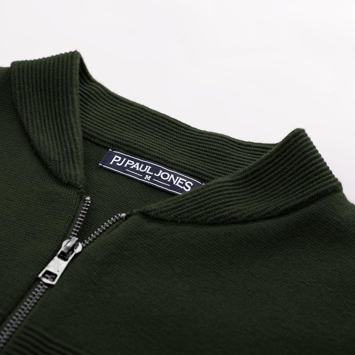 PJ PAUL JONES Mens Full Zip Cardigan Sweater Stand Collar Regular Fit Knit Sweaters(Army Green)
