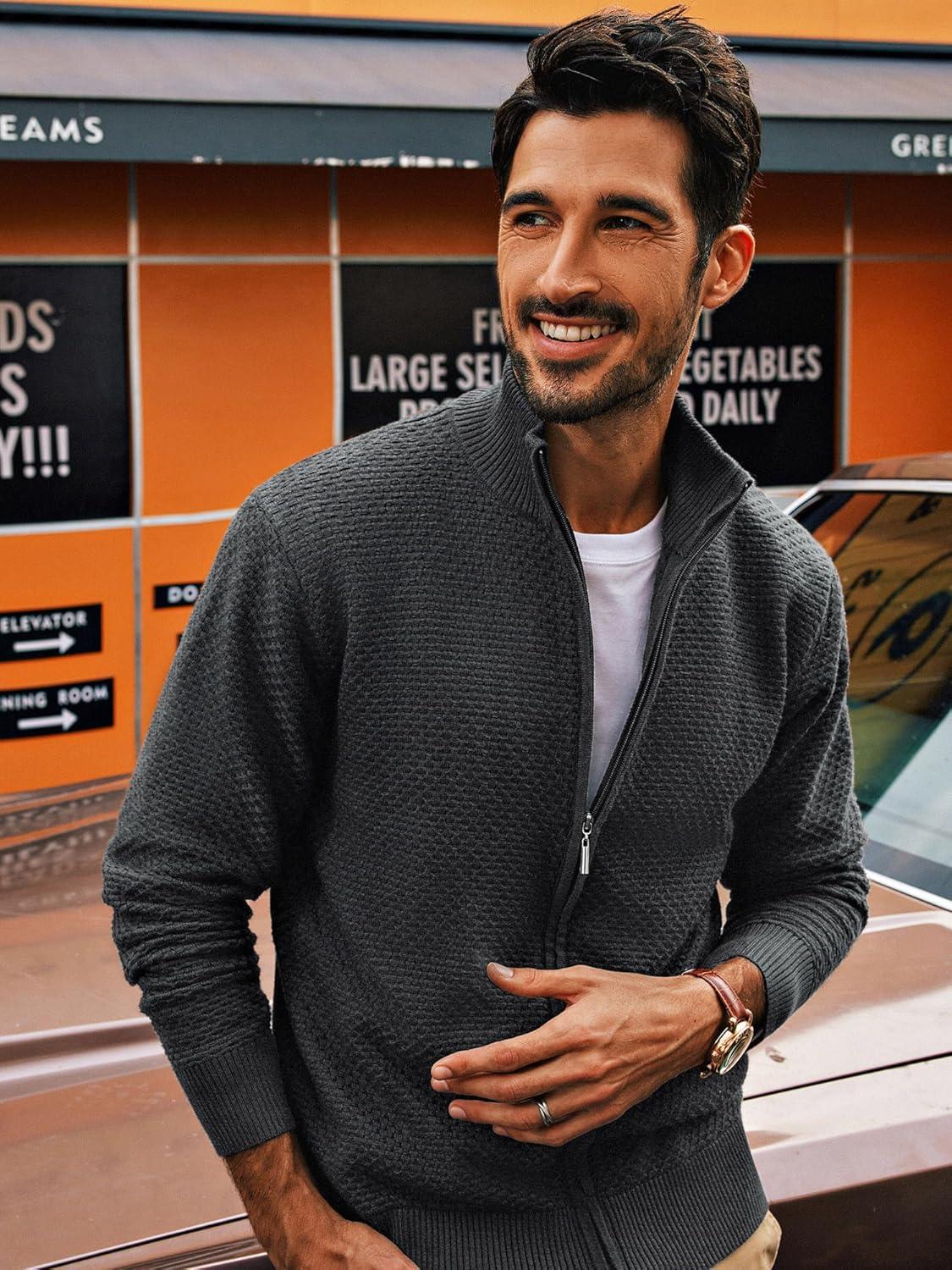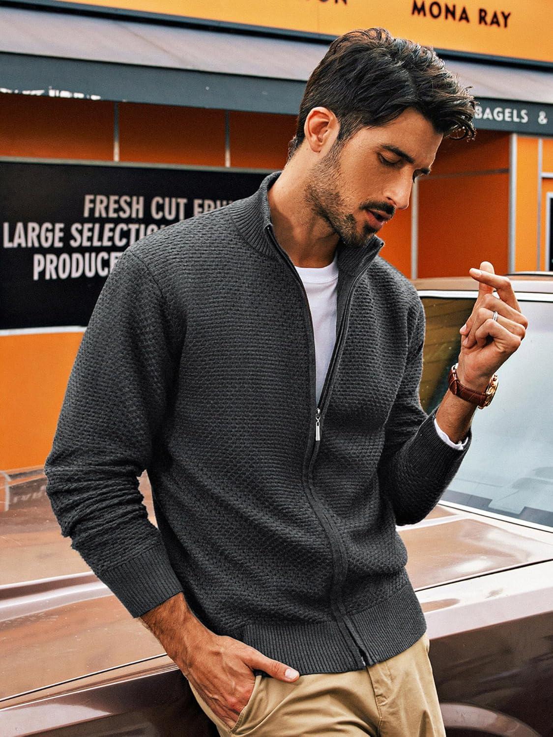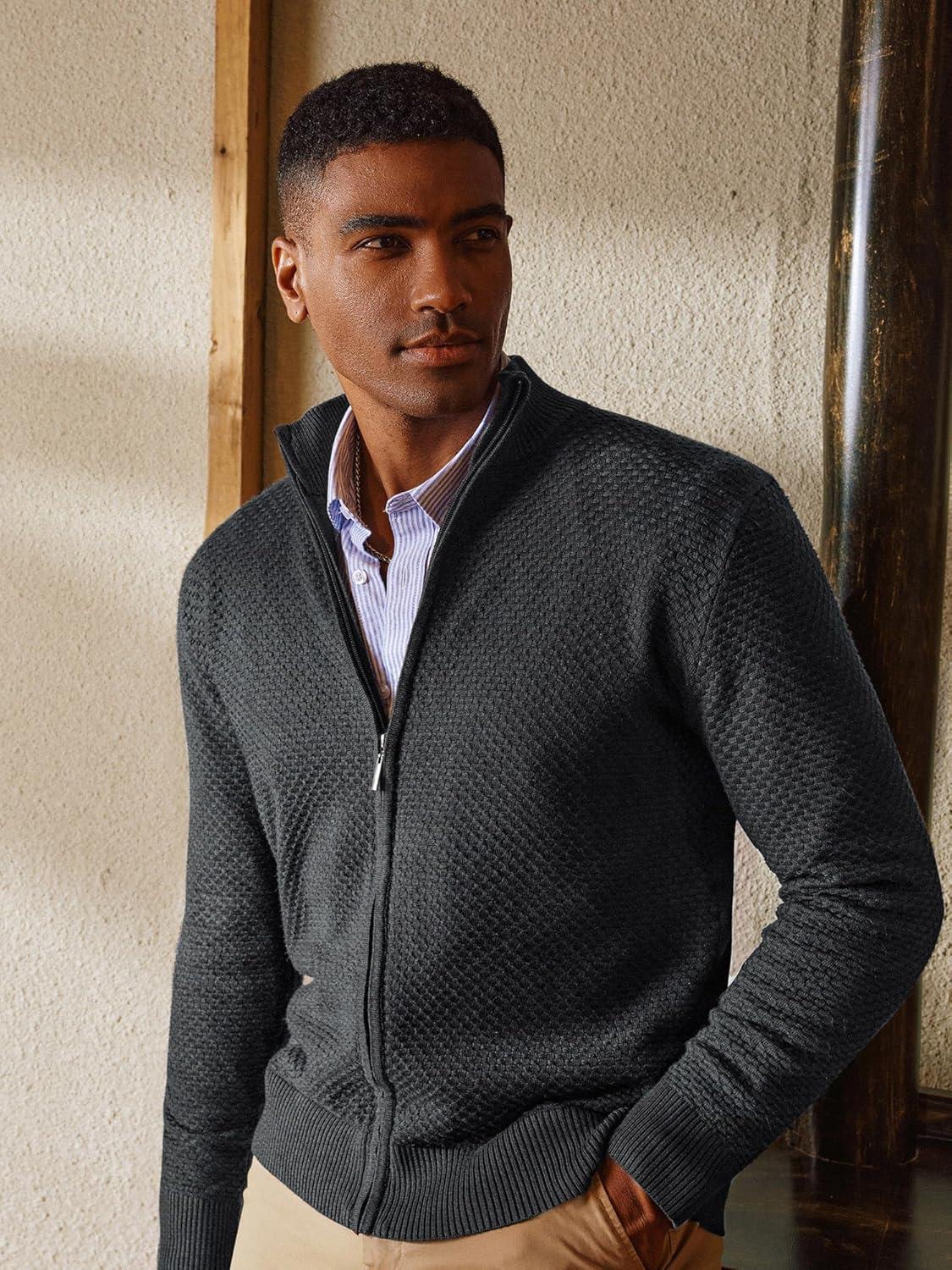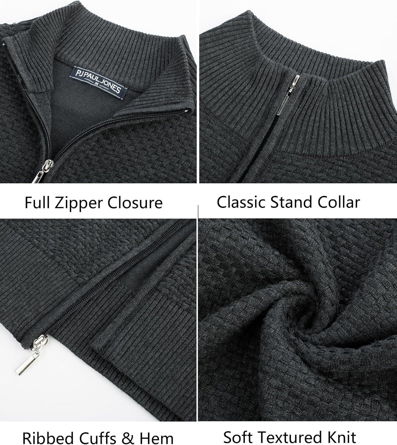 PJ PAUL JONES Men’s Full Zip Cardigan Sweaters Casual Stand Collar Cardigan Slim Fit Knitted Sweater(Carbon Grey)