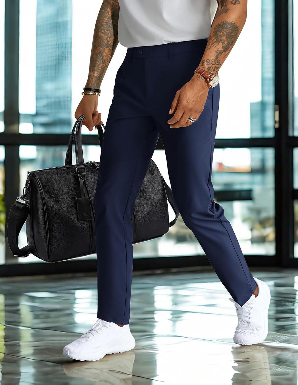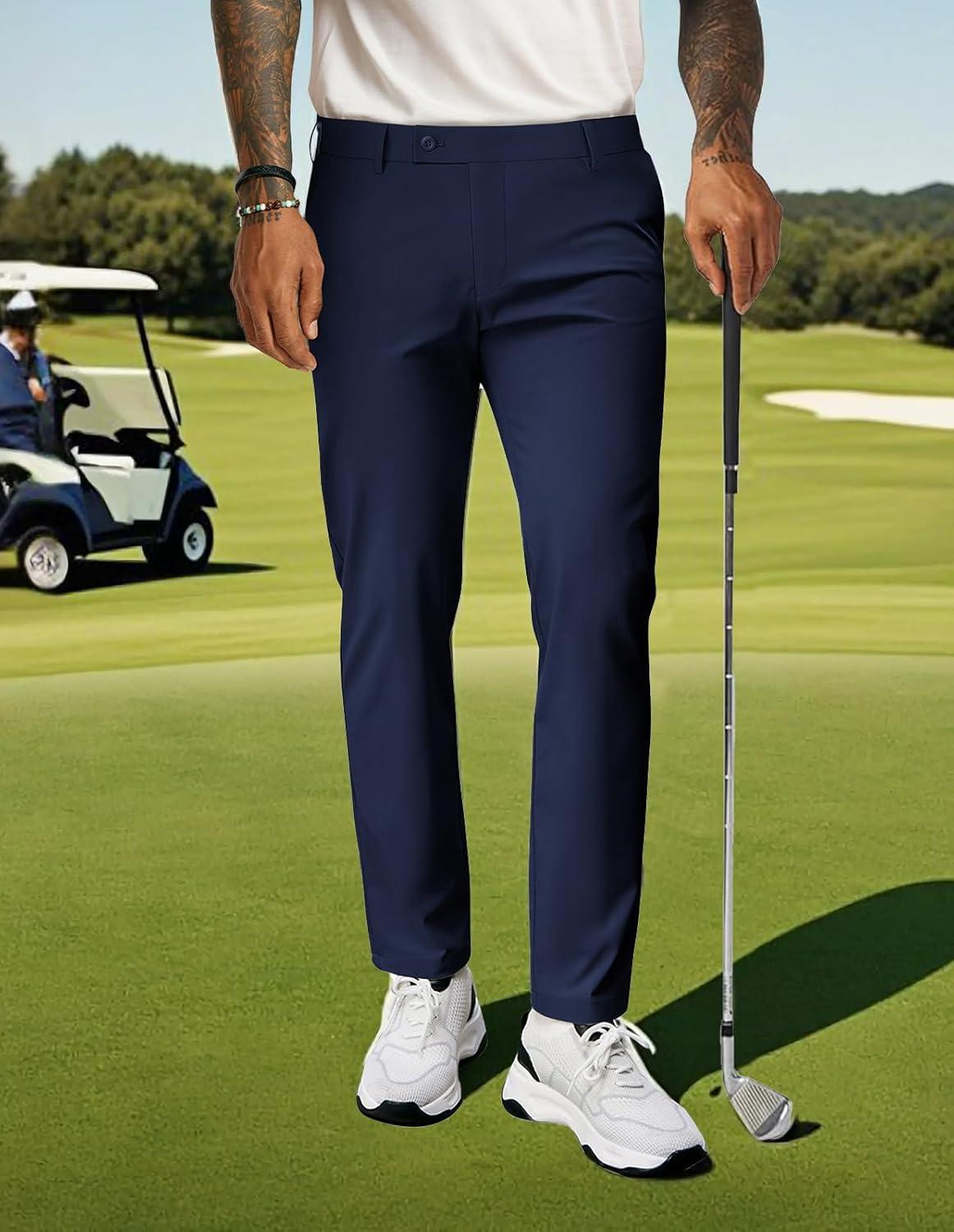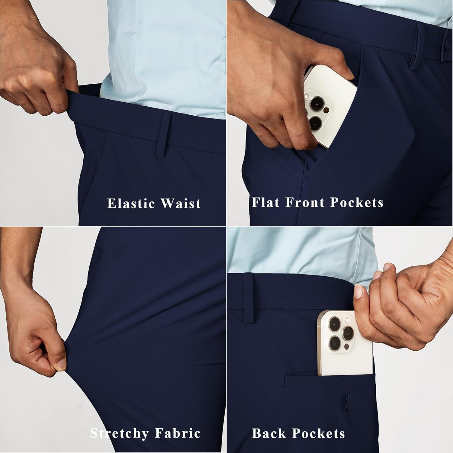 PJ PAUL JONES Mens Golf Pants 4-Way Stretch Lightweight Work Casual Trousers Slim Fit Dress Pants with Pockets(Navy Blue-d)