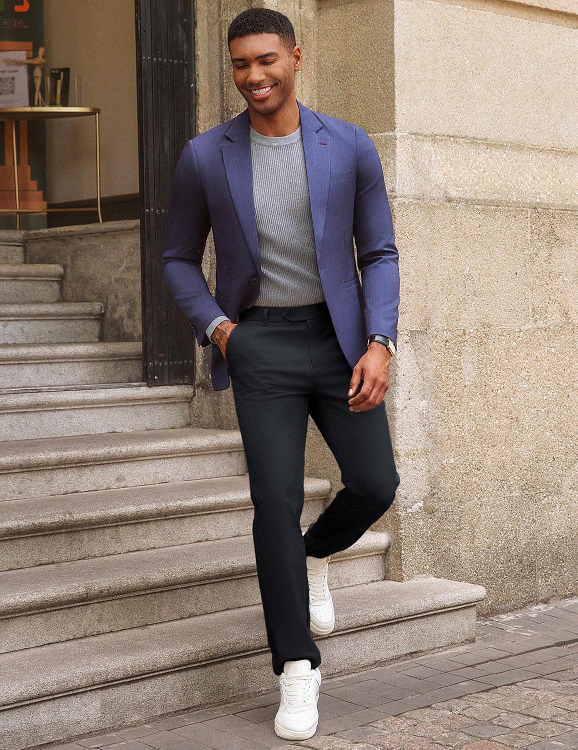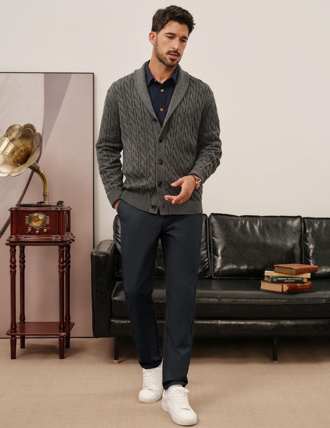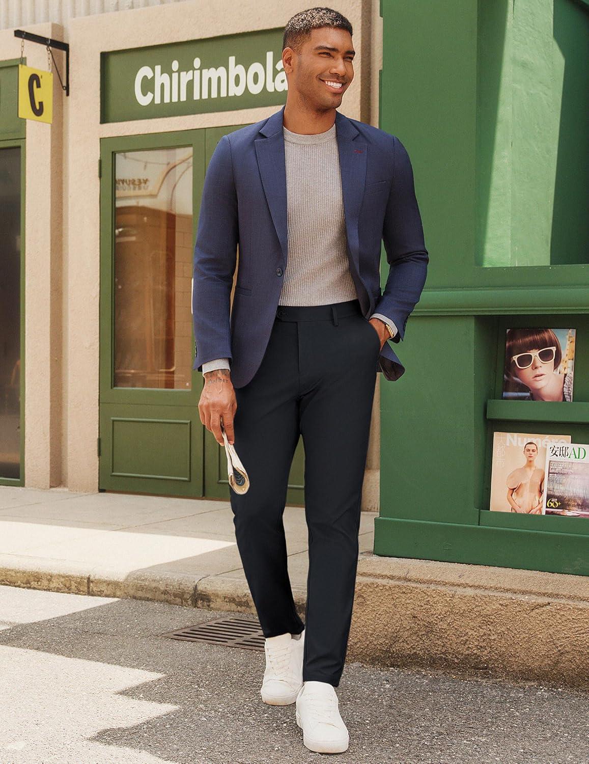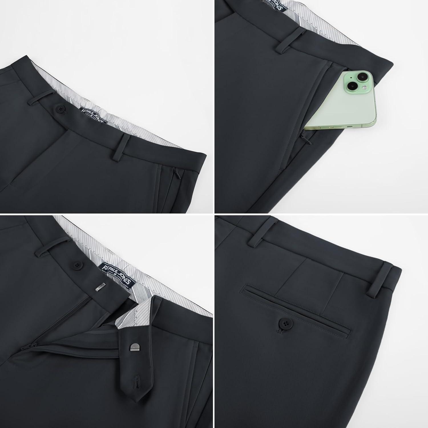 PJ PAUL JONES Mens Golf Pants Stretch Work Dress Pant Casual Classic Fit Lightweight Slacks Trousers with 5 Pockets(Dark Blue Grey-b)