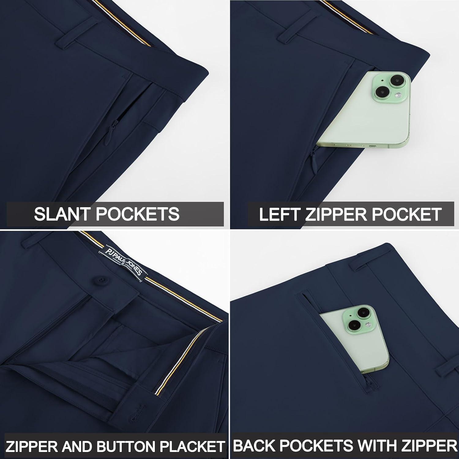 PJ PAUL JONES Mens Golf Pants Stretch Work Dress Pant Casual Classic Fit Lightweight Slacks Trousers with 5 Pockets(Navy Blue)