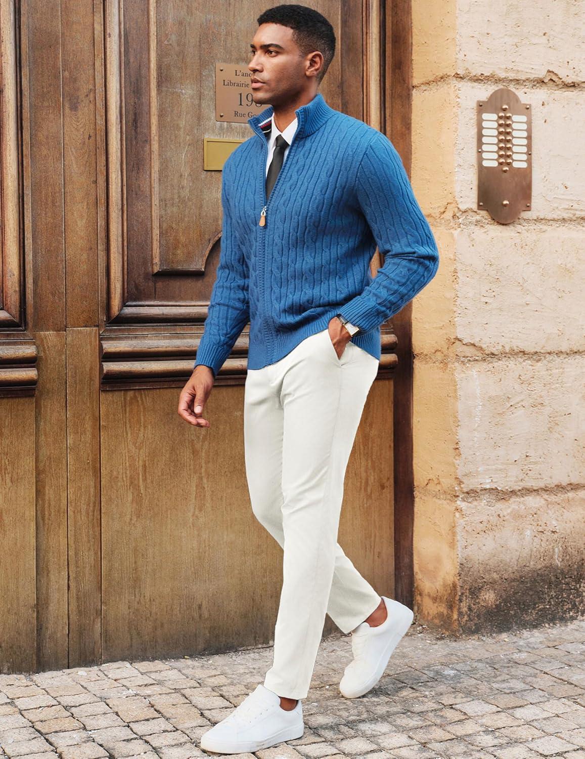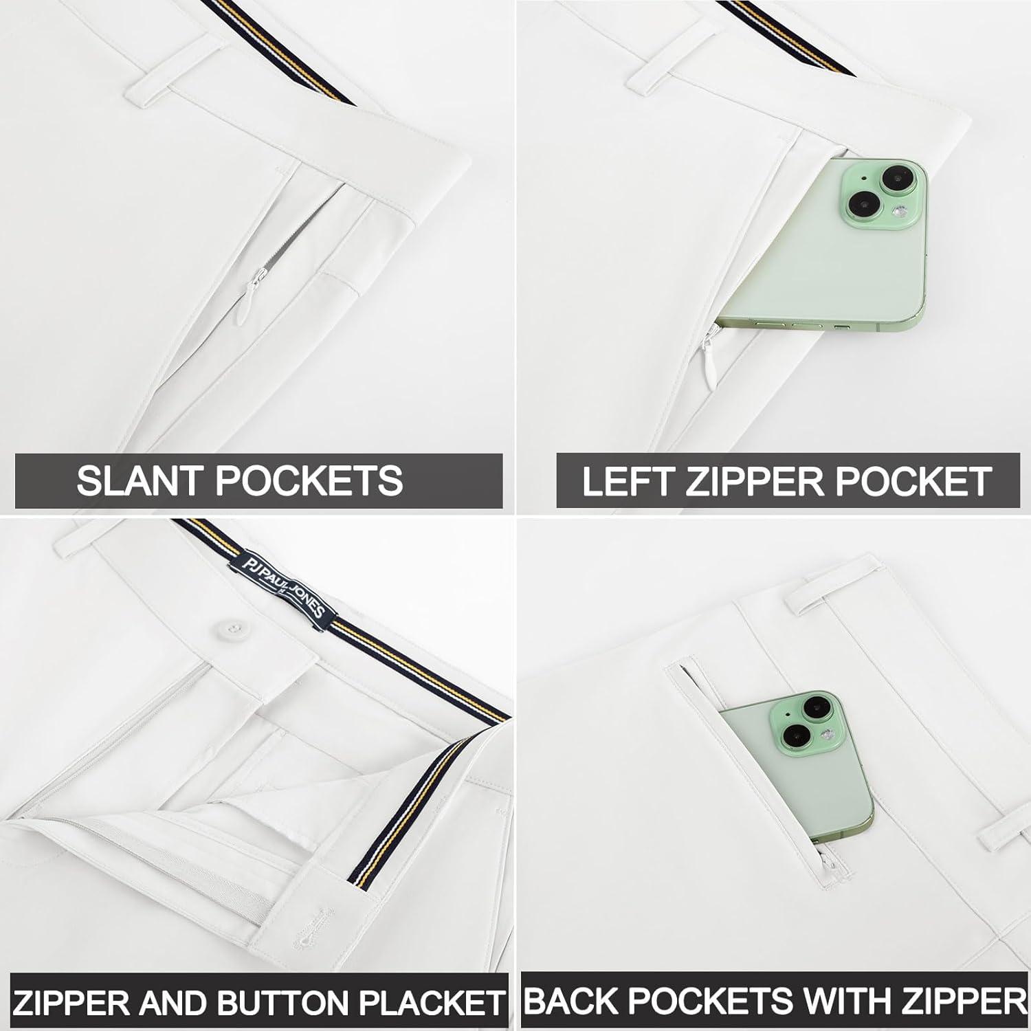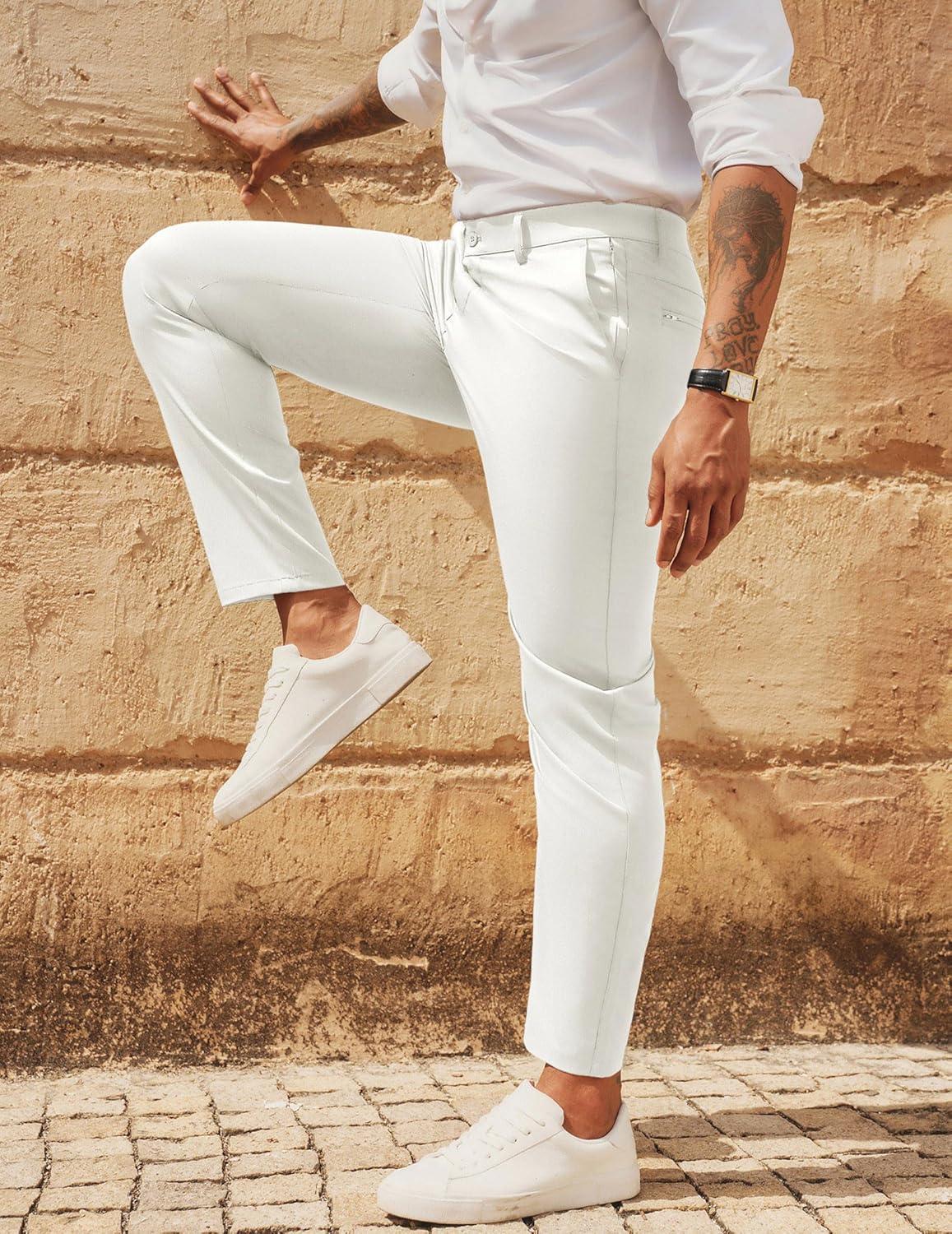 PJ PAUL JONES Mens Golf Pants Stretch Work Dress Pant Casual Classic Fit Lightweight Slacks Trousers with 5 Pockets(White)