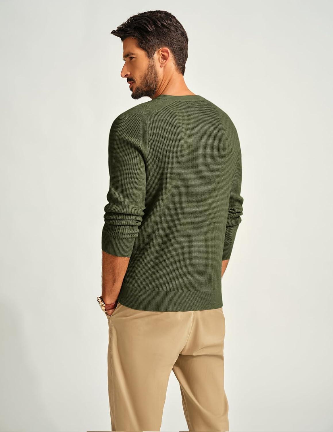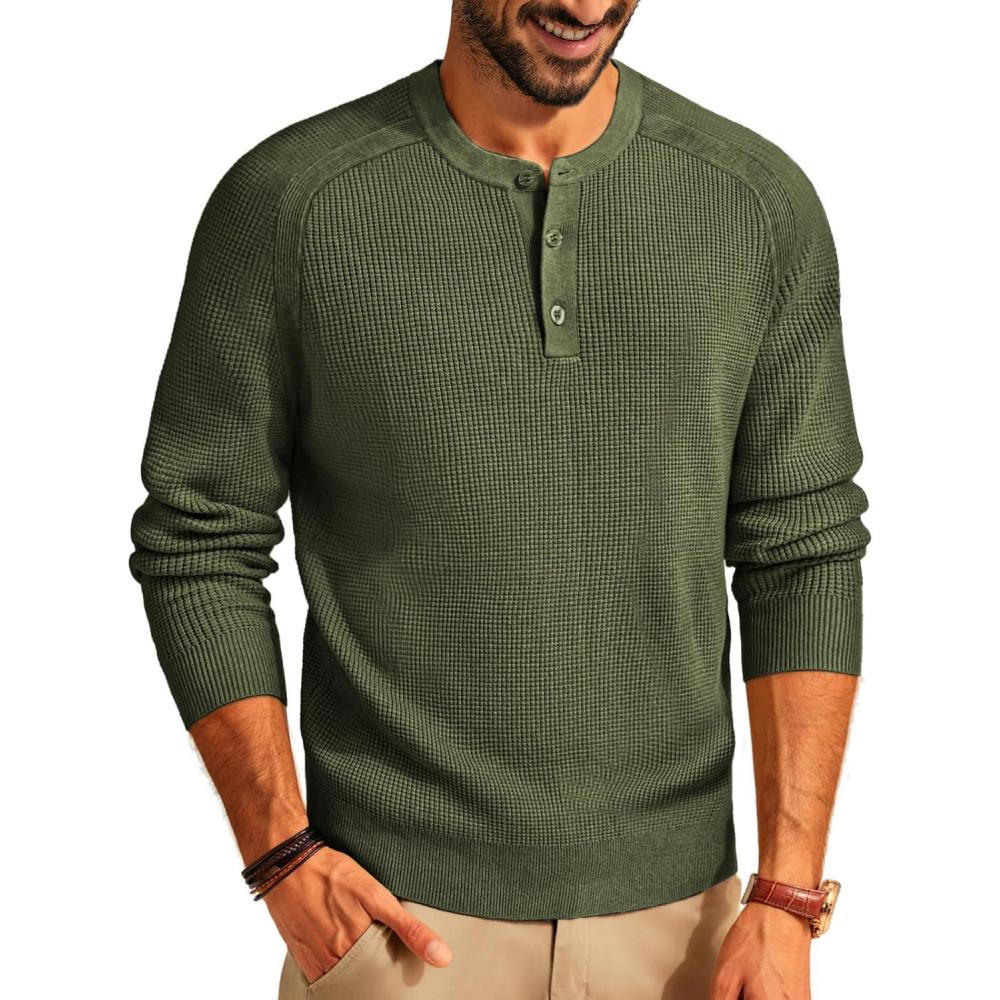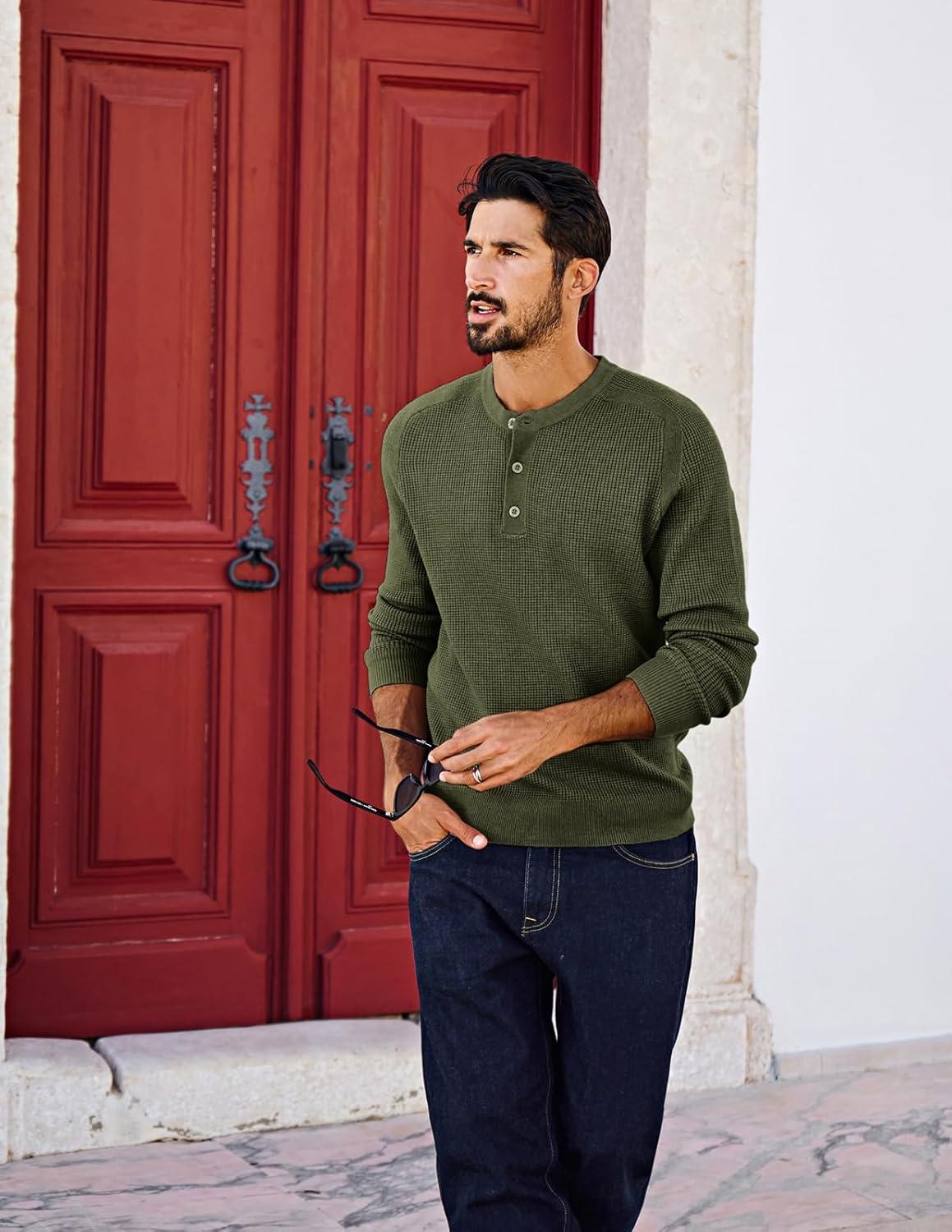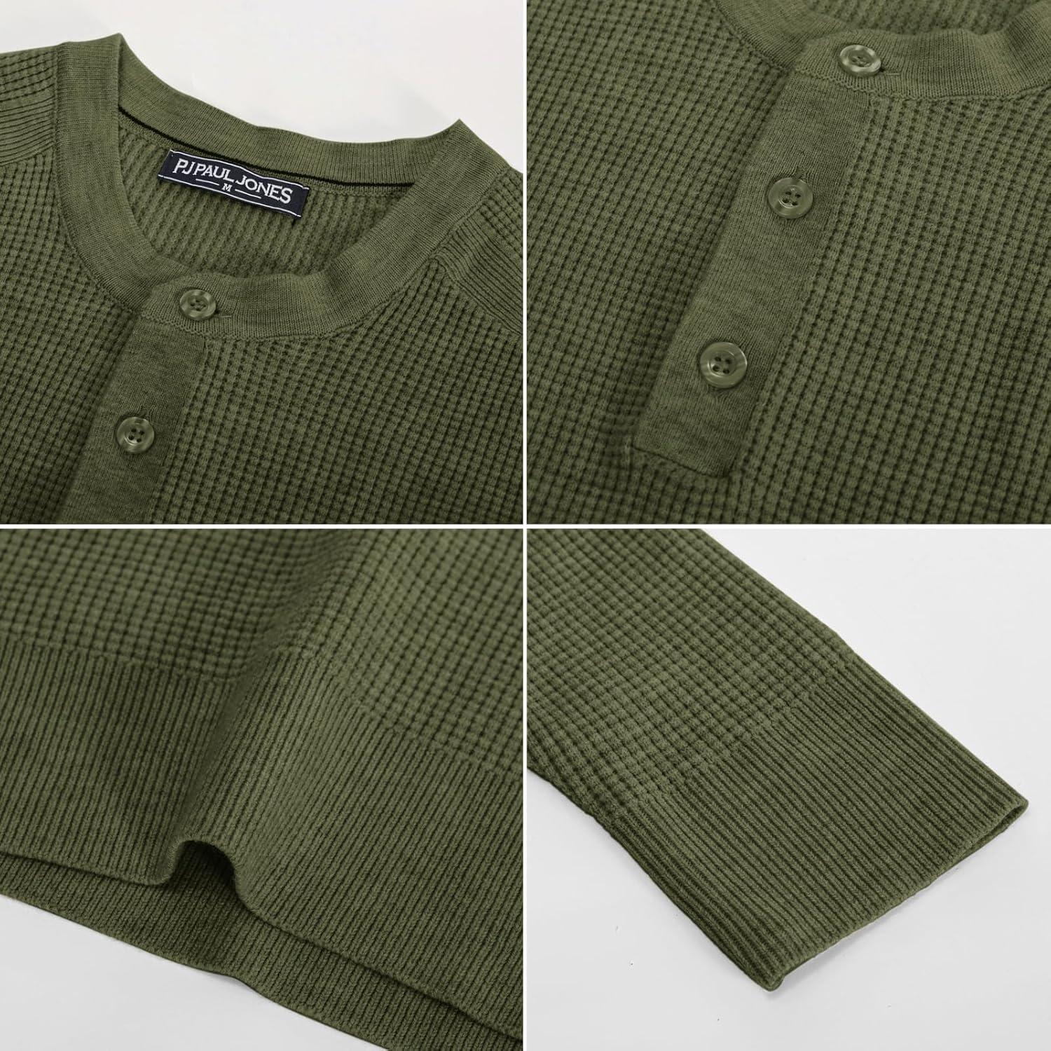 PJ PAUL JONES Men’s Henley Long Sleeve Sweaters Solid Color Soft Warm Pullover Sweaters(Army Green)