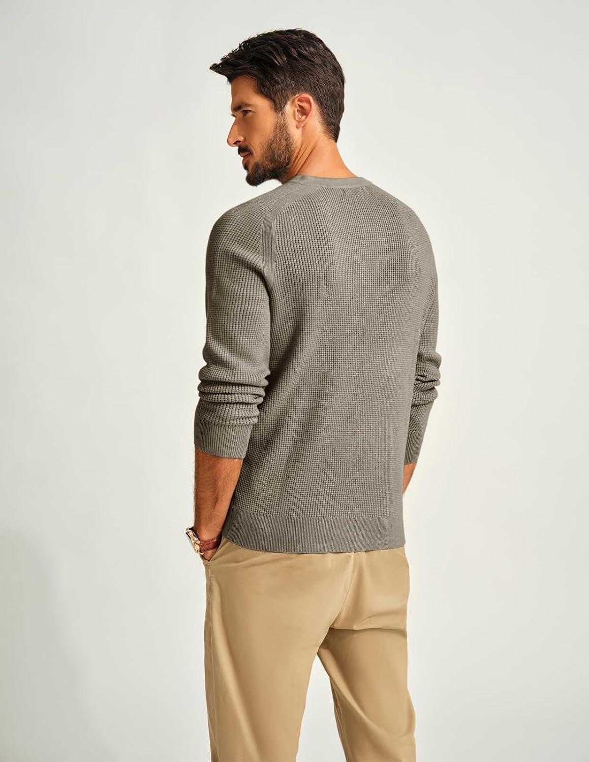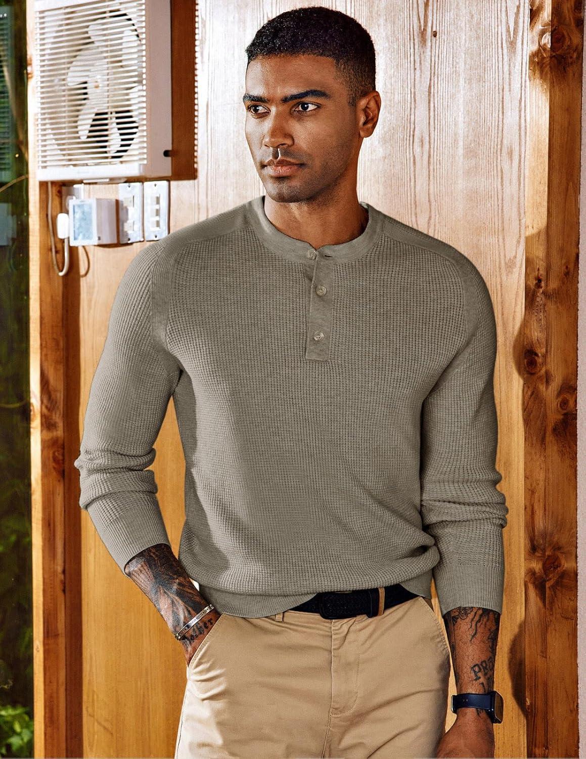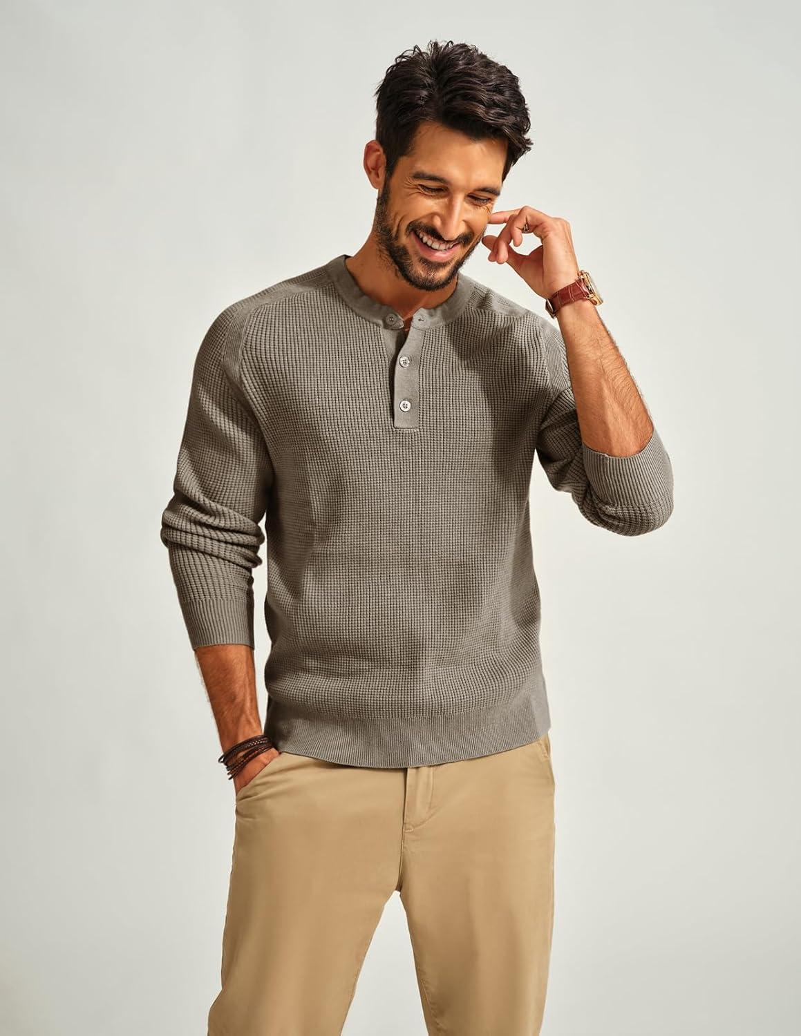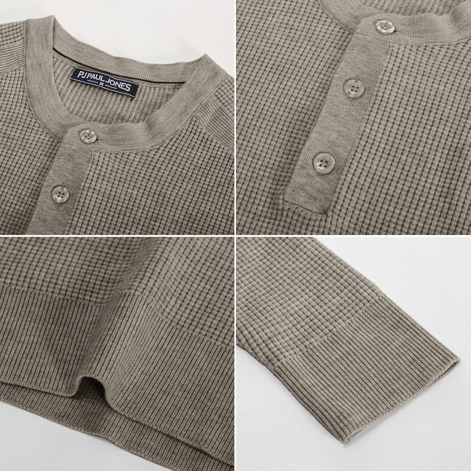 PJ PAUL JONES Men’s Henley Long Sleeve Sweaters Solid Color Soft Warm Pullover Sweaters(Khaki)