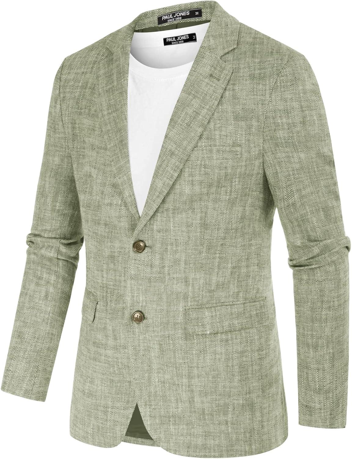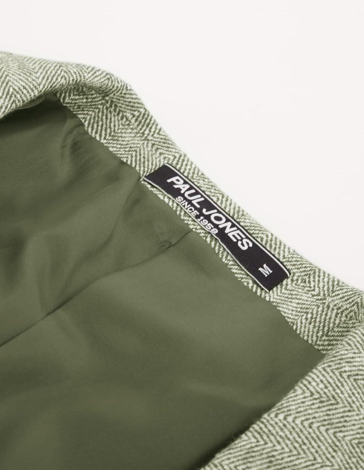 PJ Paul Jones Men’s Herringbone Blazer Jacket Lightweight Casual Knit Sport Coat(Linen-green)