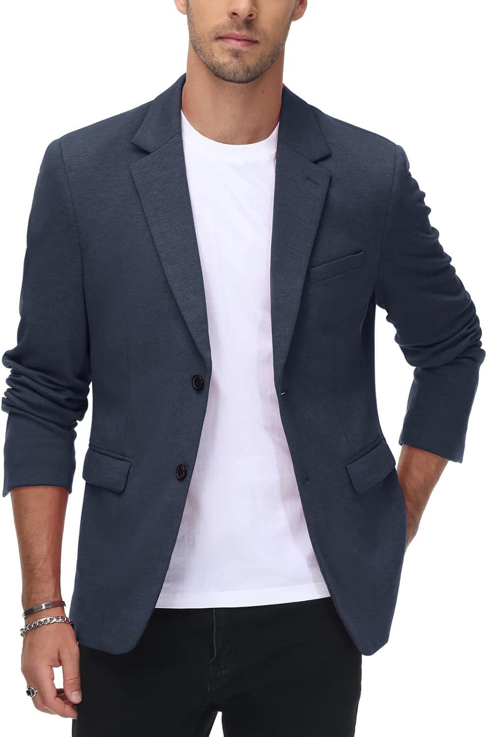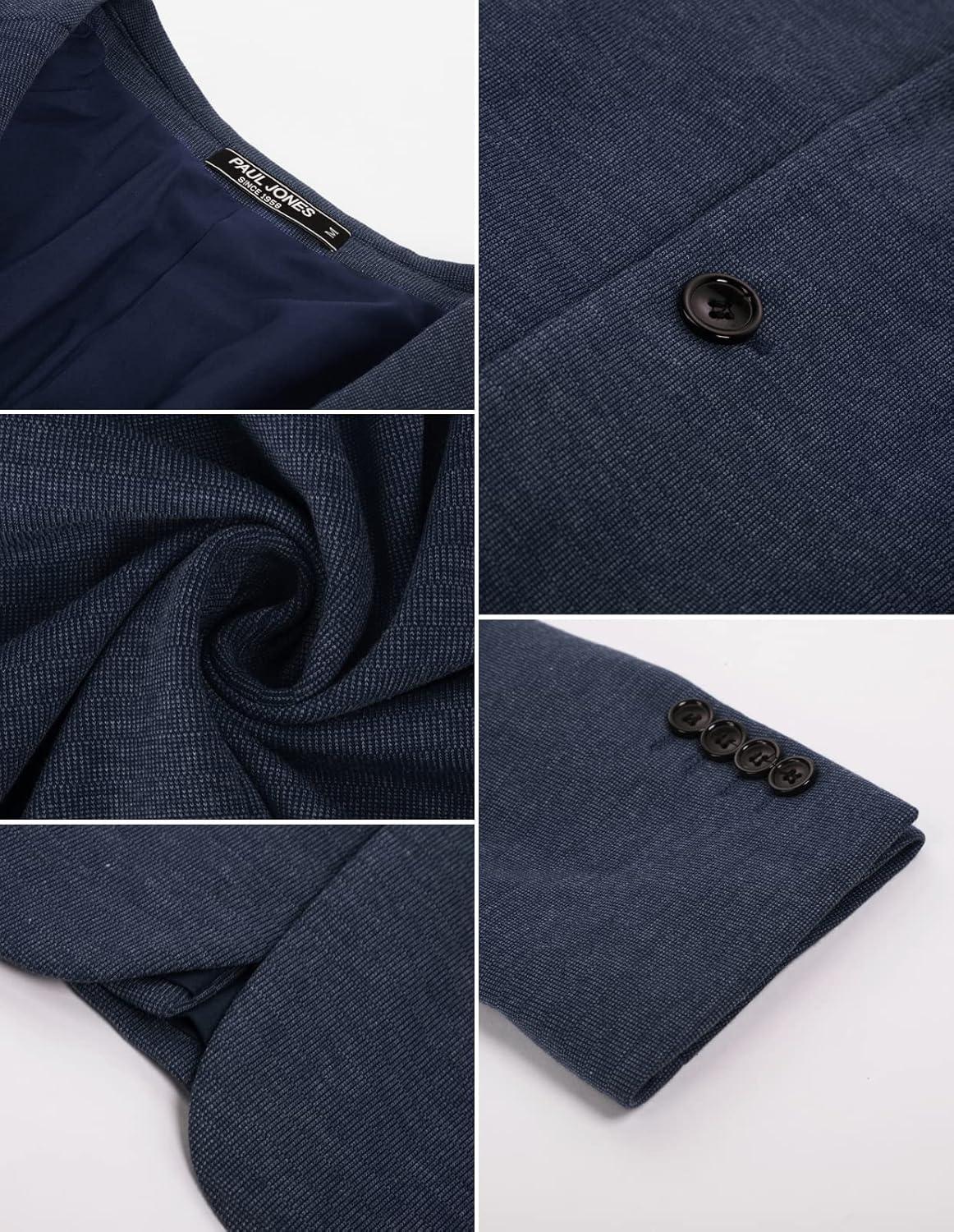 PJ Paul Jones Men’s Herringbone Blazer Jacket Lightweight Casual Knit Sport Coat(Navy)