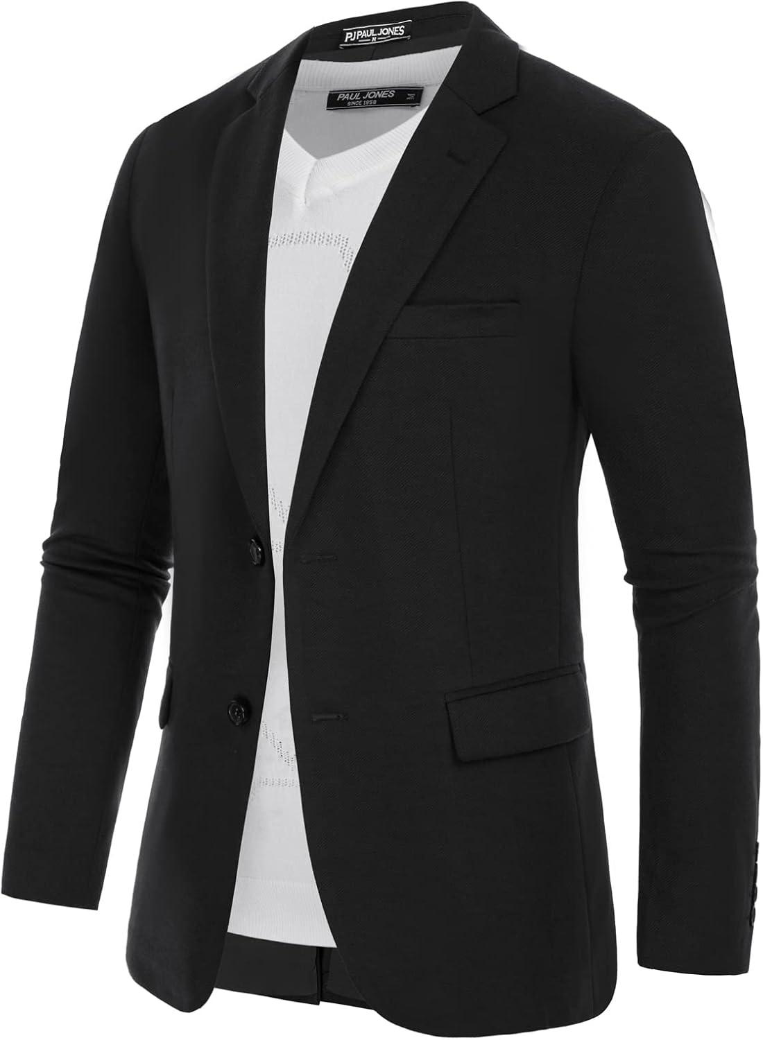 PJ Paul Jones Men’s Herringbone Blazer Jacket Lightweight Casual Knit Sport Coat(Solid Black)