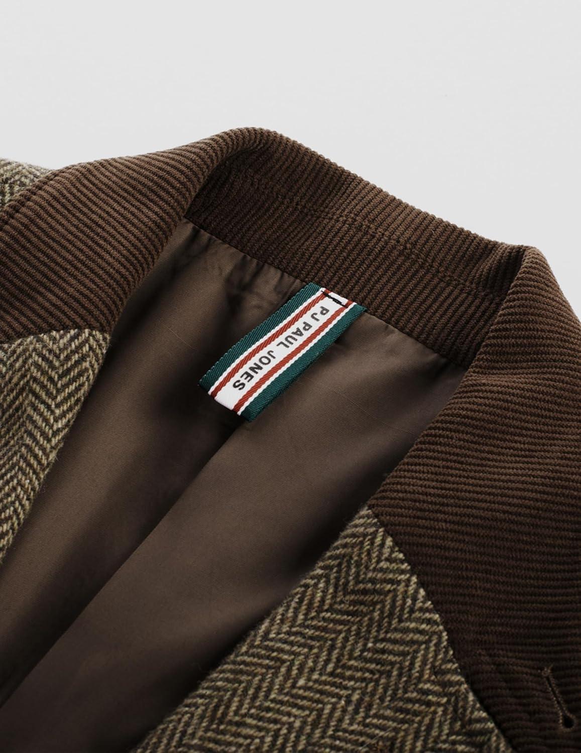 PJ PAUL JONES Mens Herringbone Blazer Vintage Tweed Wool Blend Sport Coat Jacket(Coffee)