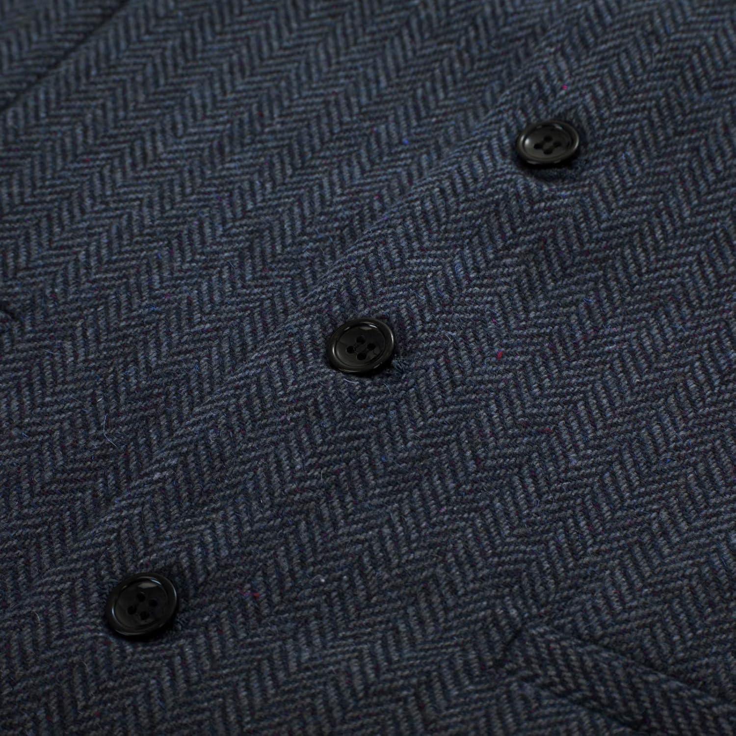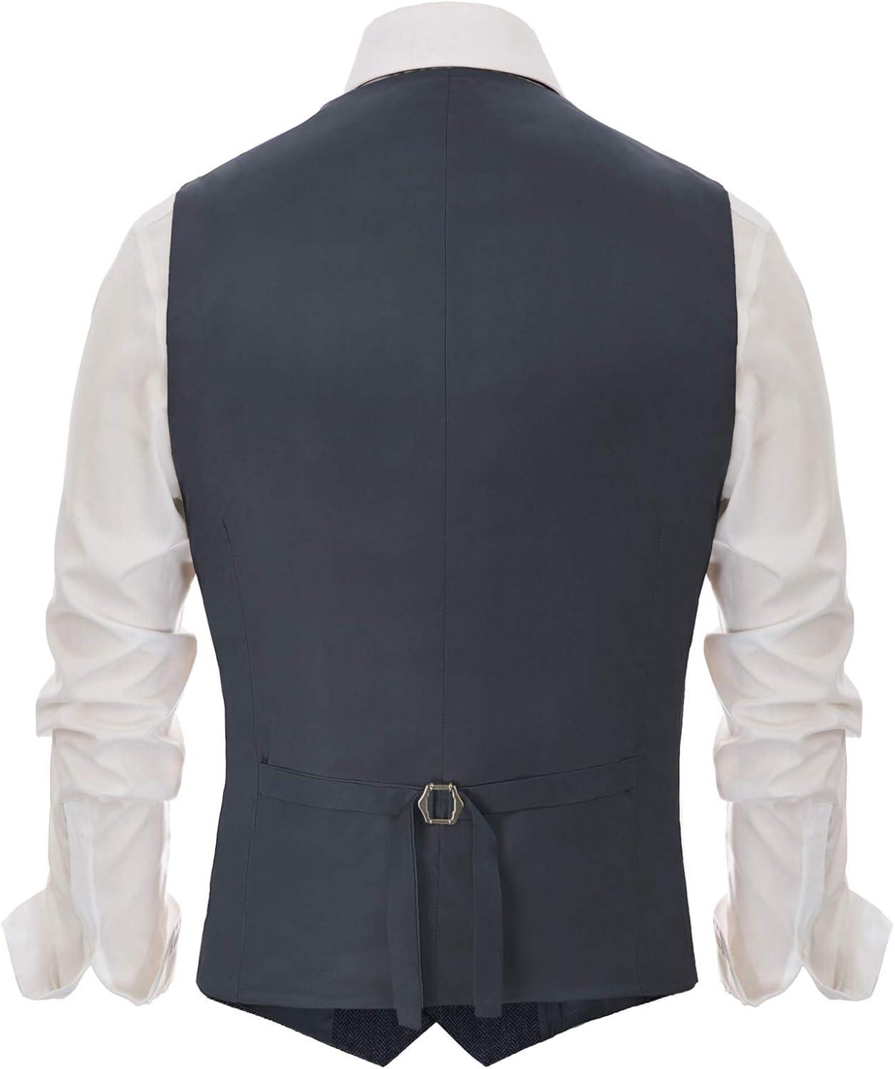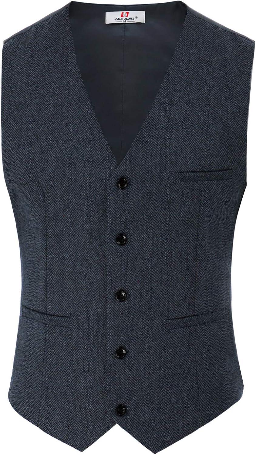 PJ PAUL JONES Men’s Herringbone Tweed Suit Vest Casual Wool Blend Waistcoat(Navy Blue)