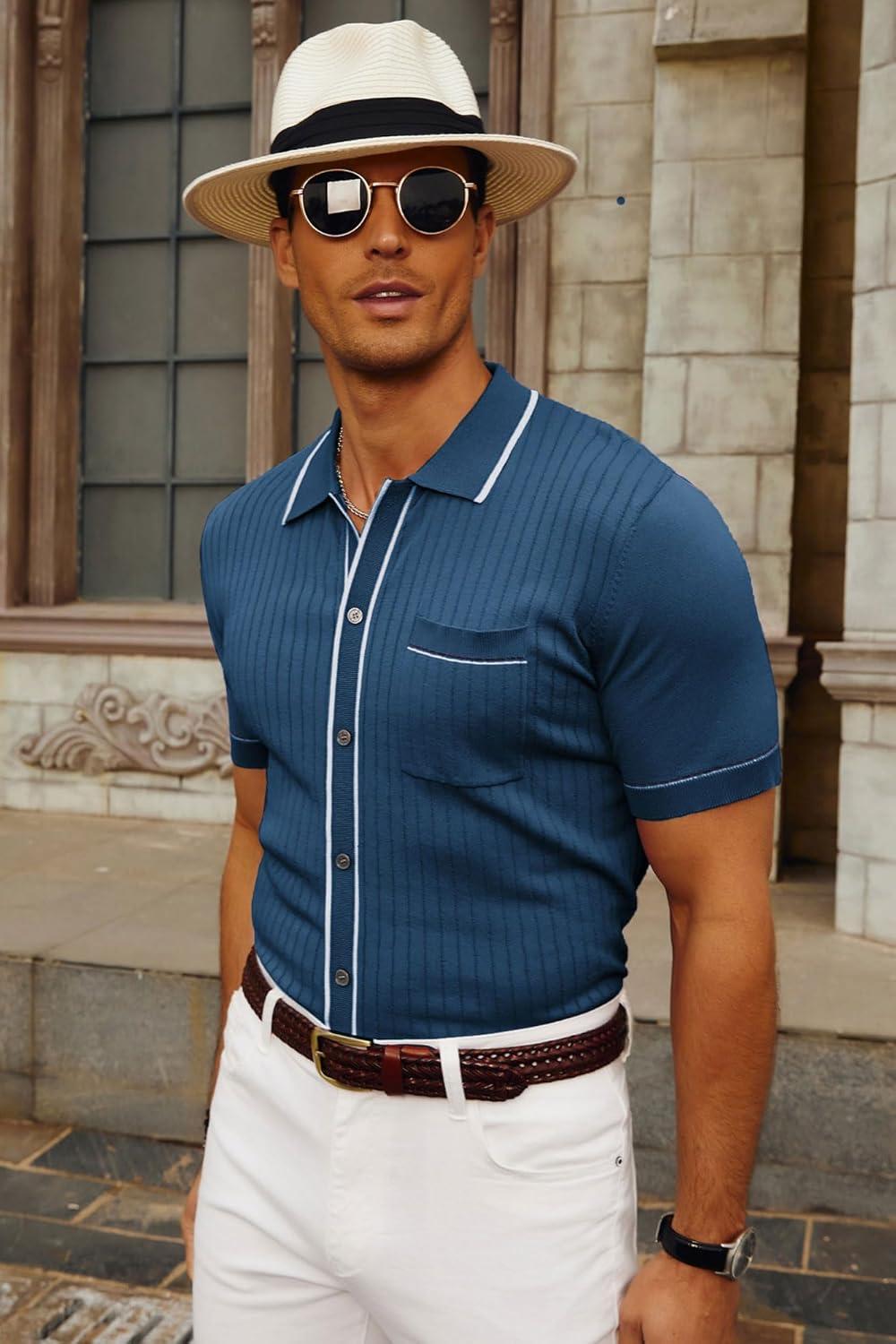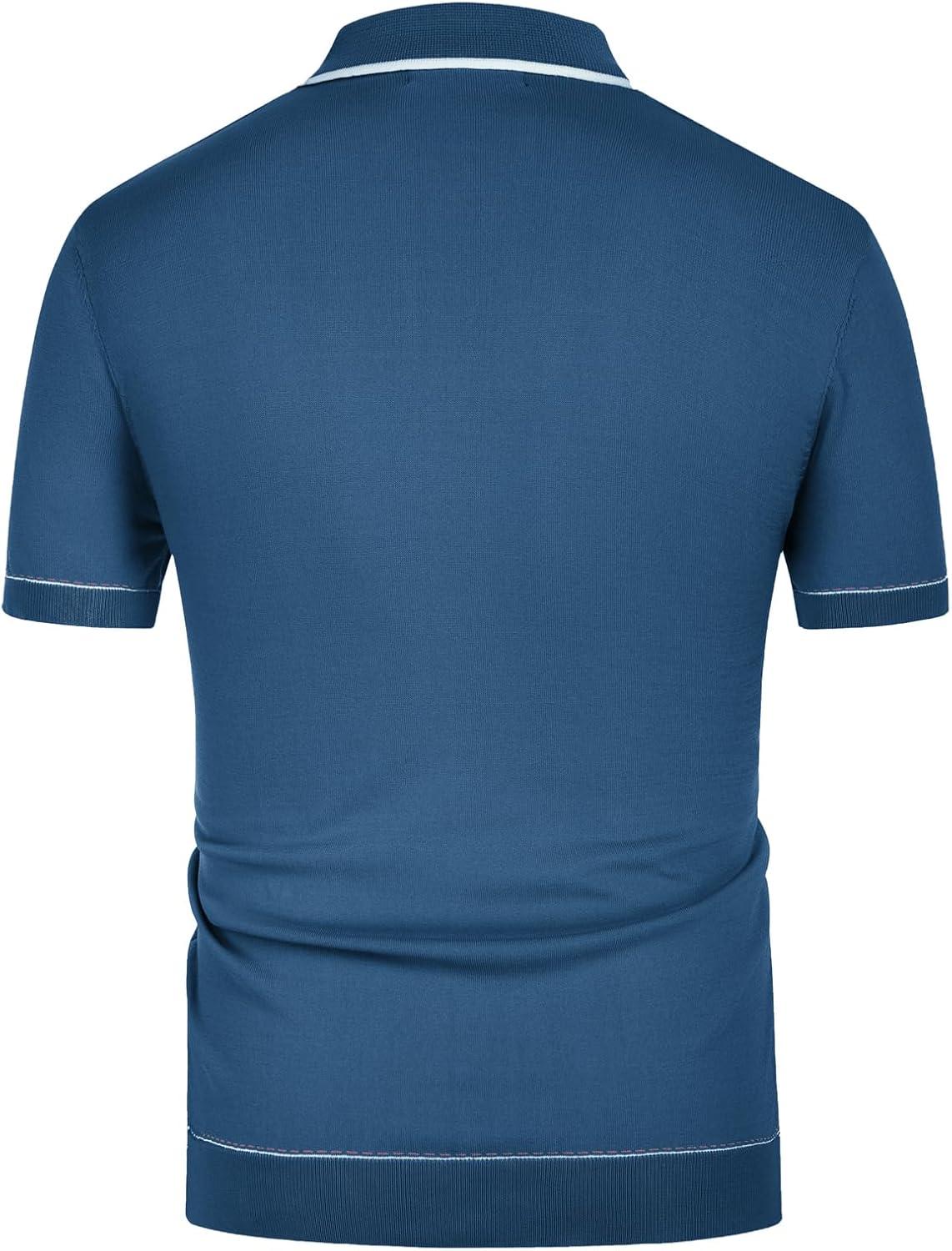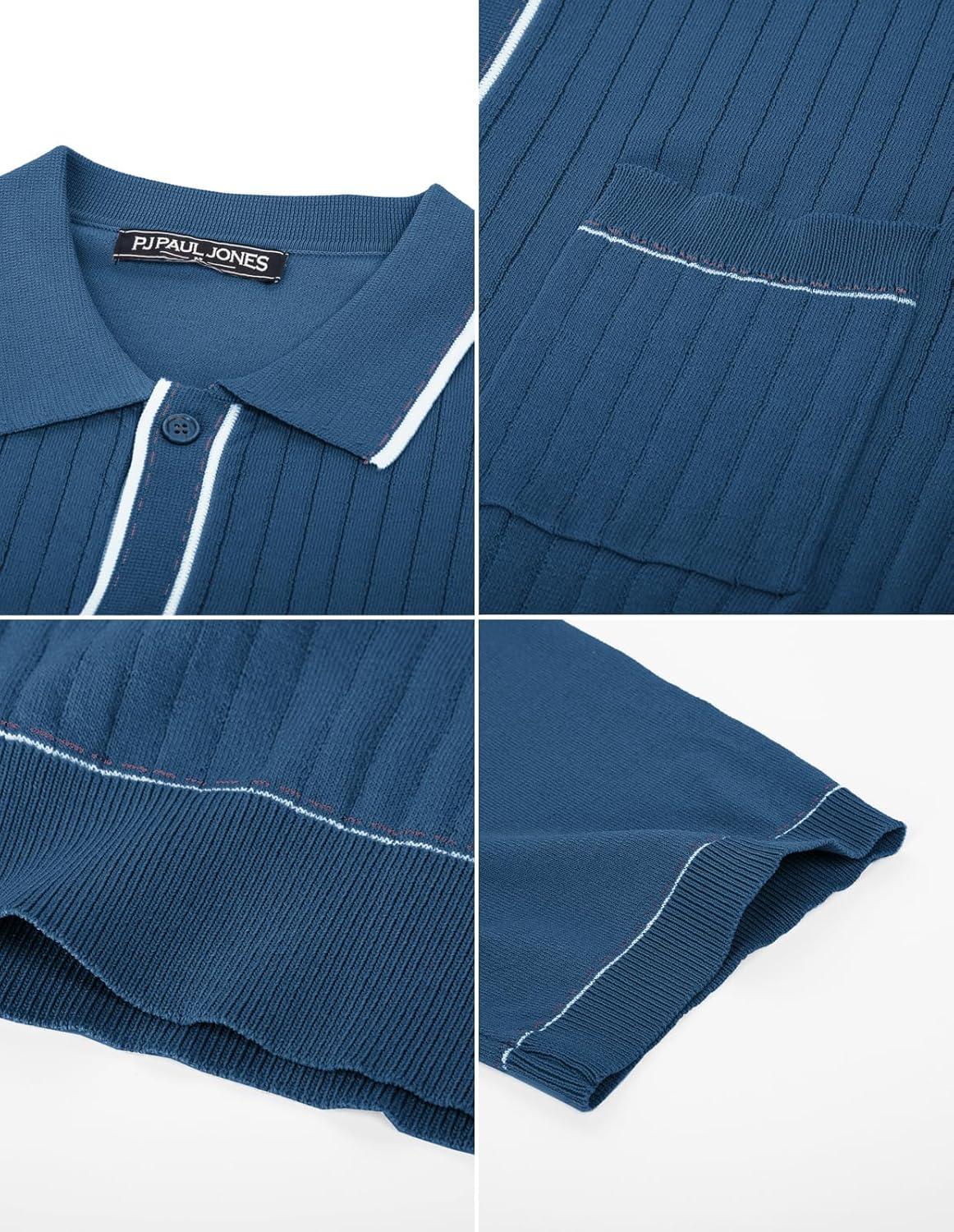PJ PAUL JONES Mens Knit Shirts Vintage Retro Short Sleeve Button Down Vacation Polo Shirts(Royal Blue)