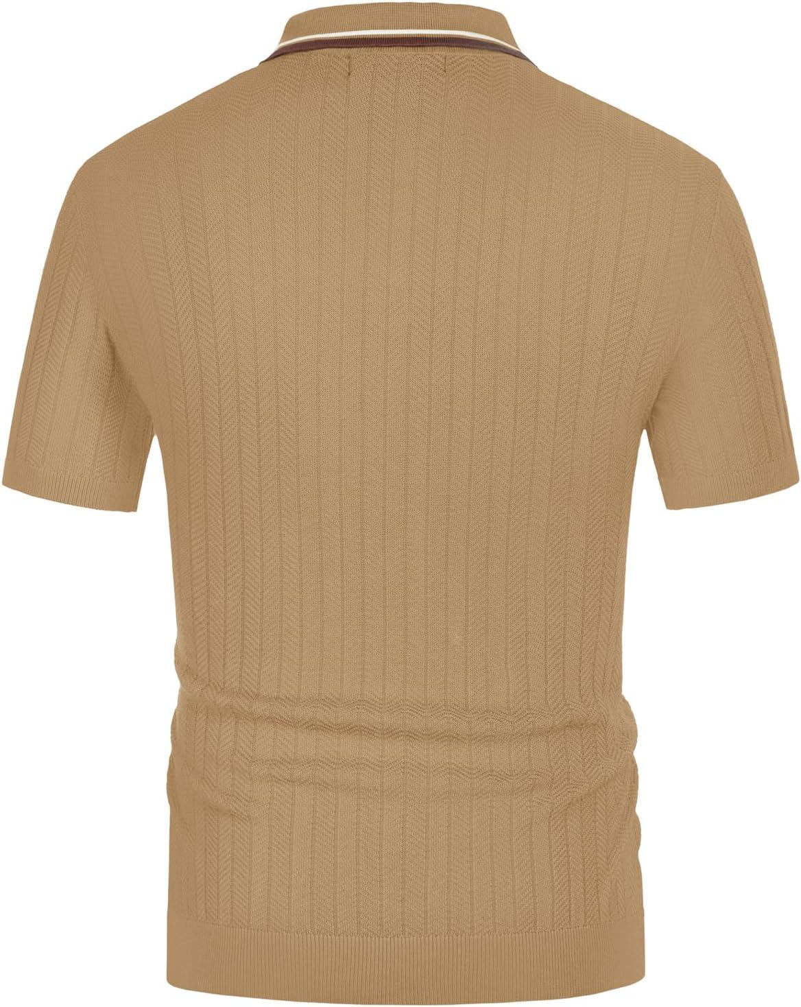 PJ PAUL JONES Mens Knitted Polo Shirts Short Sleeve Textured Pullover Golf Polo T Shirts(Camel)