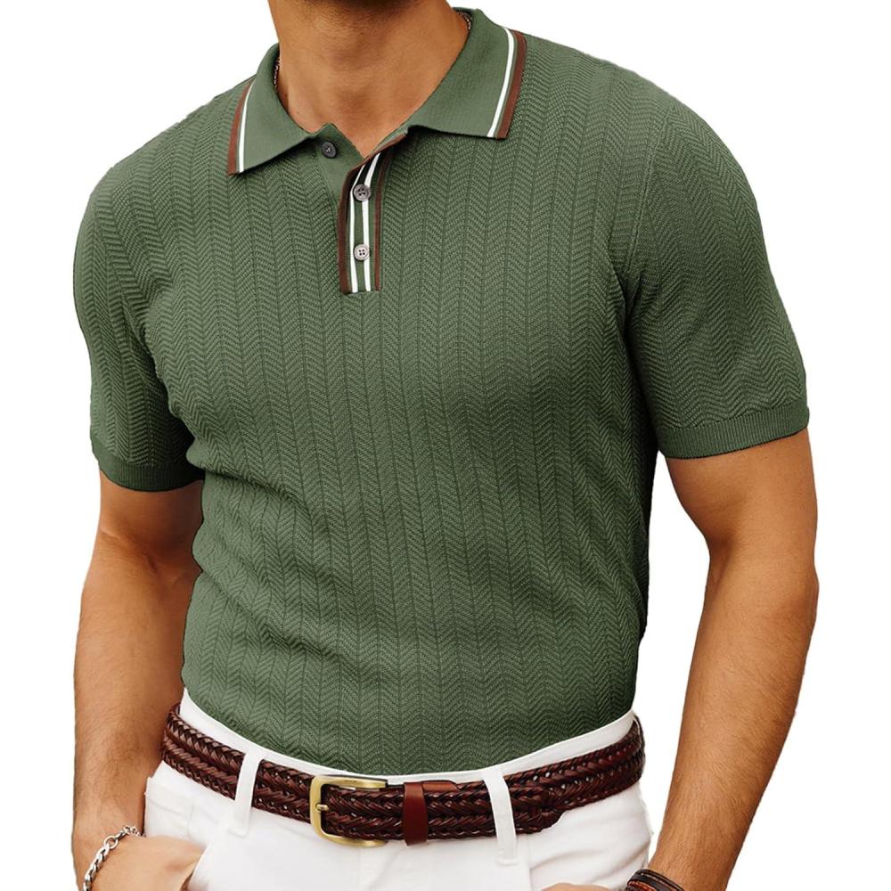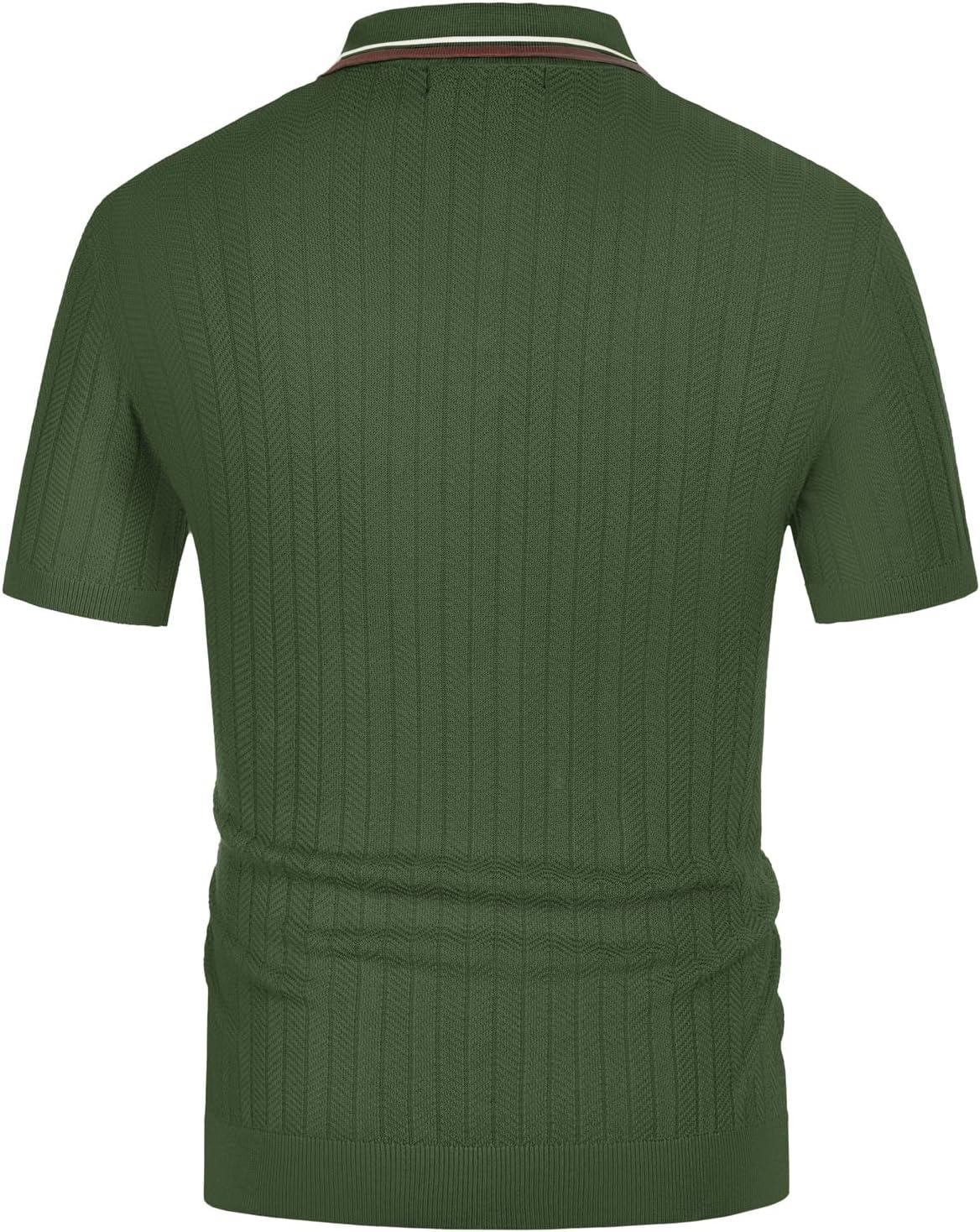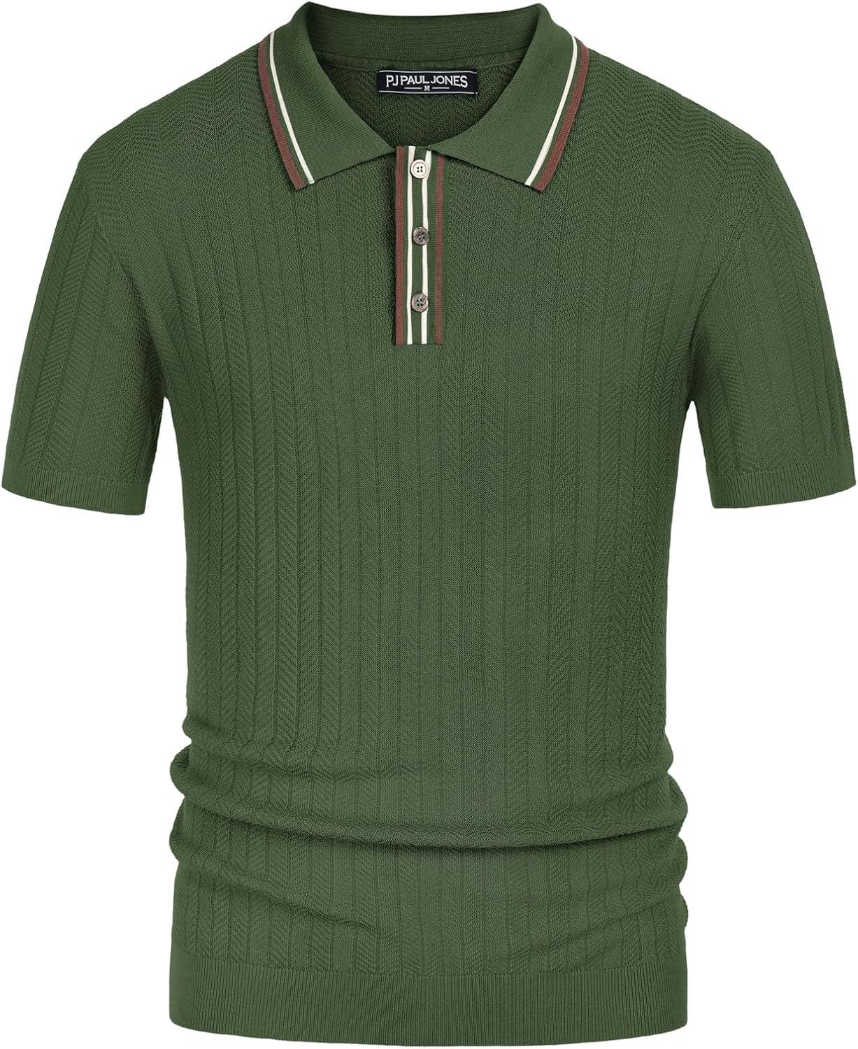 PJ PAUL JONES Mens Knitted Polo Shirts Short Sleeve Textured Pullover Golf Polo T Shirts(Green)