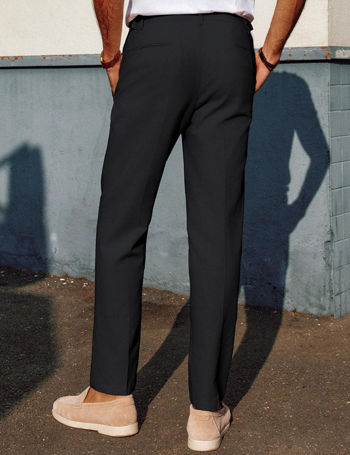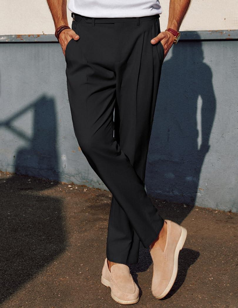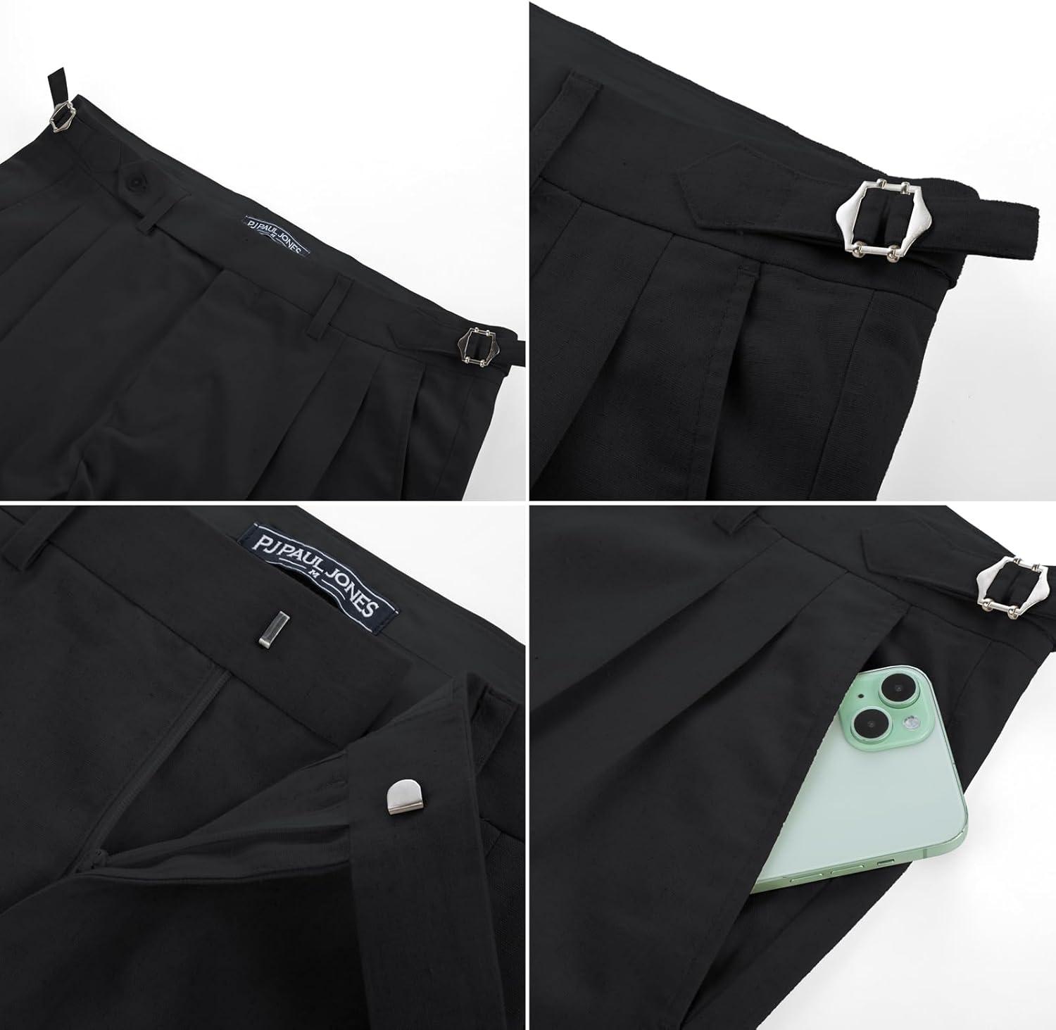 PJ PAUL JONES Mens Linen Dress Pants Casual Slim Fit Expandable Wasit Pleated Front Trousers(Black)