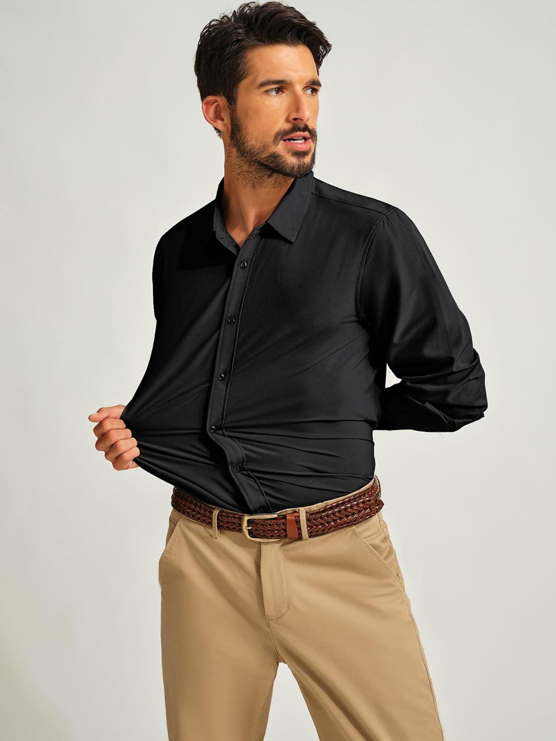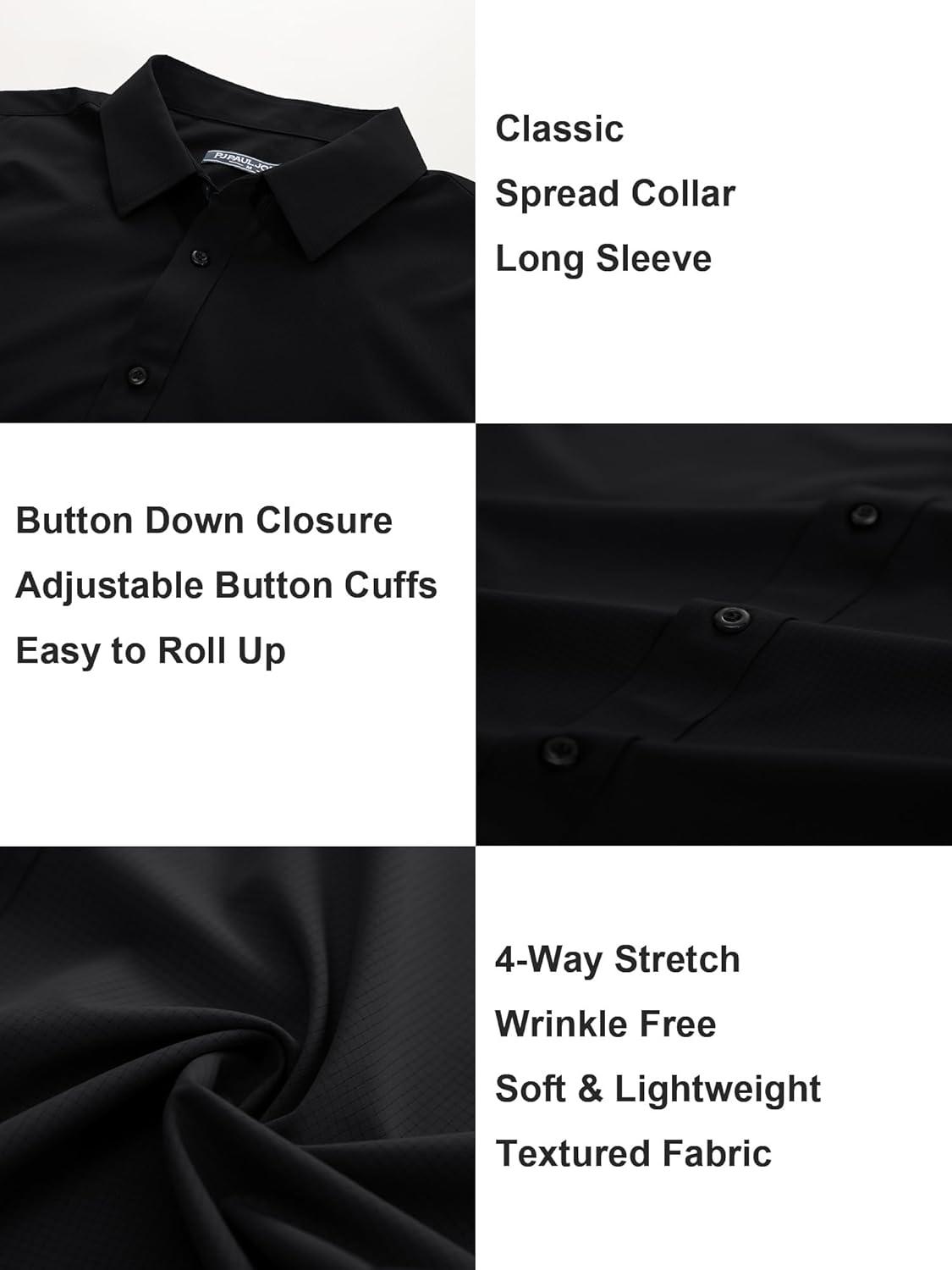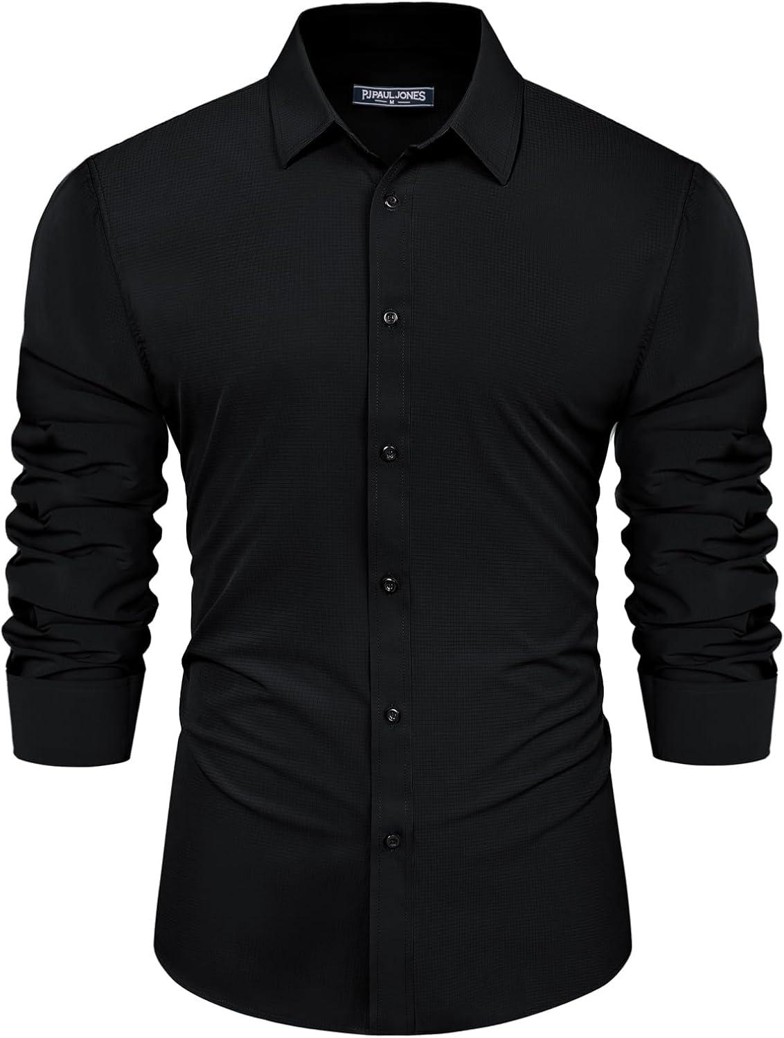 PJ PAUL JONES Mens Long Sleeve Button Down Shirts Wrinkle Free Stretch Untucked Dress Shirts Business Casual Shirt(Black)