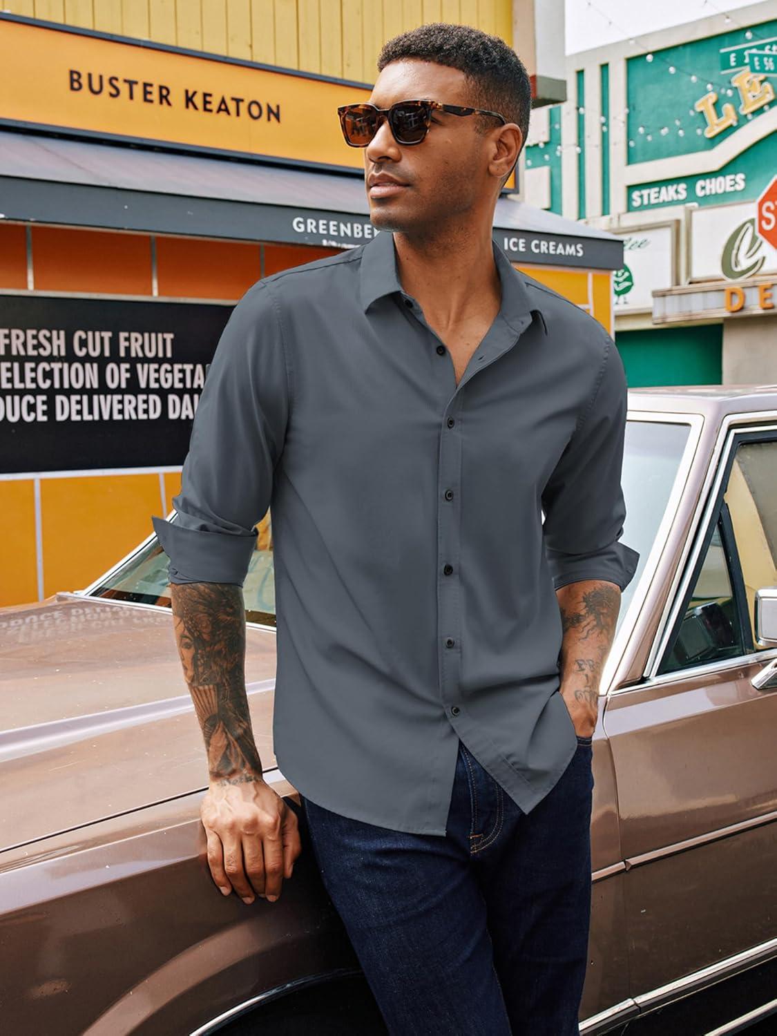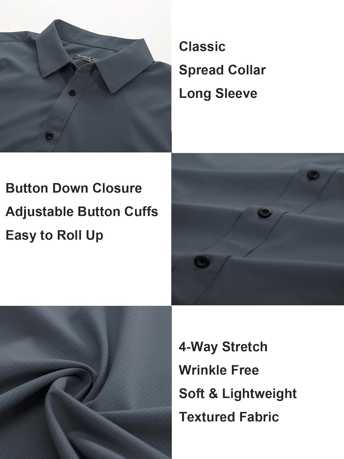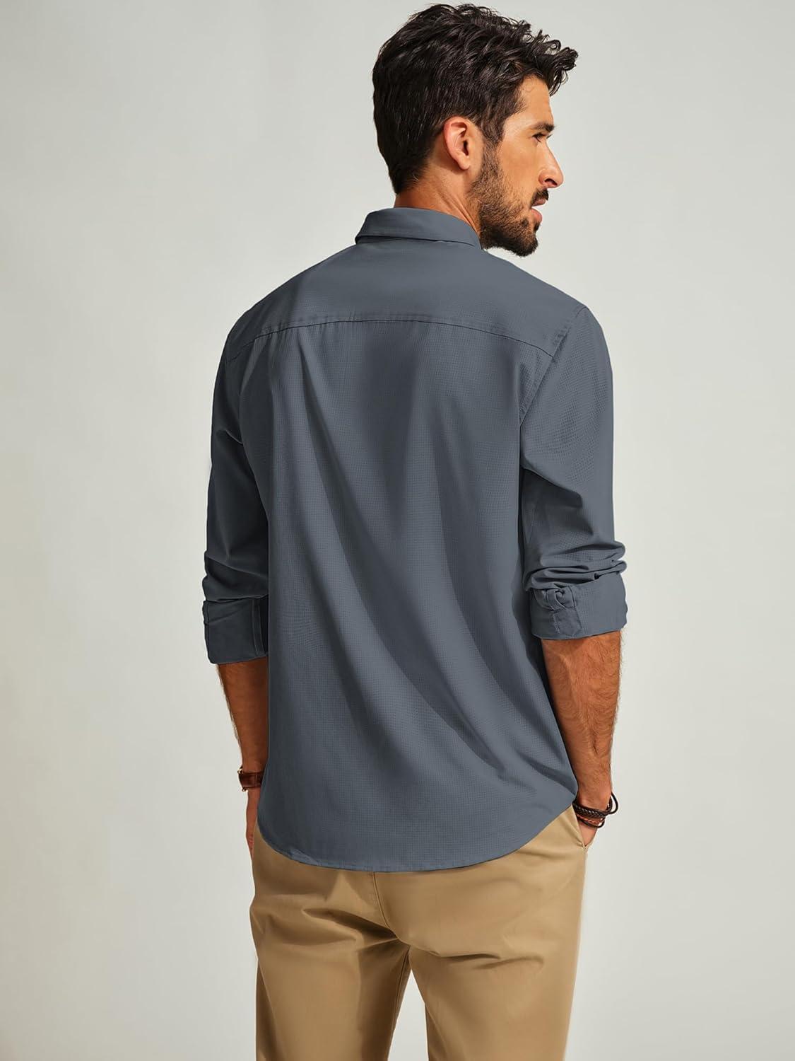 PJ PAUL JONES Mens Long Sleeve Button Down Shirts Wrinkle Free Stretch Untucked Dress Shirts Business Casual Shirt(Blue Grey)