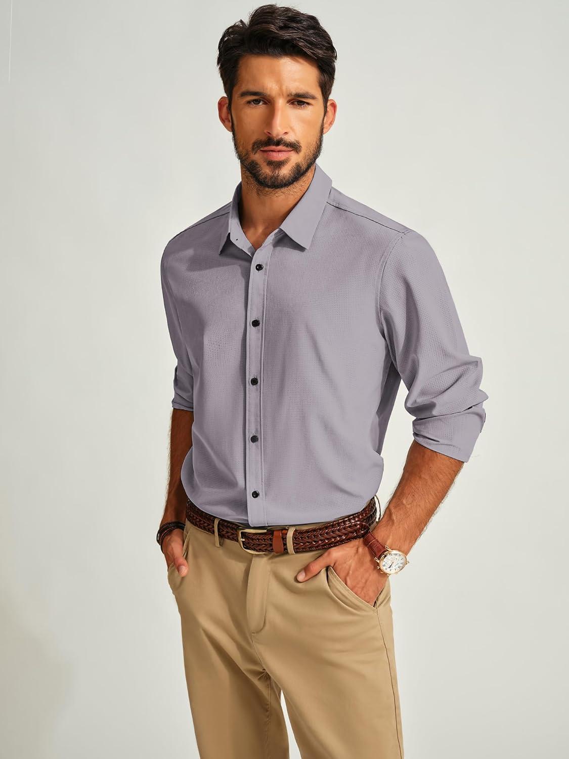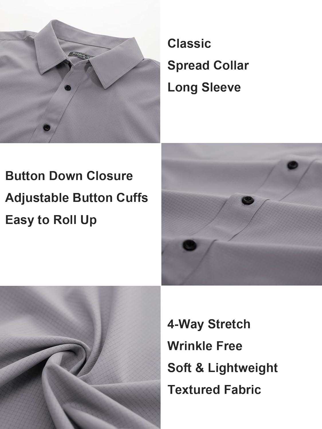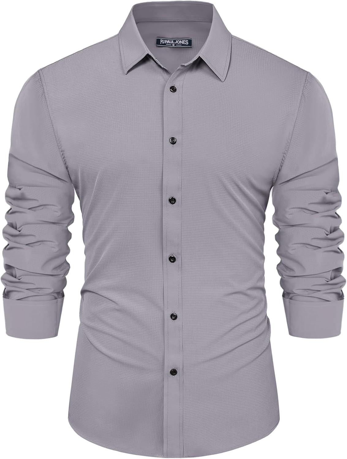 PJ PAUL JONES Mens Long Sleeve Button Down Shirts Wrinkle Free Stretch Untucked Dress Shirts Business Casual Shirt(Purple Grey)