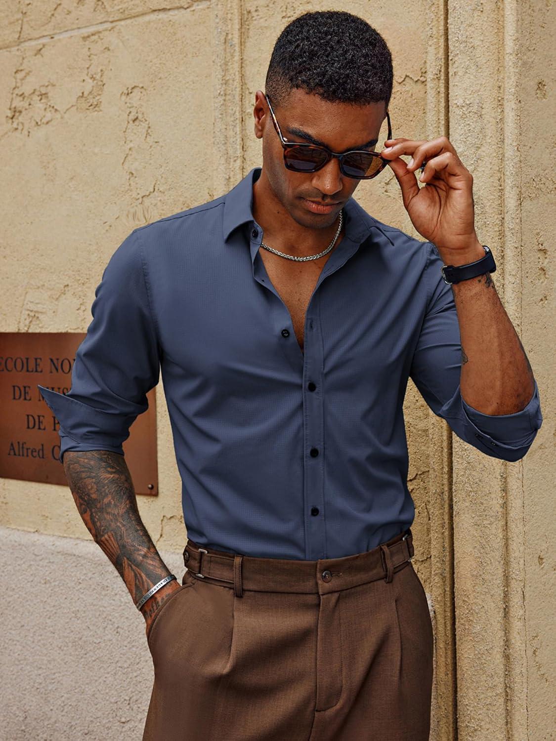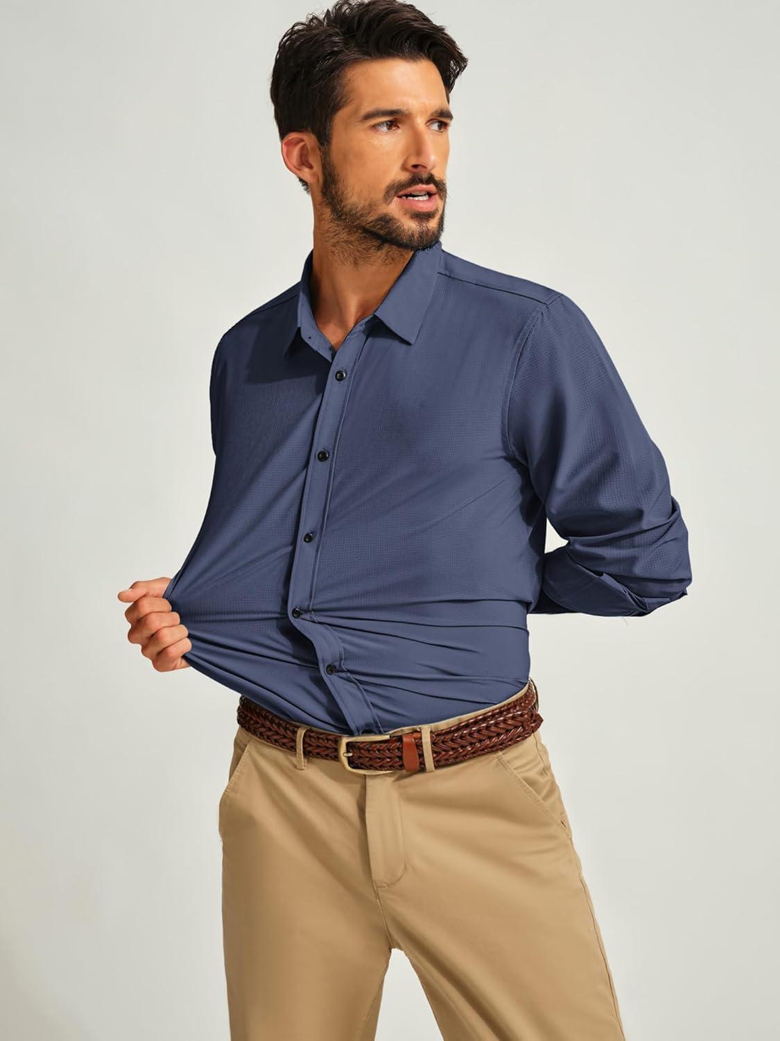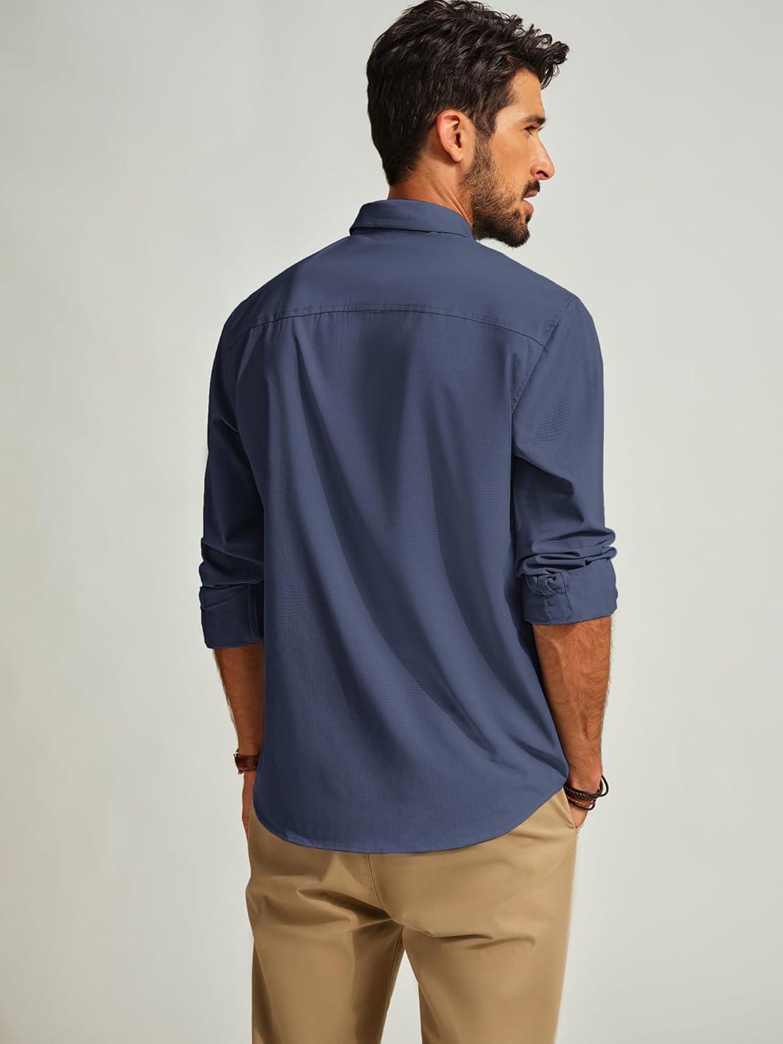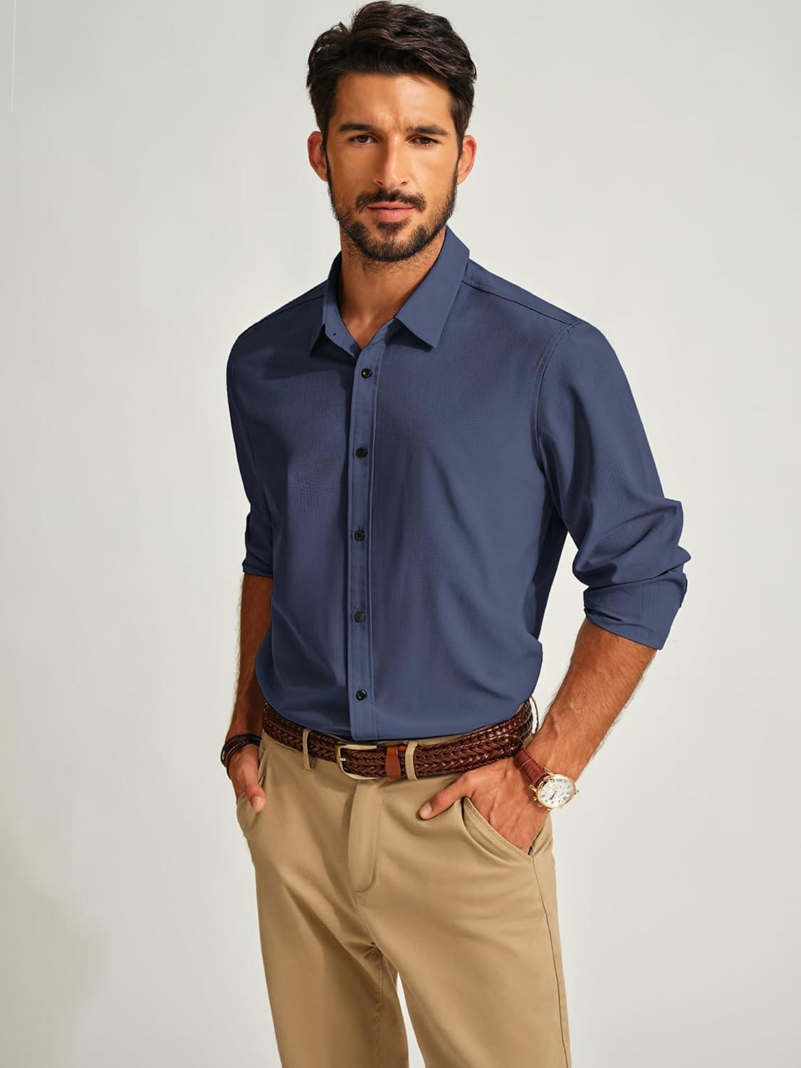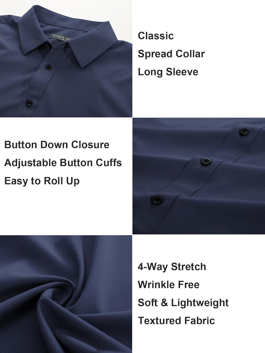 PJ PAUL JONES Mens Long Sleeve Button Down Shirts Wrinkle Free Stretch Untucked Dress Shirts Business Casual Shirt(Royal Blue)