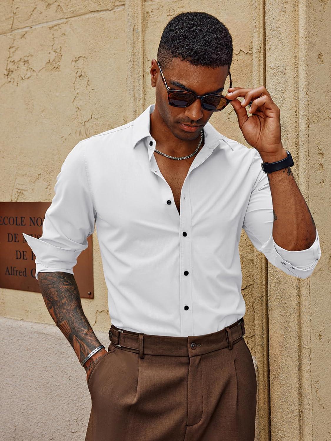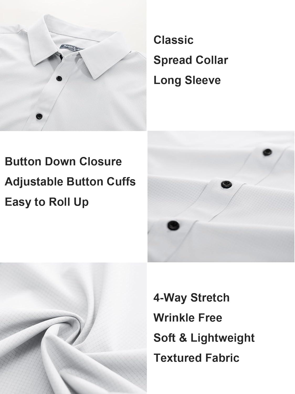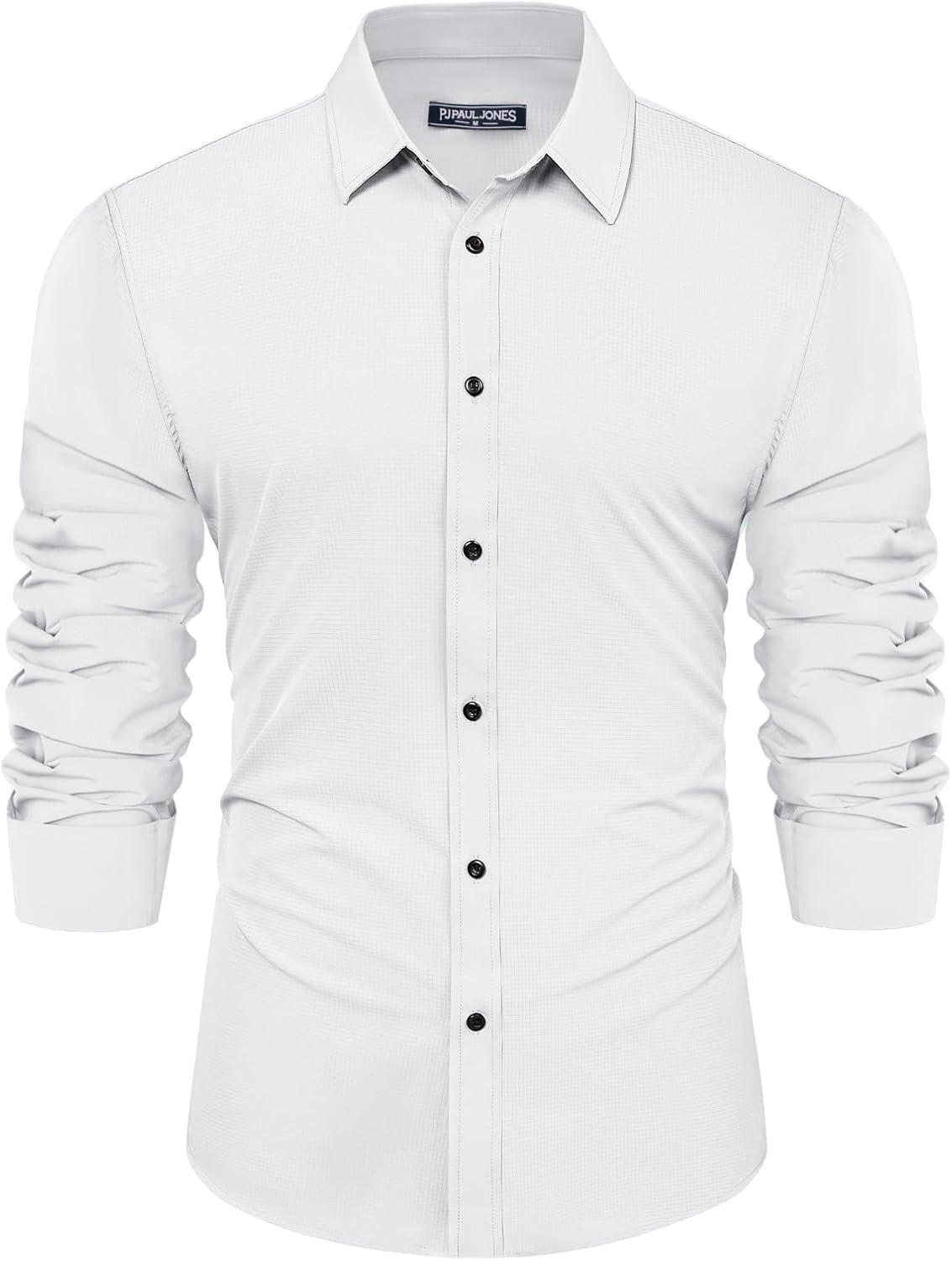 PJ PAUL JONES Mens Long Sleeve Button Down Shirts Wrinkle Free Stretch Untucked Dress Shirts Business Casual Shirt(White)