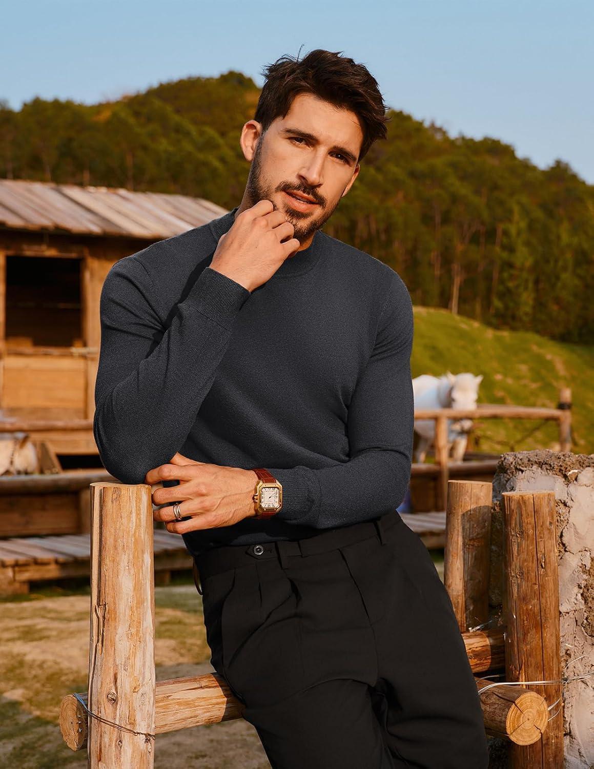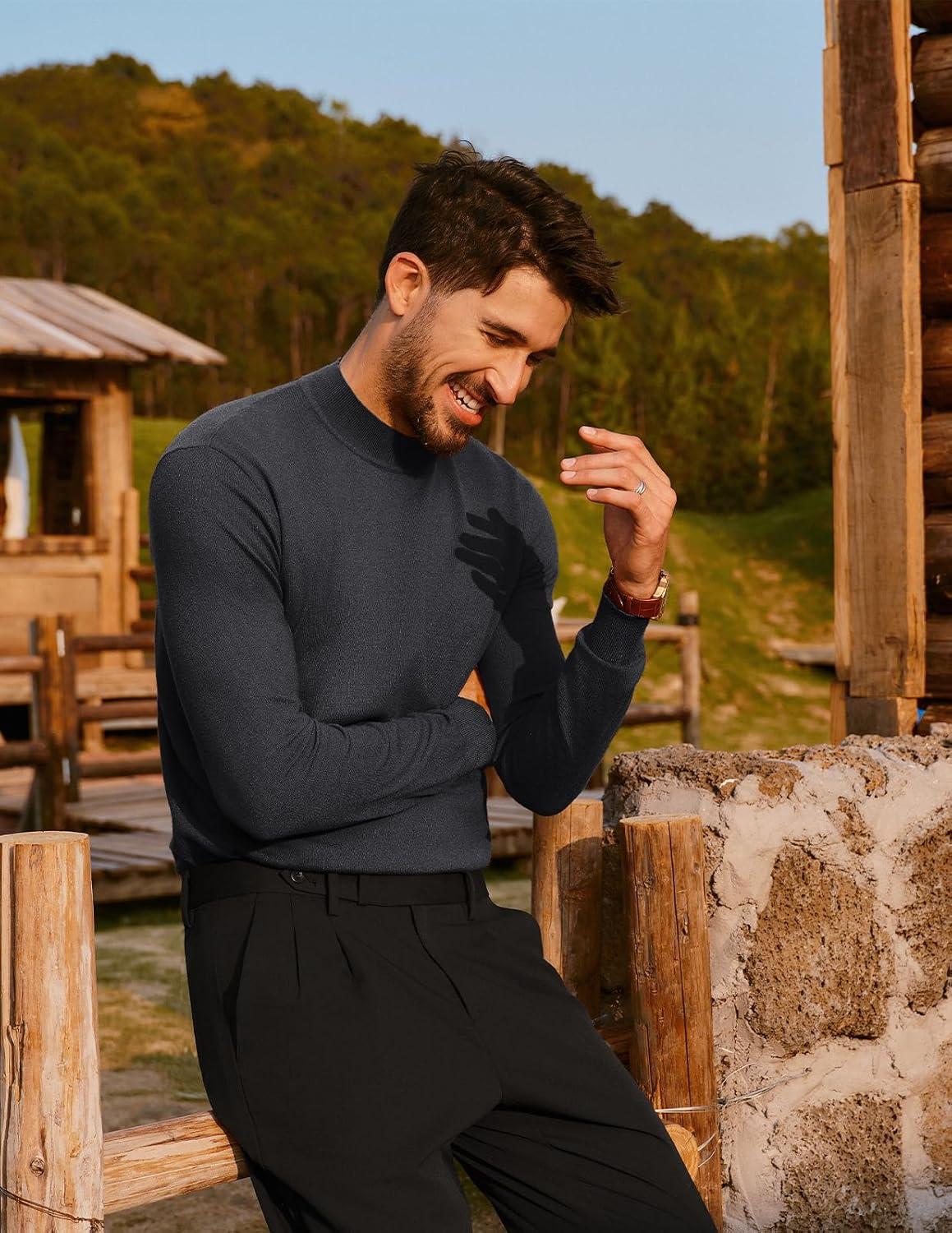 PJ PAUL JONES Mens Mock Turtleneck Sweater Long Sleeve Casual Pullover Sweater Slim Fit Basic Knit Tee(Grey)