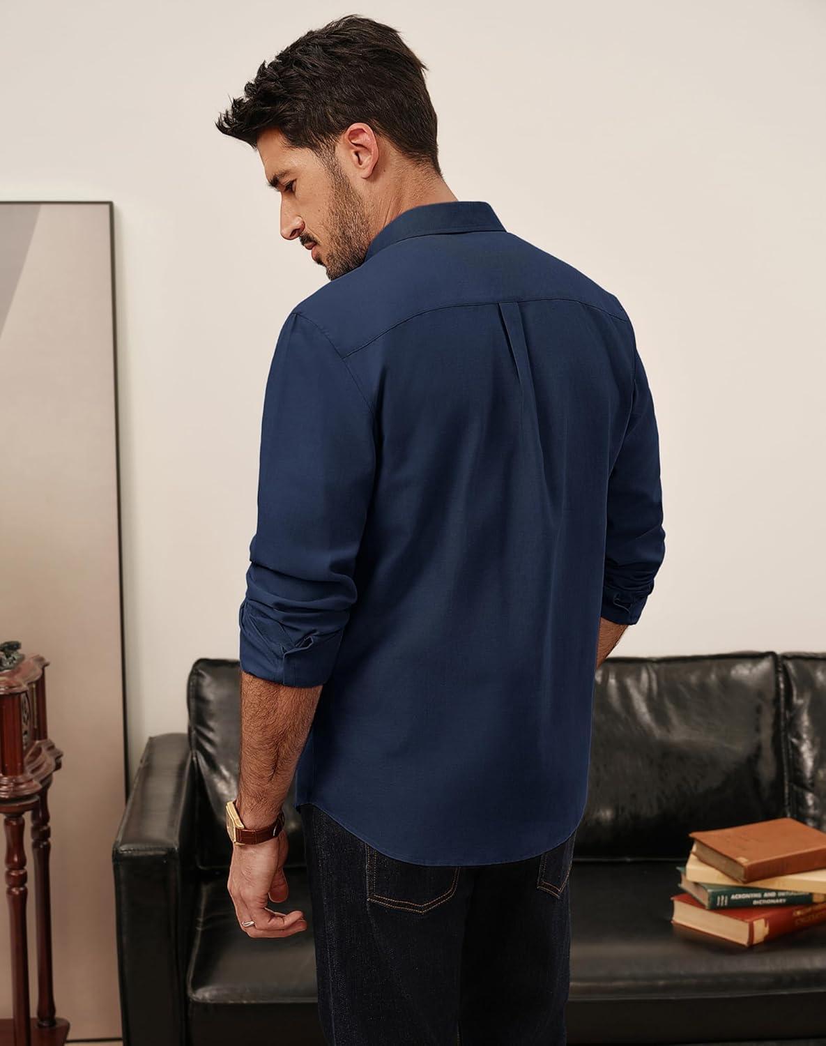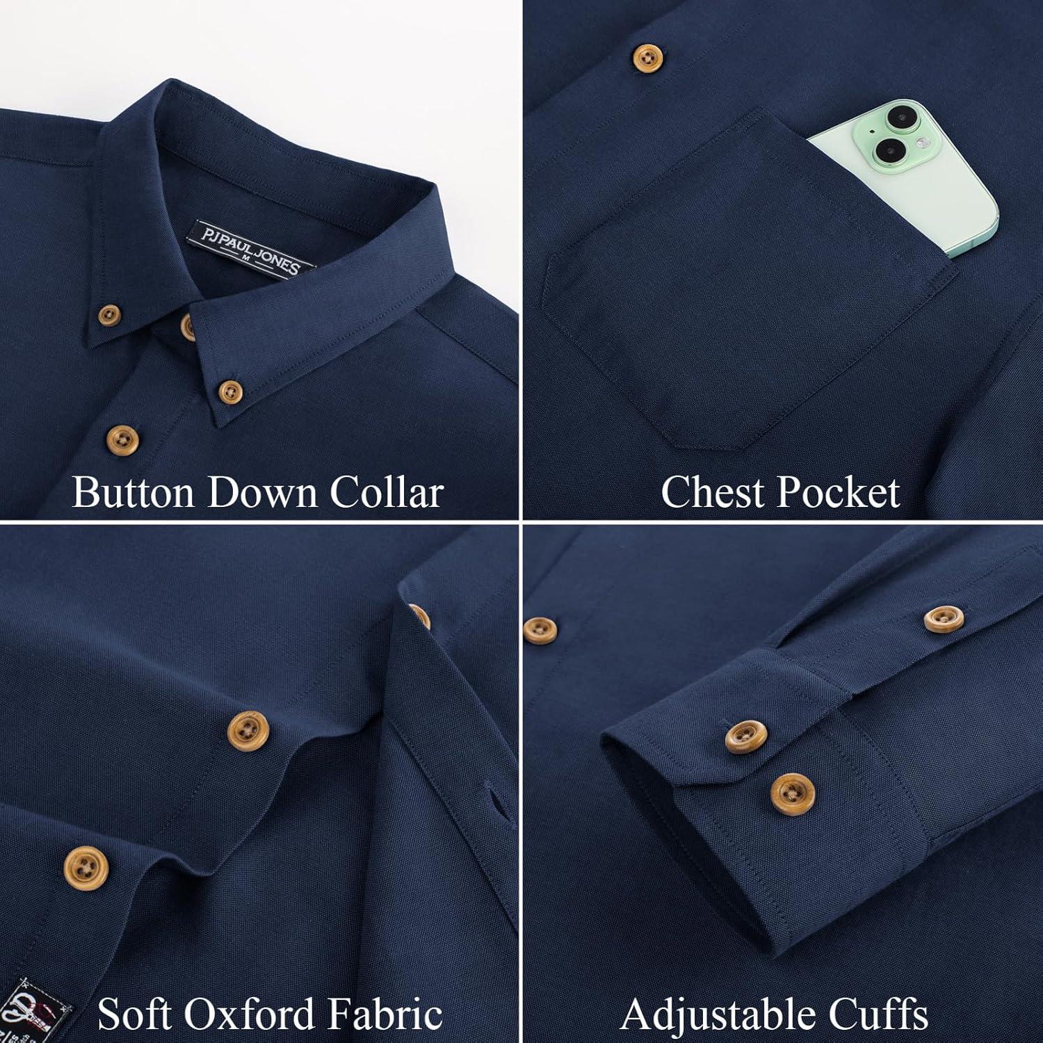PJ PAUL JONES Men’s Oxford Button Down Shirt Long Sleeve Regular Fit Business Casual Dress Shirts with Chest Pocket(Navy Blue)