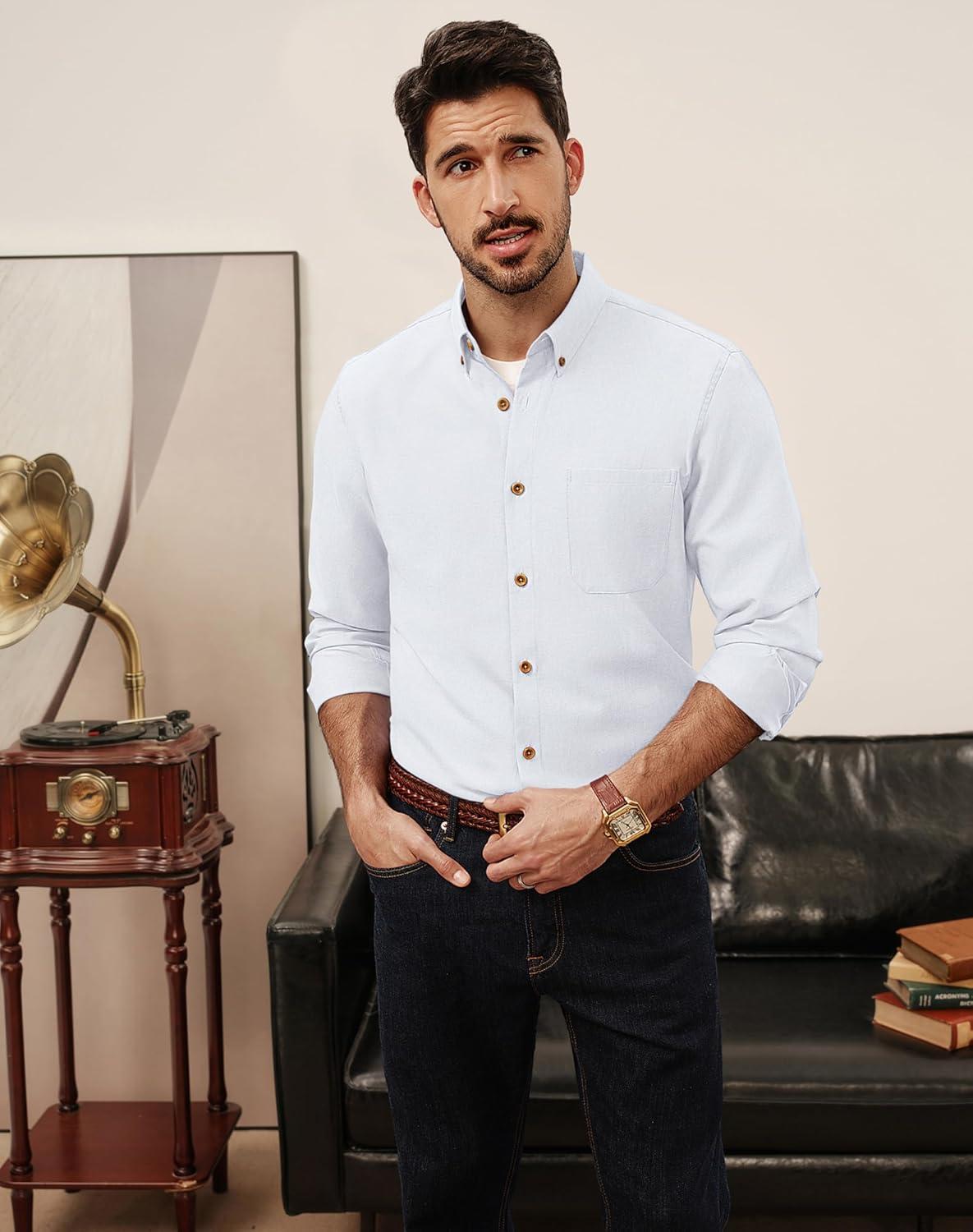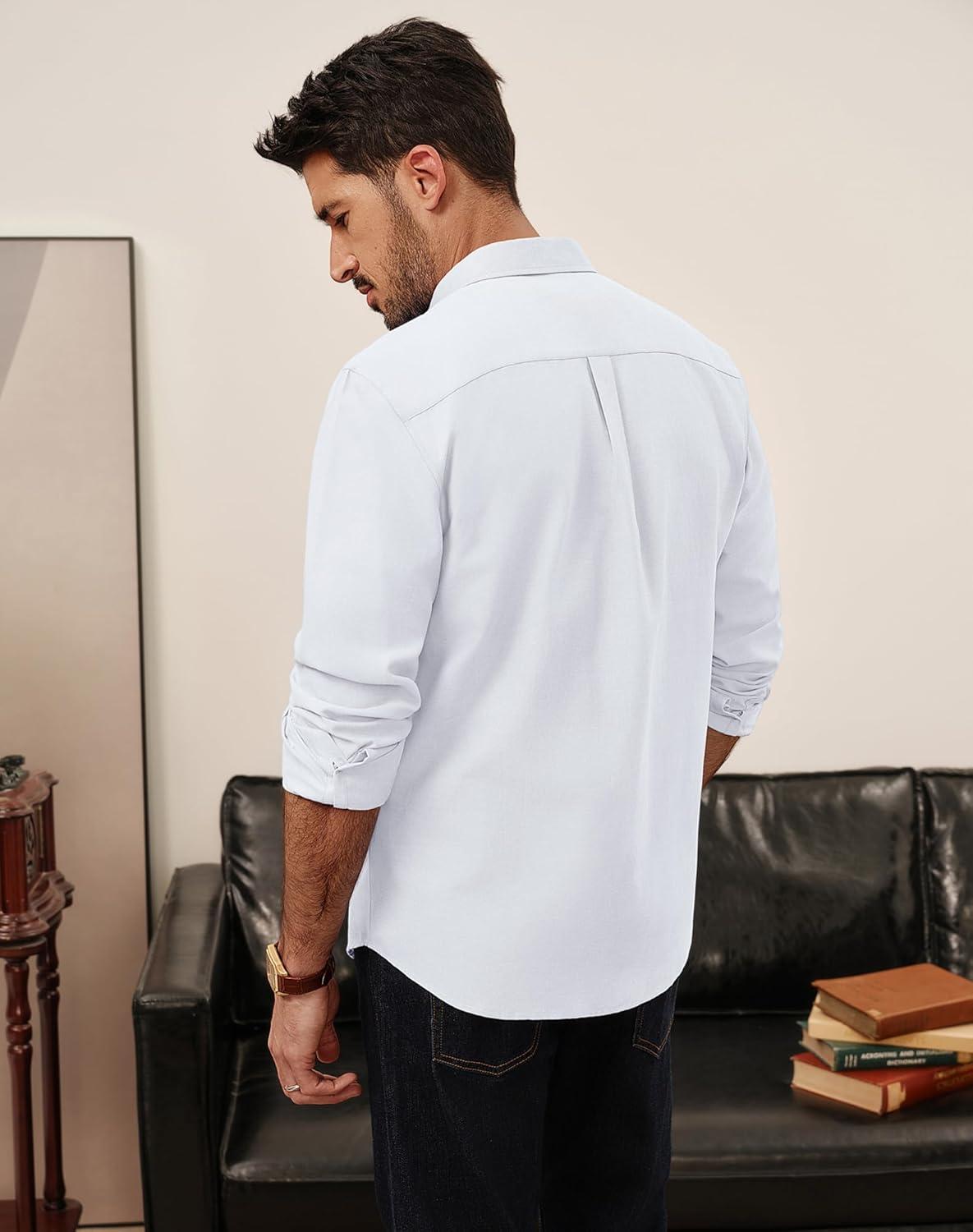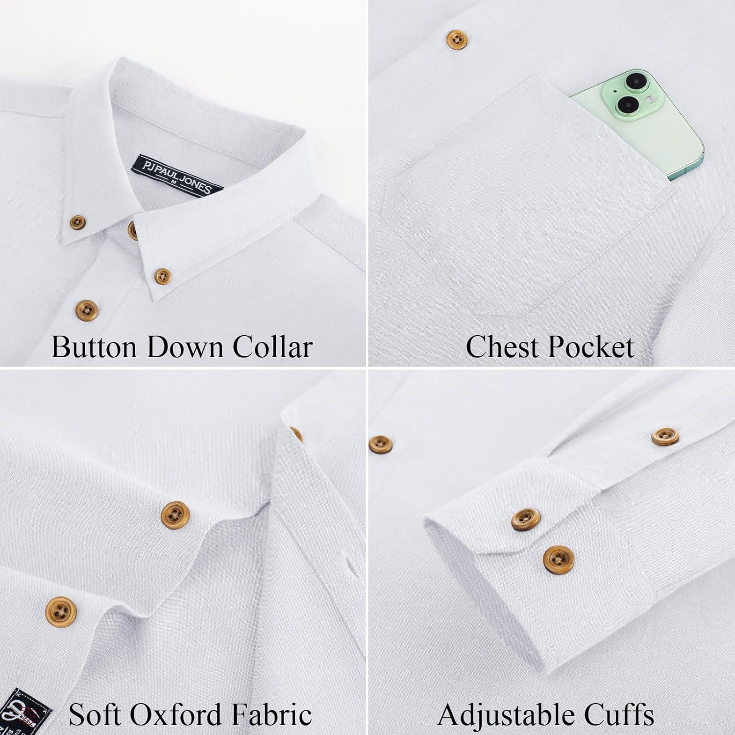PJ PAUL JONES Men’s Oxford Button Down Shirt Long Sleeve Regular Fit Business Casual Dress Shirts with Chest Pocket(White)