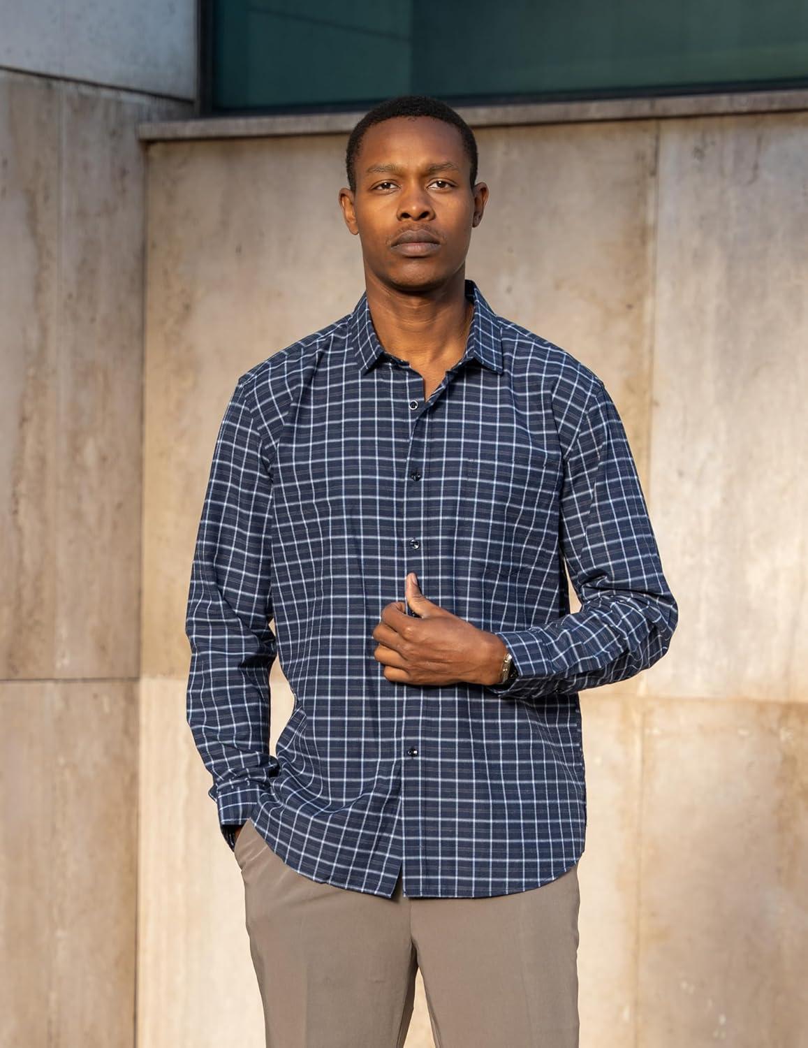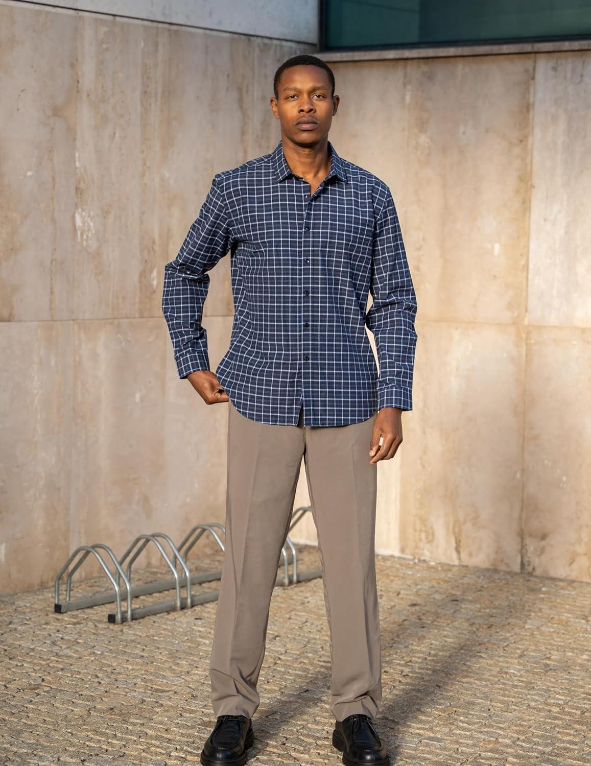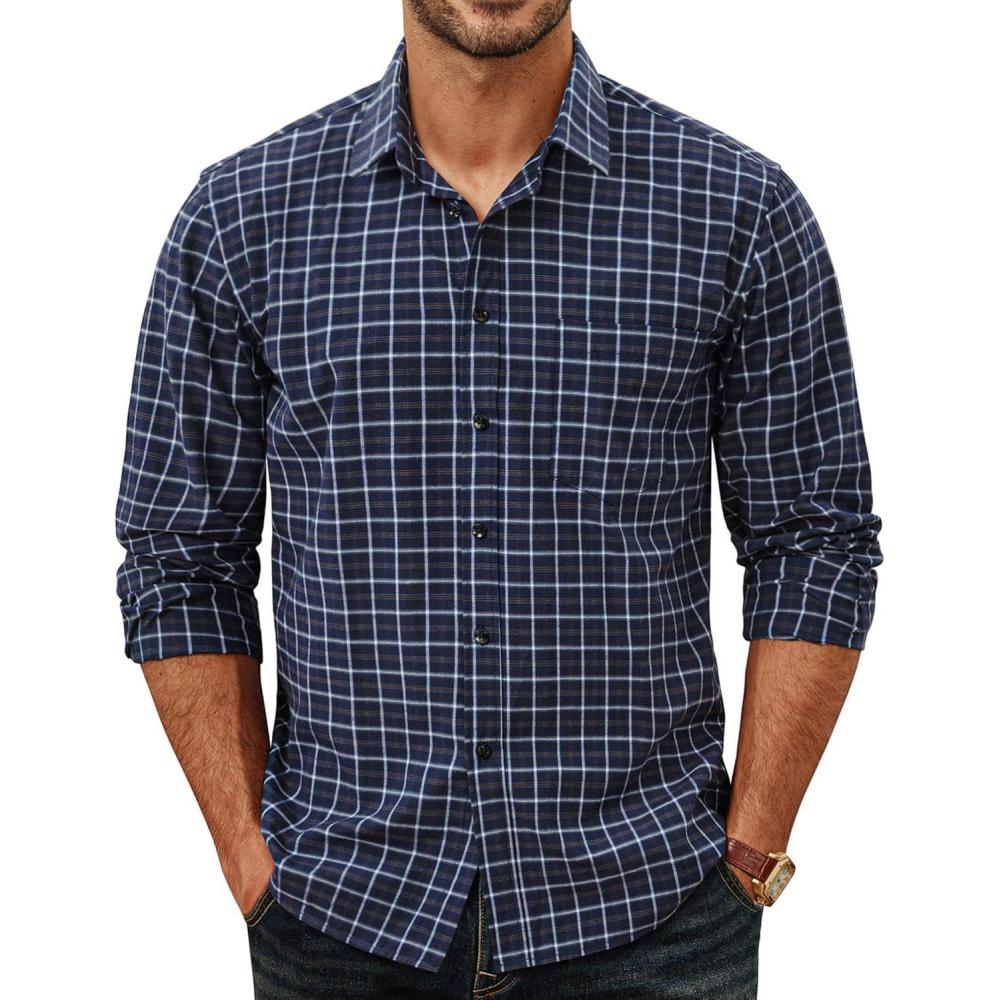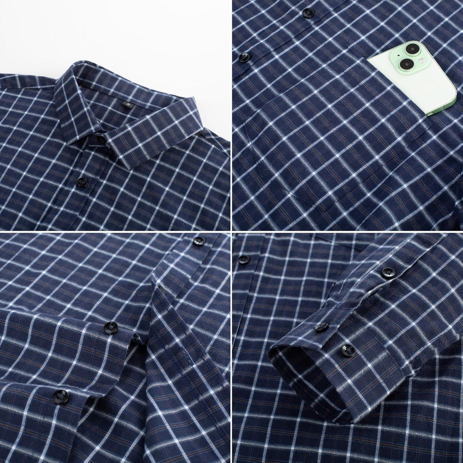 PJ PAUL JONES Men‘s Plaid Button Down Shirt Cotton Long Sleeve Dress Shirt Casual Gingham Shirts(Navy Gingham)