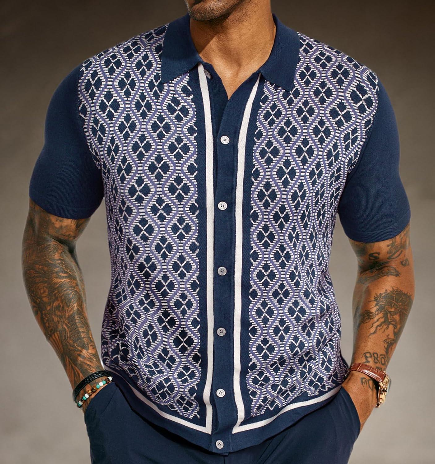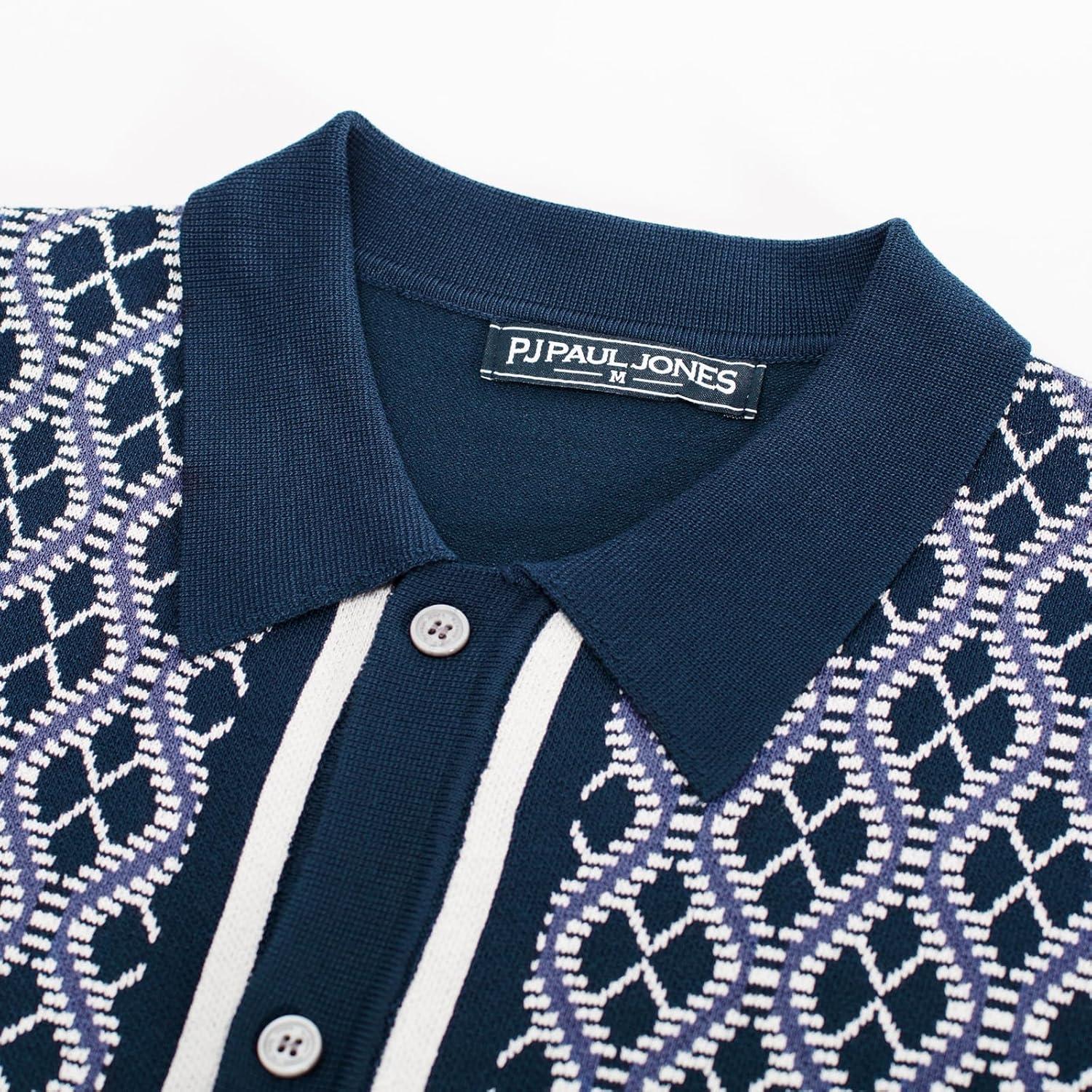 PJ PAUL JONES Men’s Polo Shirts 70s Vintage Shirts Contrast Knitted Polo Shirts(Dark Blue)
