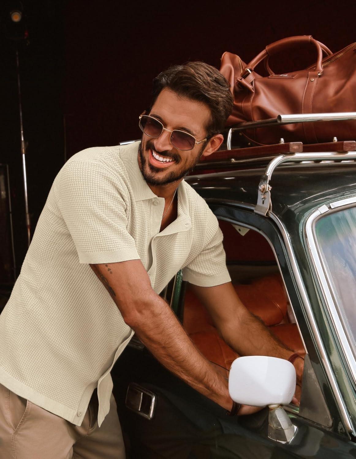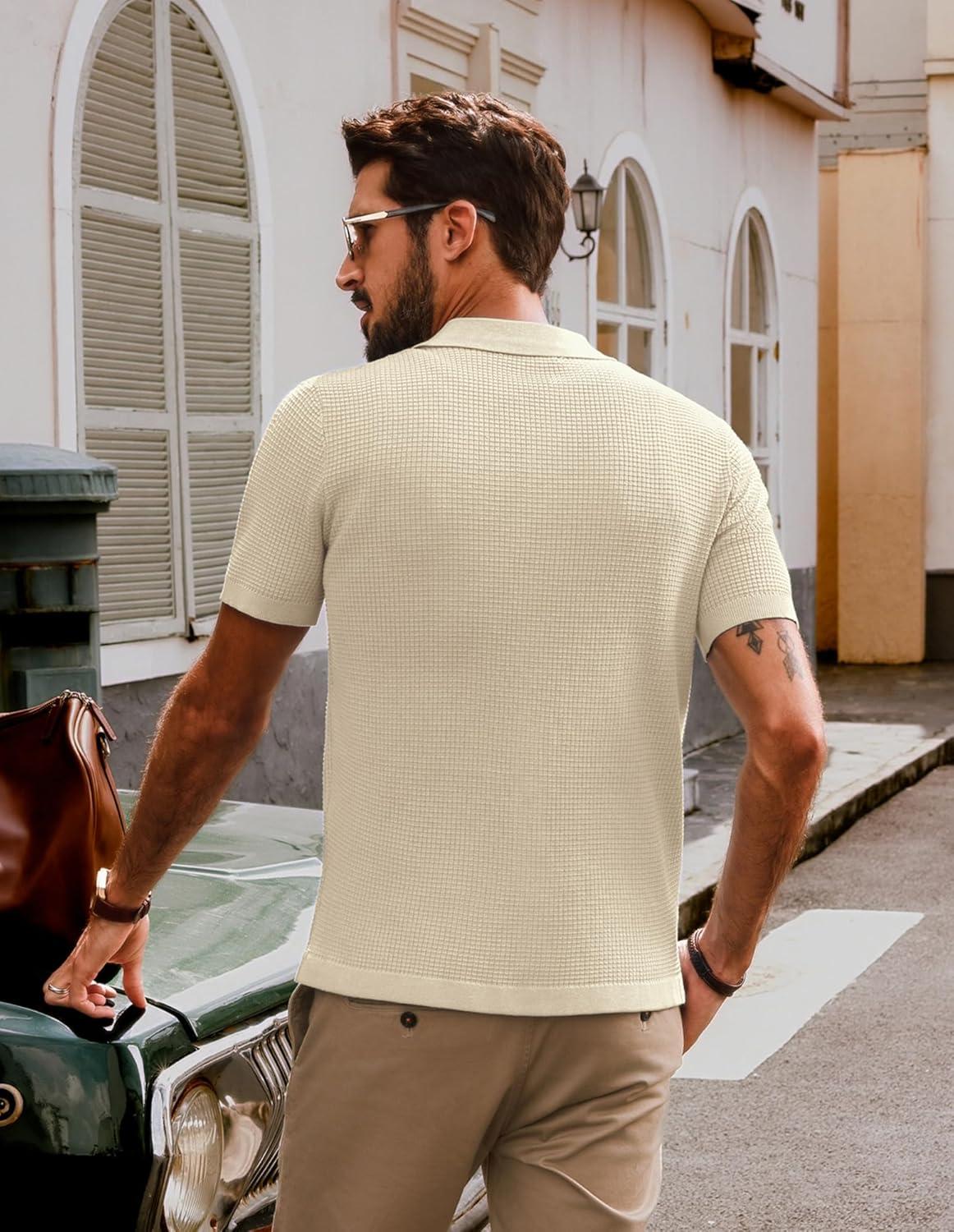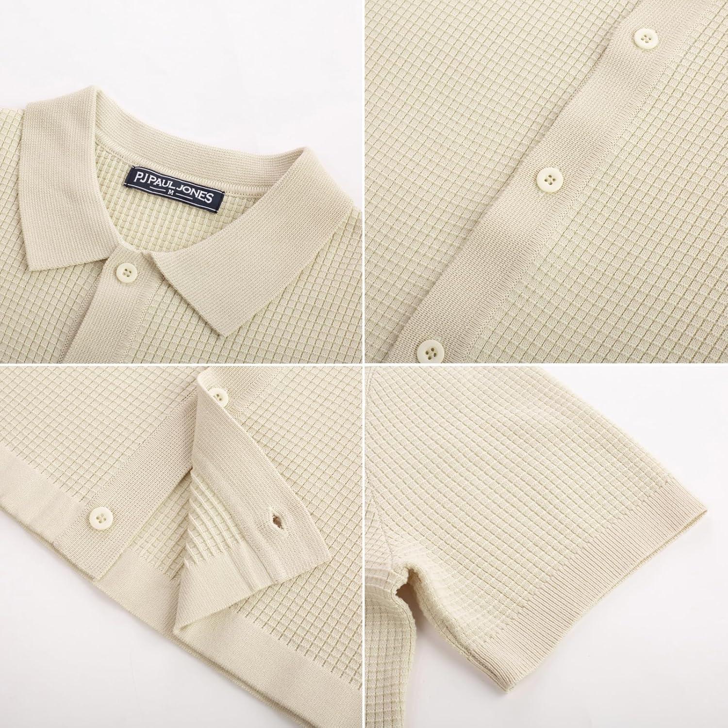 PJ PAUL JONES Mens Polo Shirts Casual Textured Knittd Shirts Lightweight Breathable Polo Shirt(Apricot)