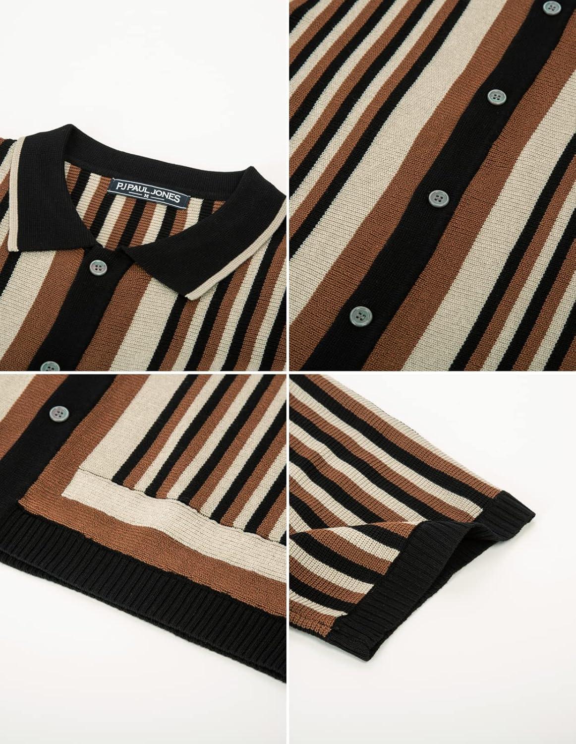PJ PAUL JONES Men’s Polo Shirts Retro Knit Shirt Vintage Striped Shirt(Black-coffe)