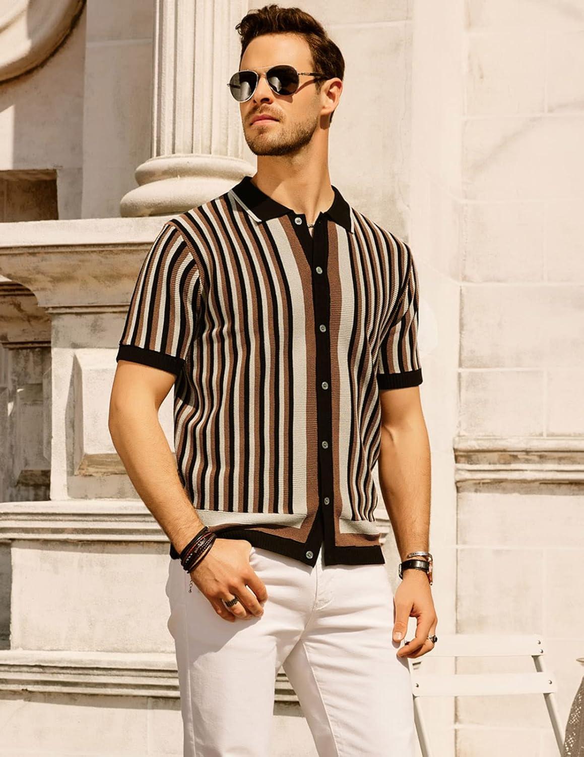 Be the first to review “PJ PAUL JONES Men’s Polo Shirts Retro Knit Shirt Vintage Striped Shirt(Black-coffe)” Cancel reply