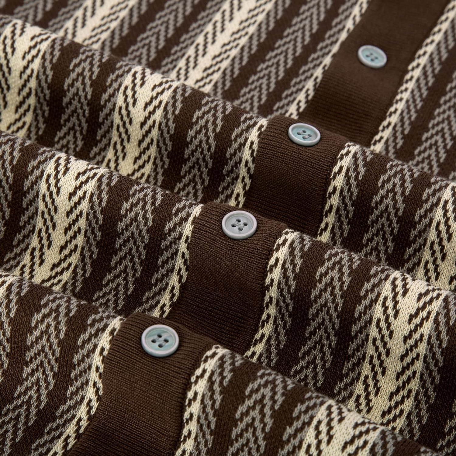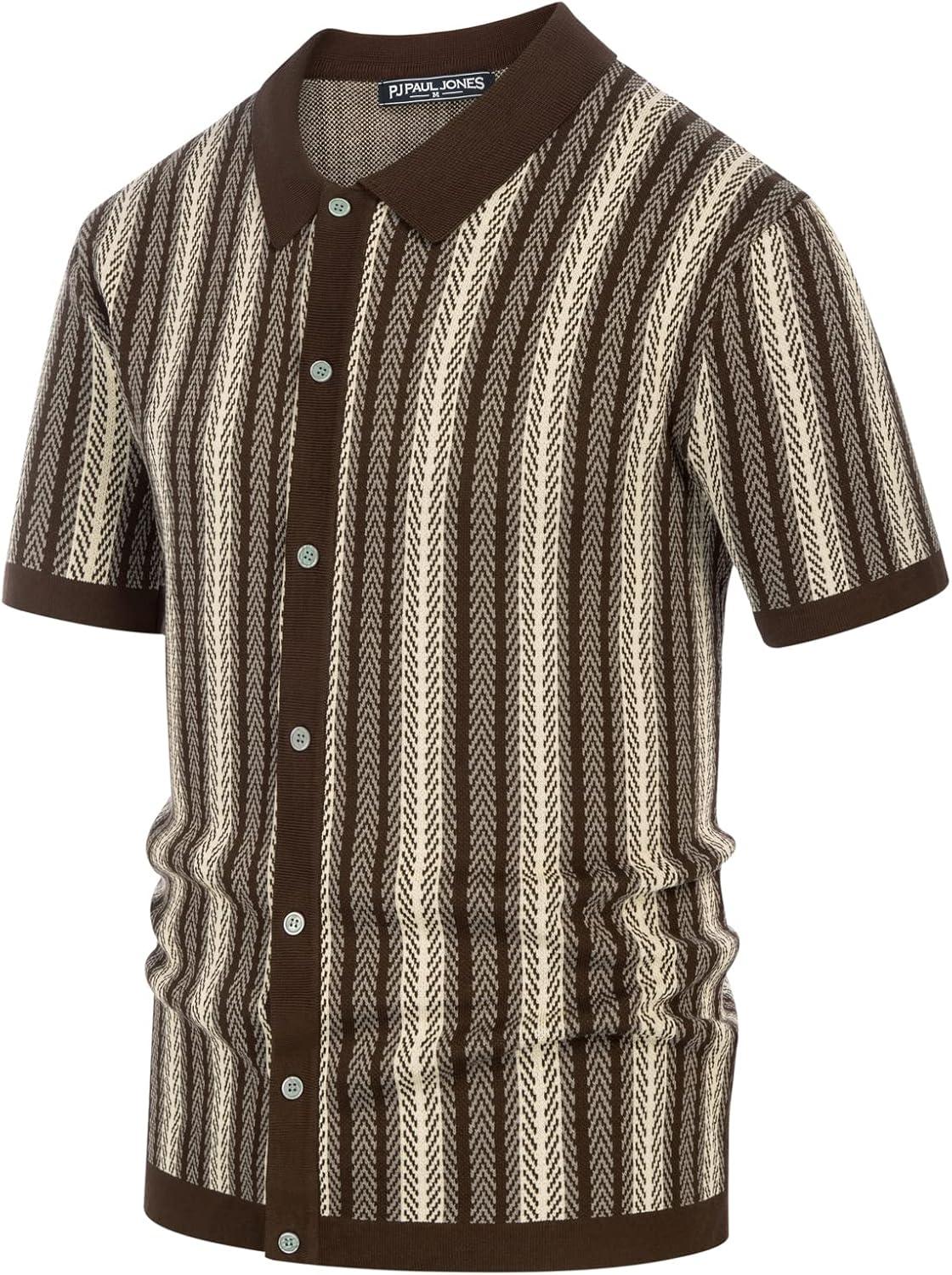 PJ PAUL JONES Men’s Polo Shirts Retro Knit Shirt Vintage Striped Shirt(C Brown)