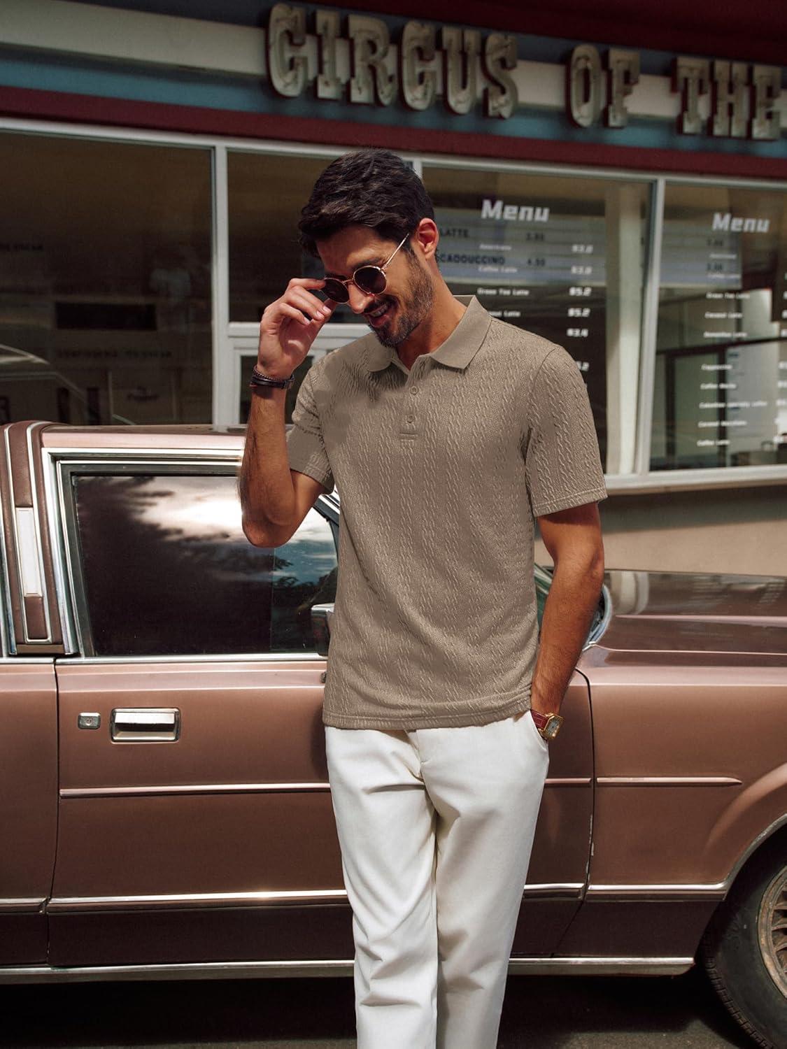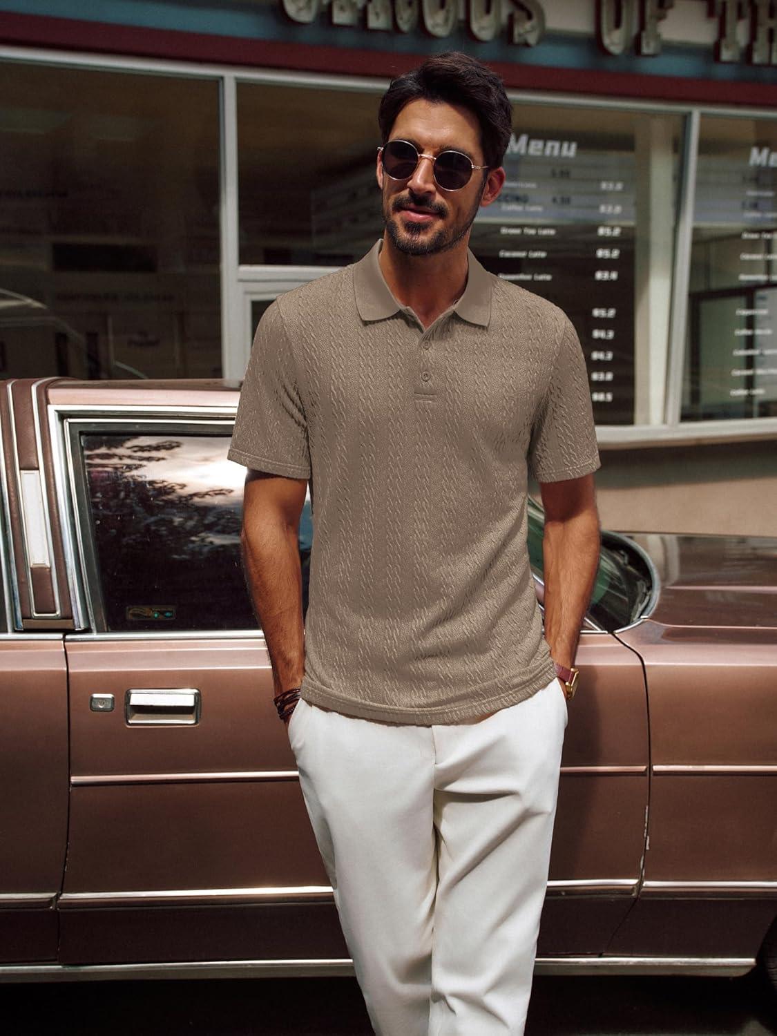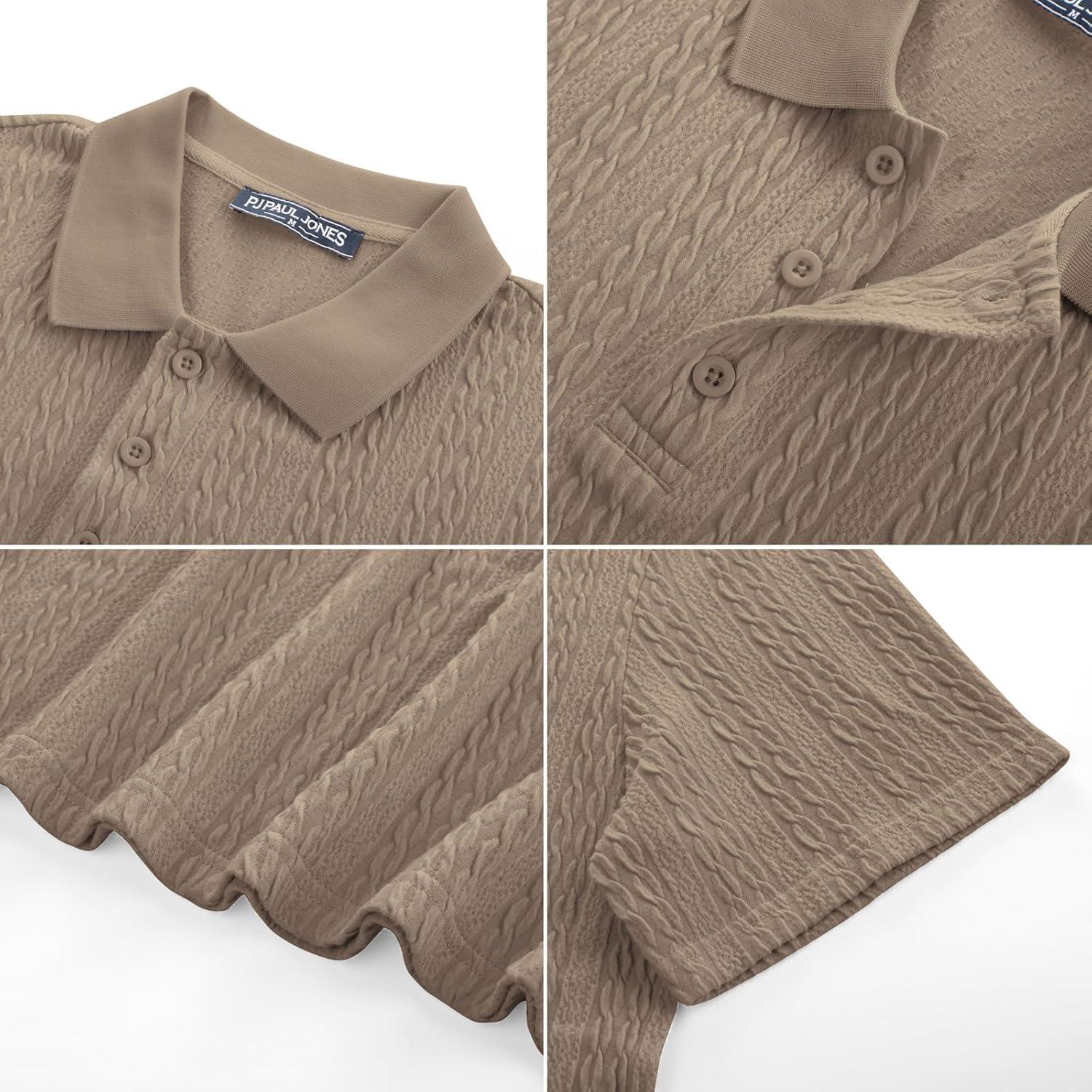 PJ PAUL JONES Mens Polo Shirts Short Sleeve Casual Collared Shirts Textured Stretchy Golf Shirts(Khaki)