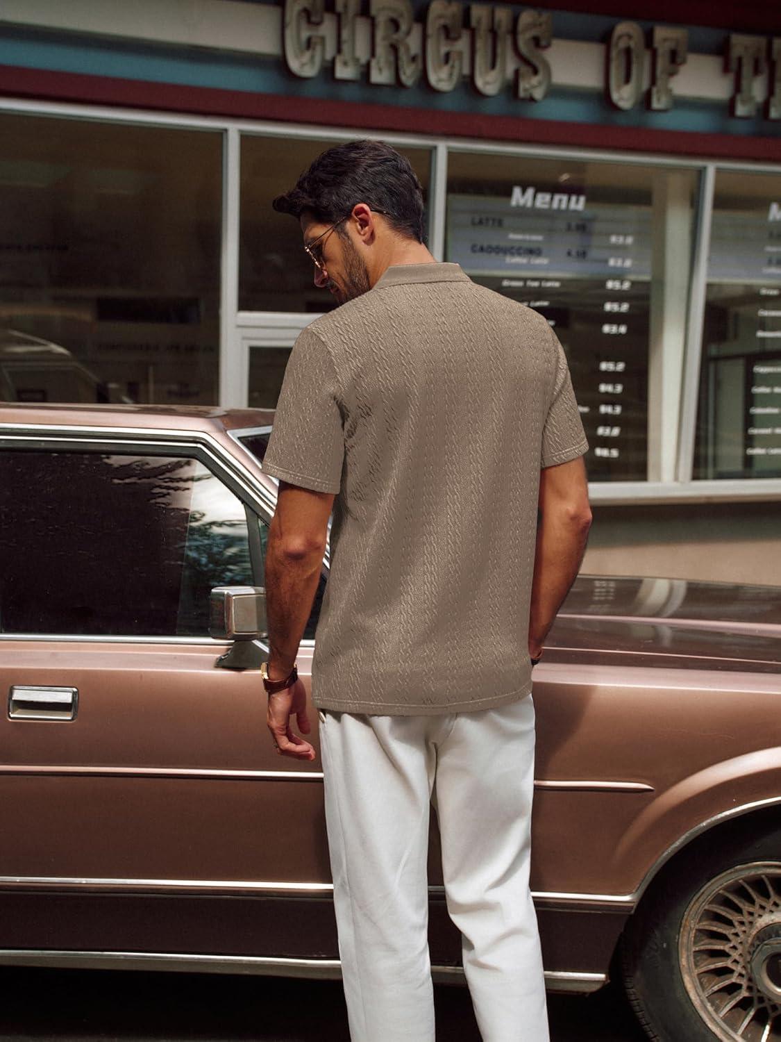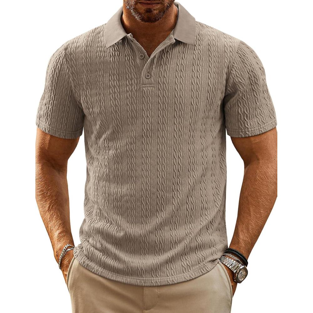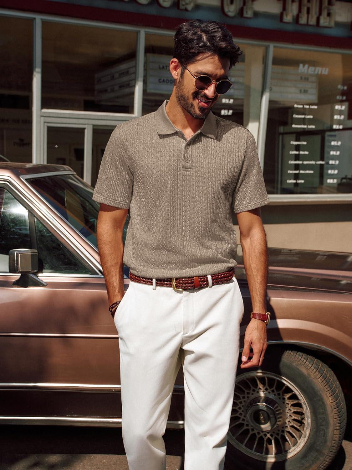 PJ PAUL JONES Mens Polo Shirts Short Sleeve Casual Collared Shirts Textured Stretchy Golf Shirts(Khaki)