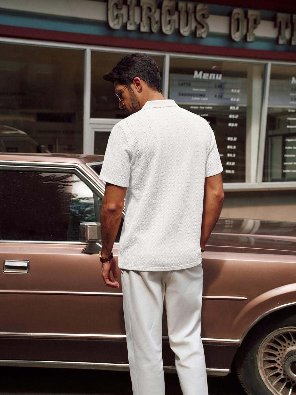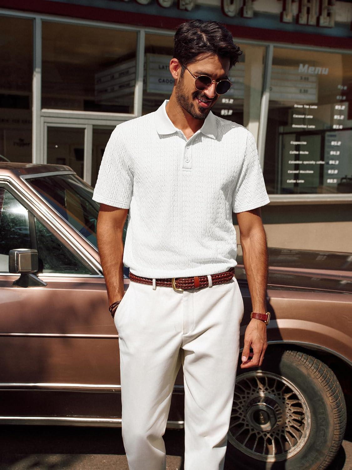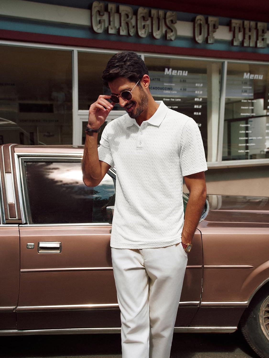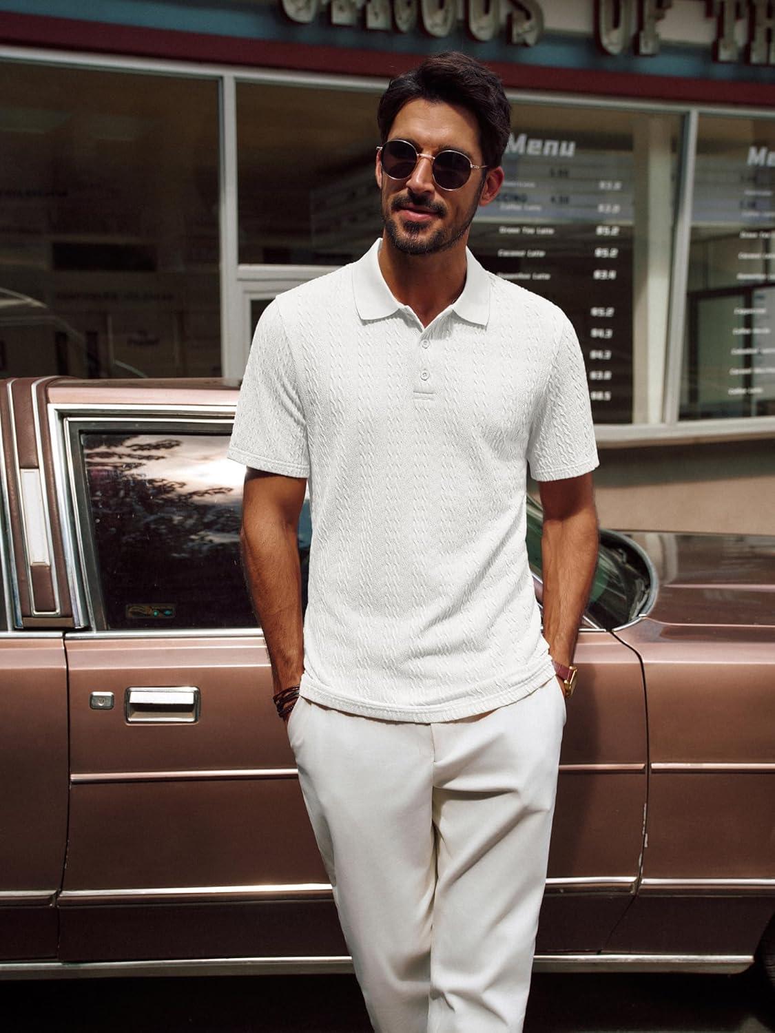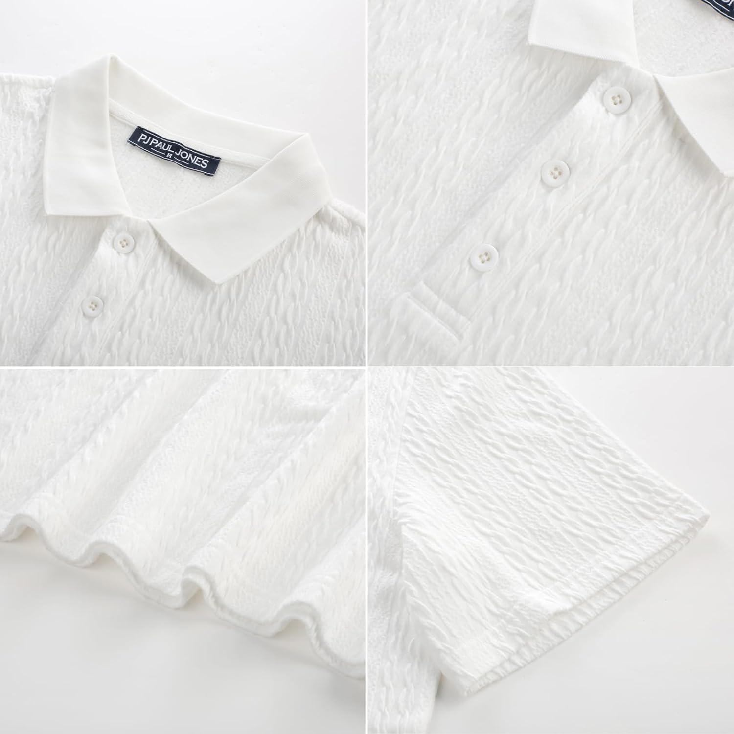 PJ PAUL JONES Mens Polo Shirts Short Sleeve Casual Collared Shirts Textured Stretchy Golf Shirts(White)