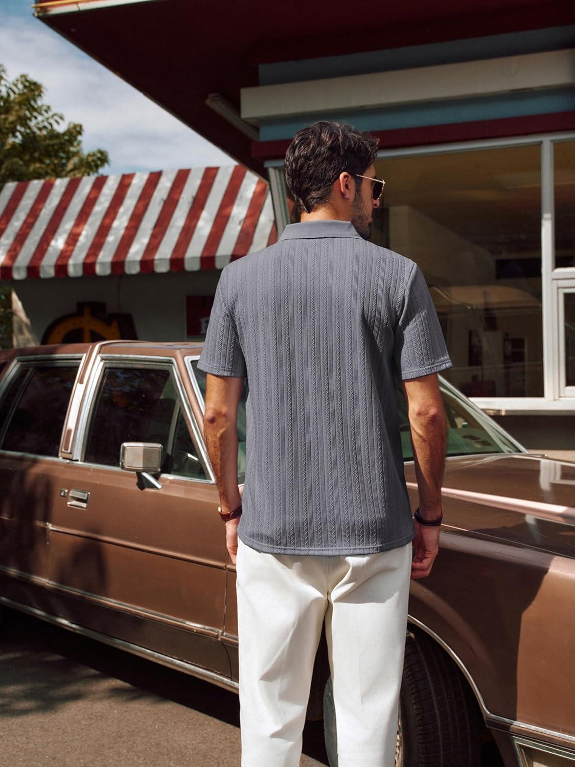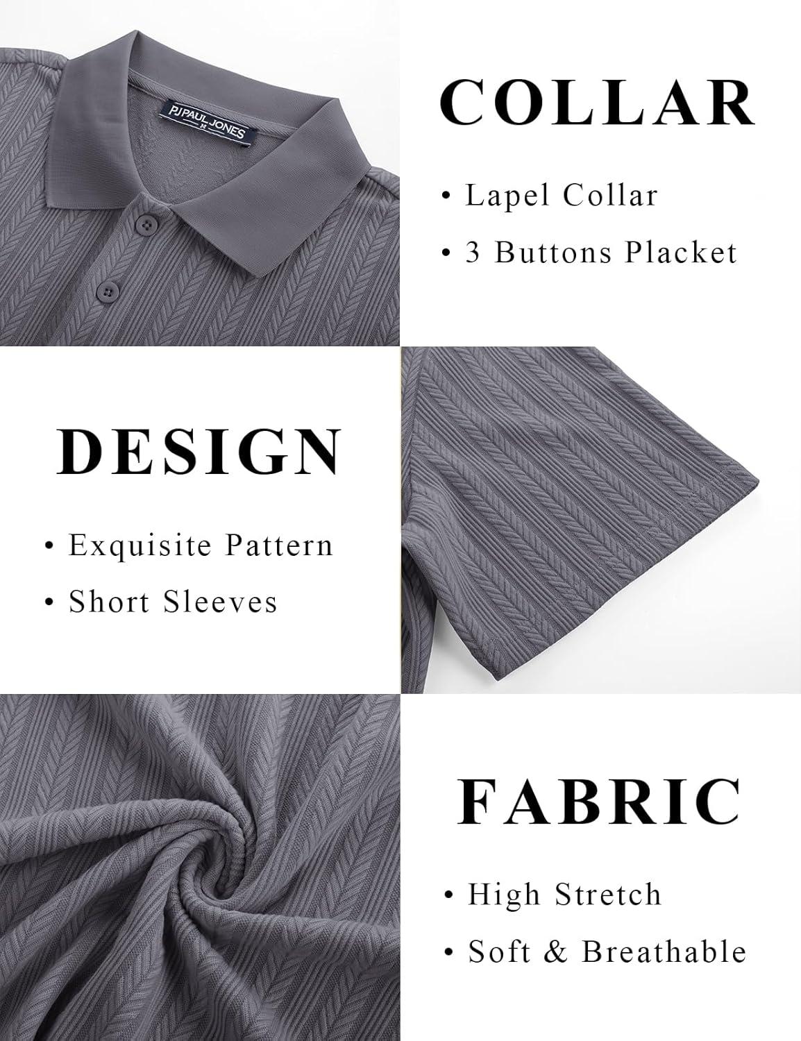 PJ PAUL JONES Mens Polo Shirts Short Sleeve Fashion Textured Polo Shirt Regular Fit Stretchy Golf Shirts(Grey)
