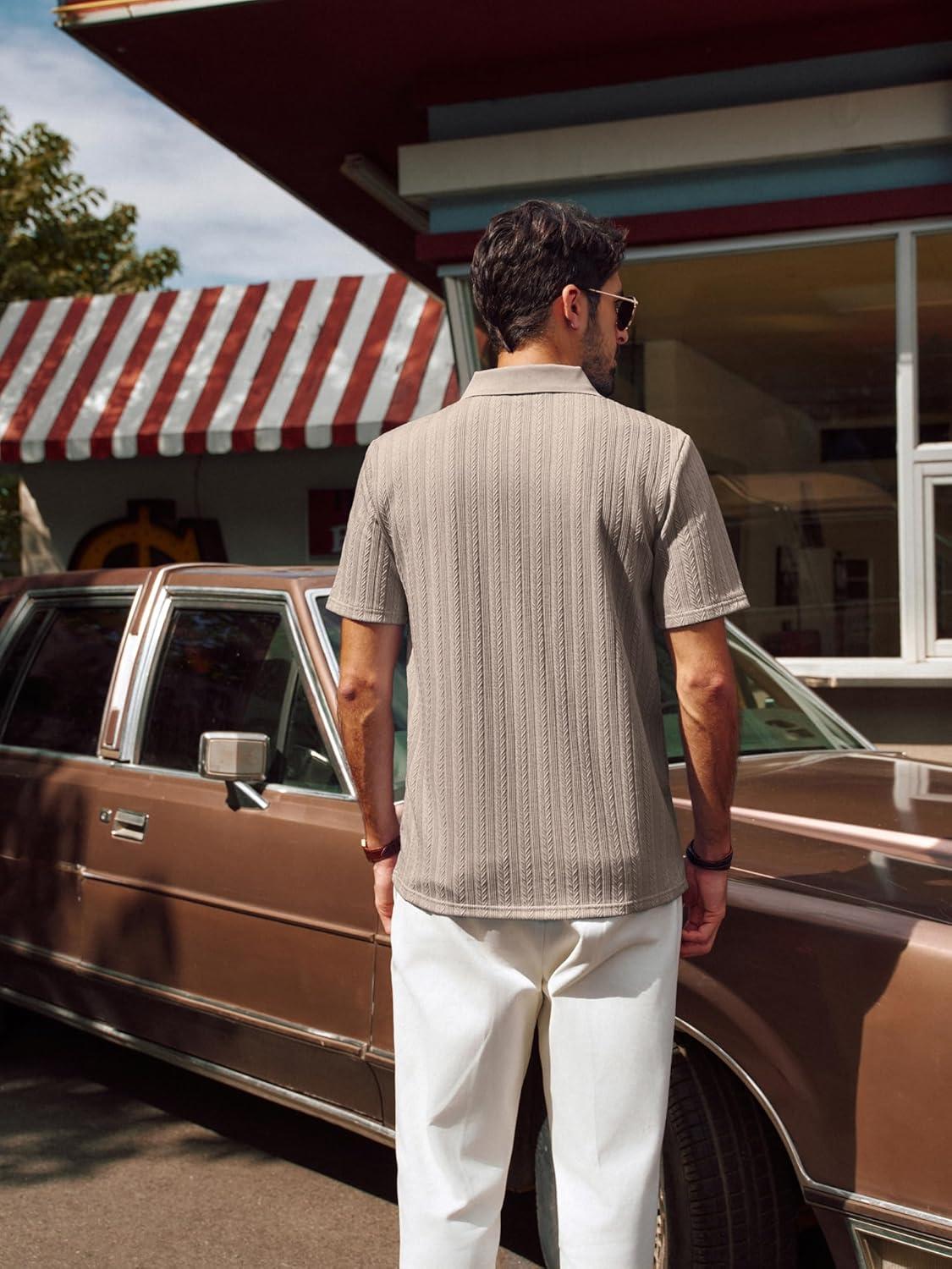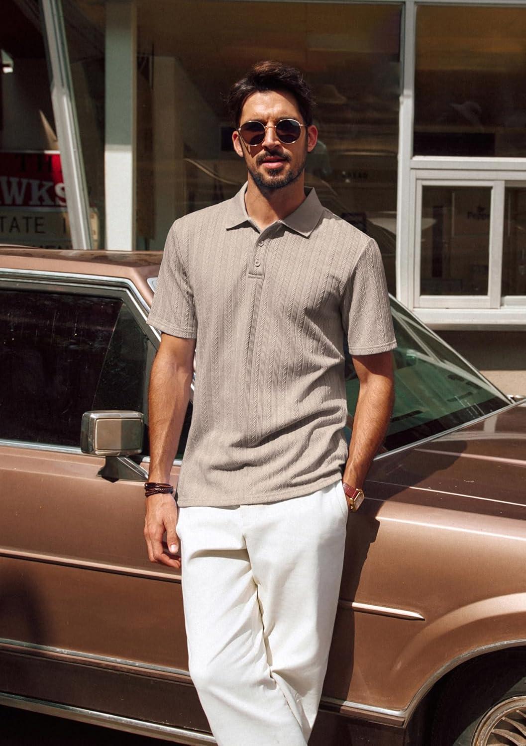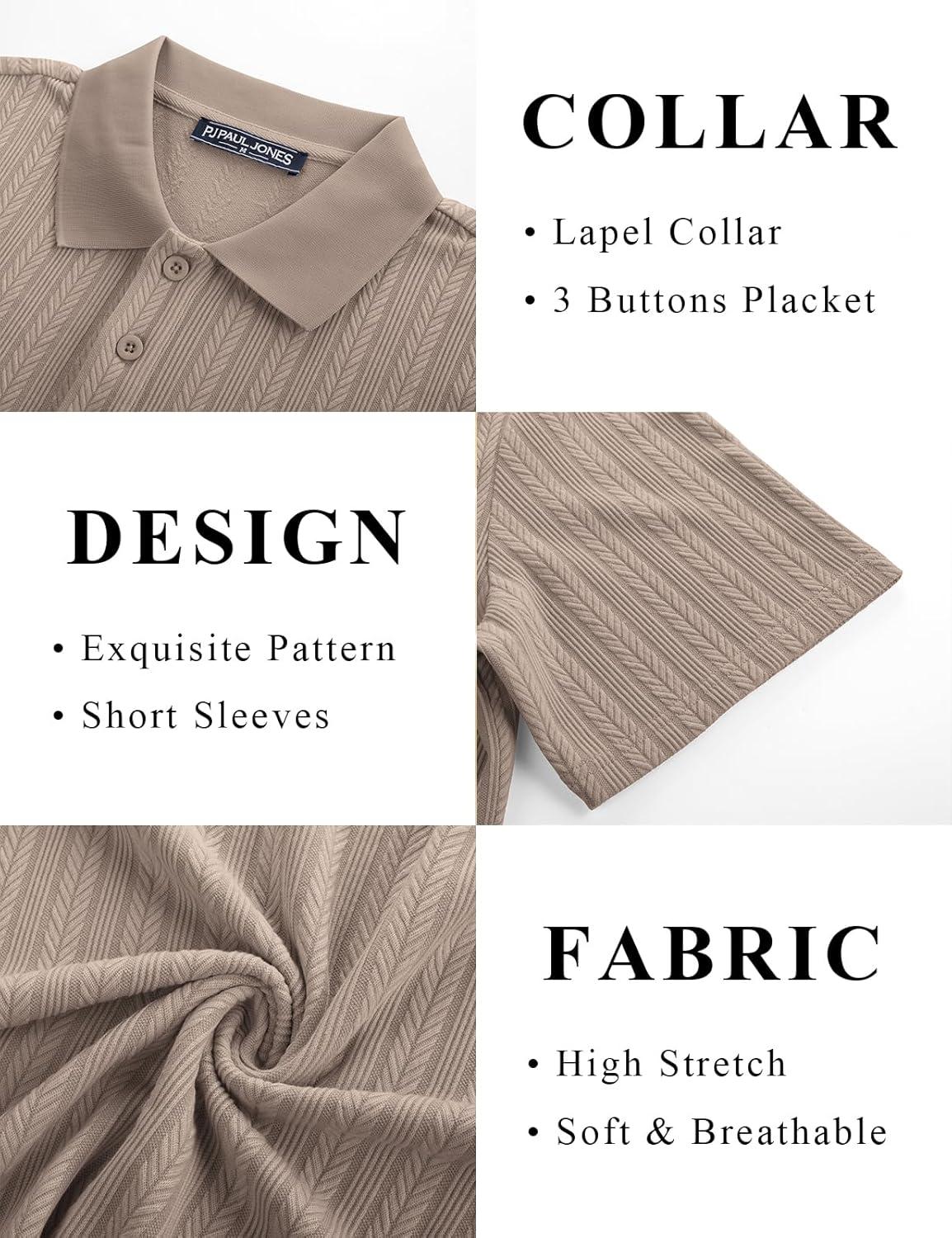 PJ PAUL JONES Mens Polo Shirts Short Sleeve Fashion Textured Polo Shirt Regular Fit Stretchy Golf Shirts(Khaki)