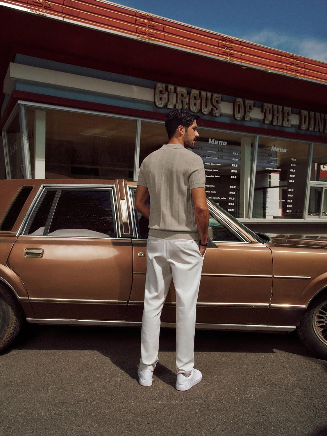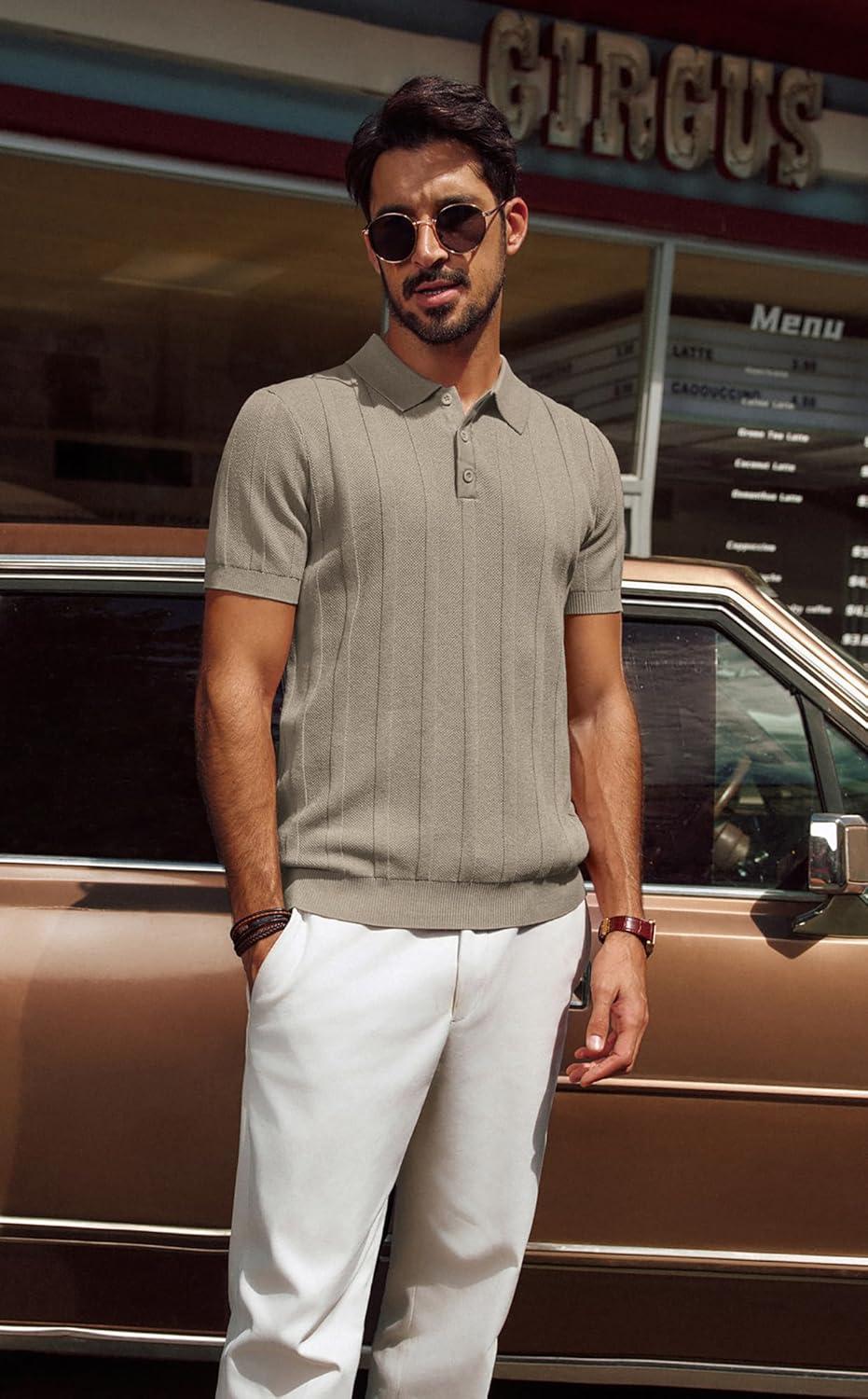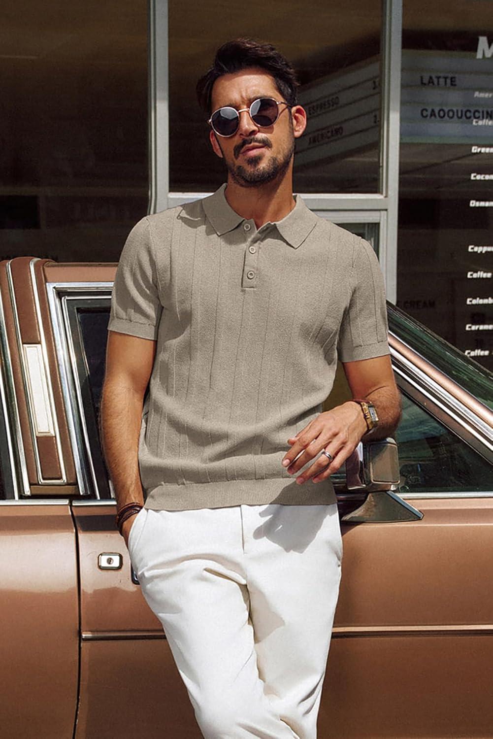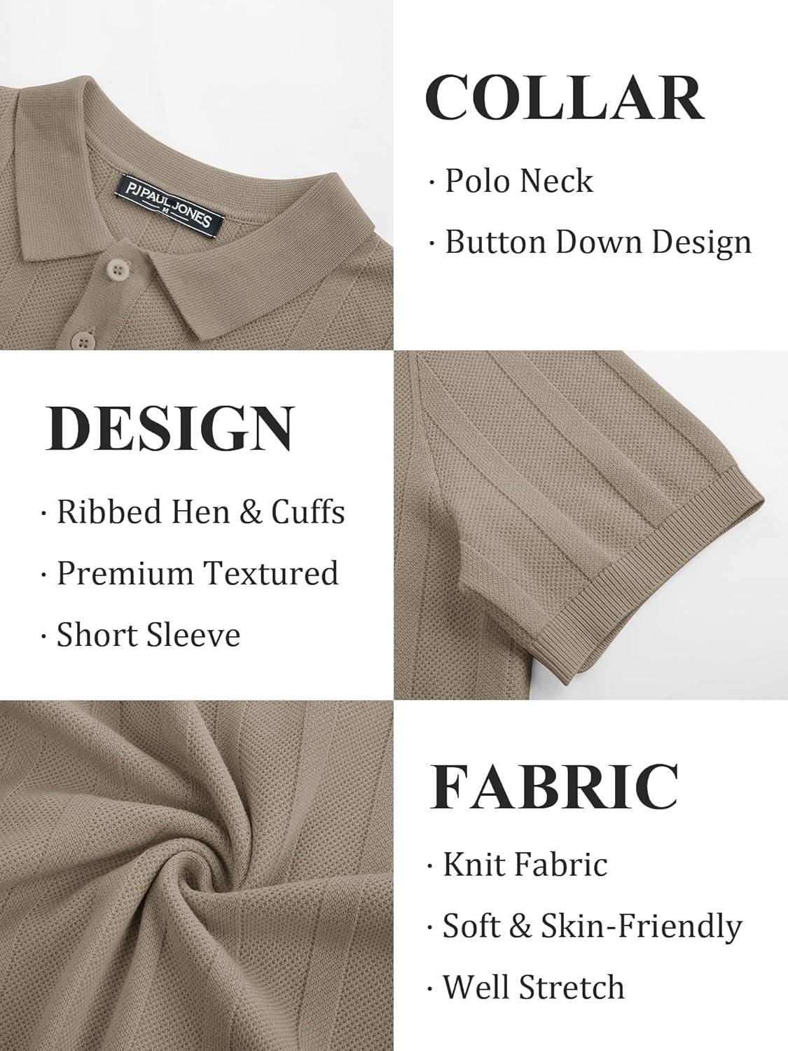 PJ PAUL JONES Mens Polo Shirts Short Sleeve Textured Knit Polo Shirt Ribbed Casual Golf Shirts(Camel)