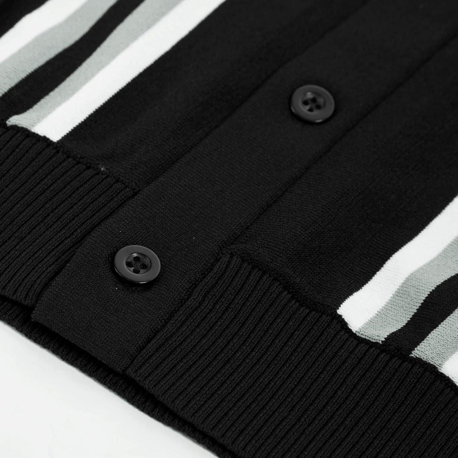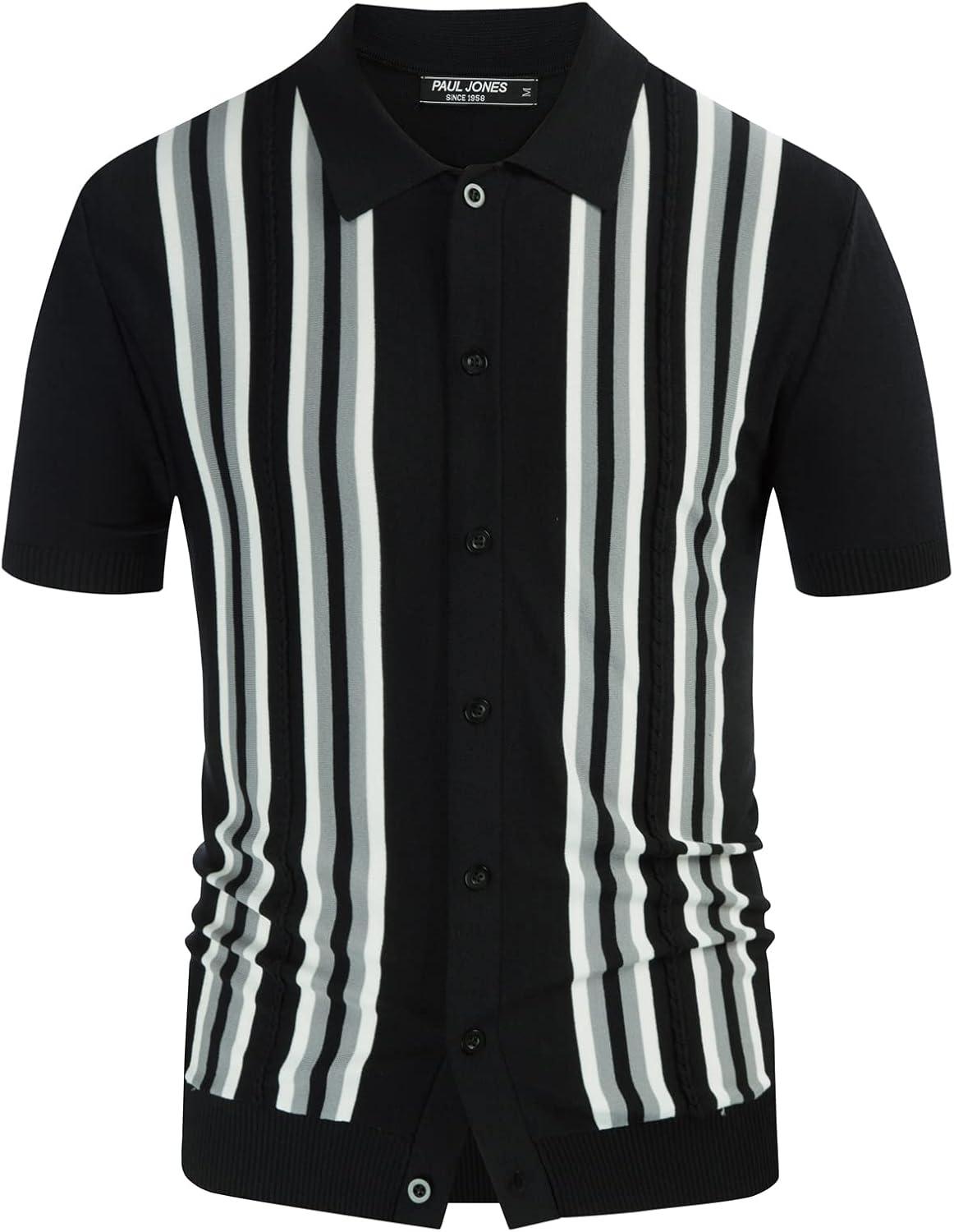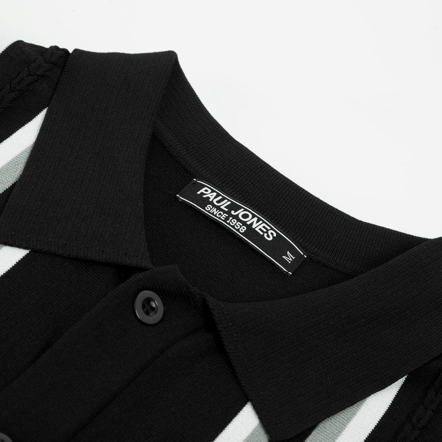 PJ PAUL JONES Mens Polo Shirts Vintage Striped Button Down Knitted Golf Shirts(Black Gray)