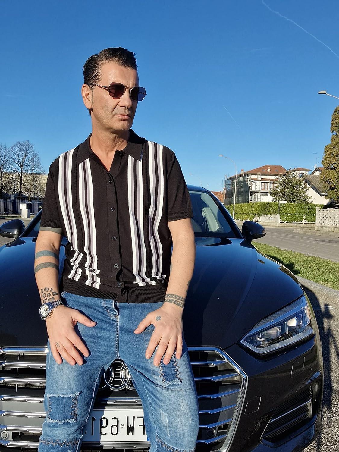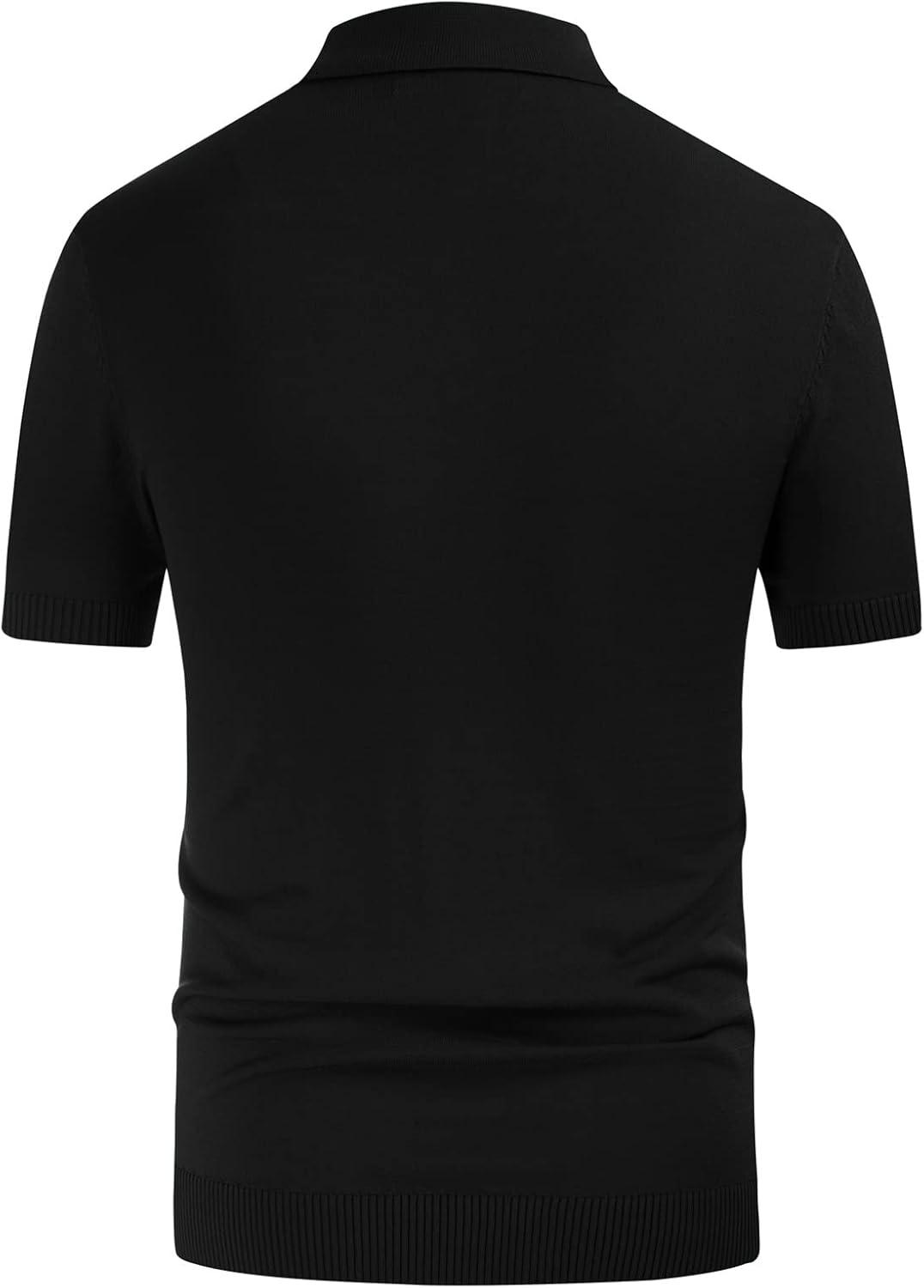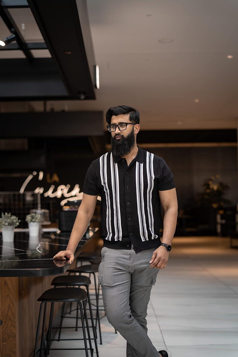 PJ PAUL JONES Mens Polo Shirts Vintage Striped Button Down Knitted Golf Shirts(Black Gray)