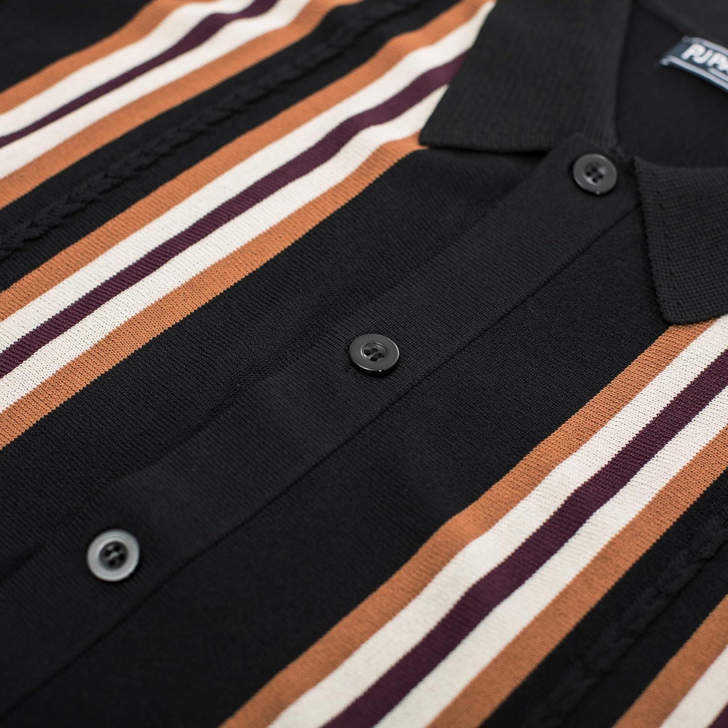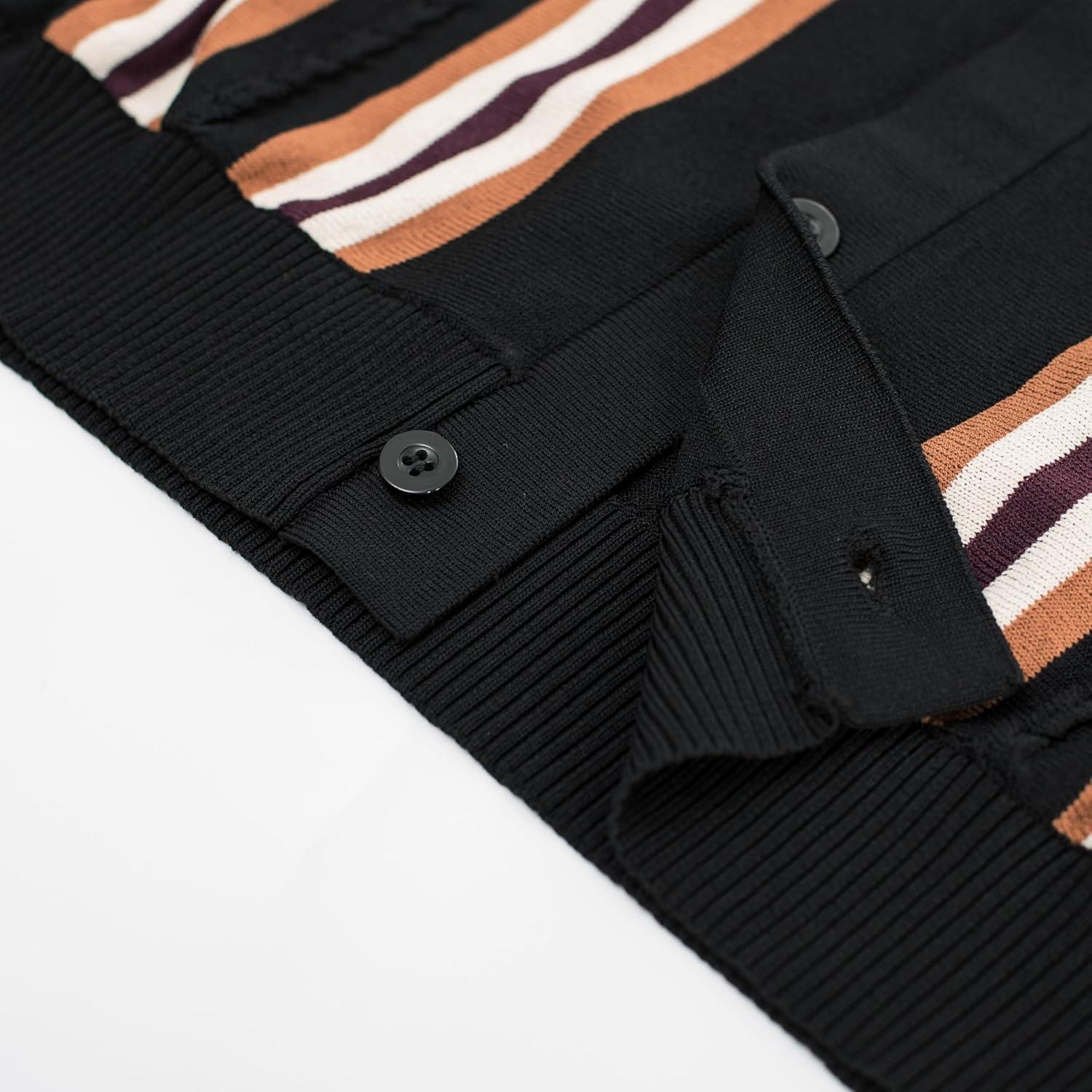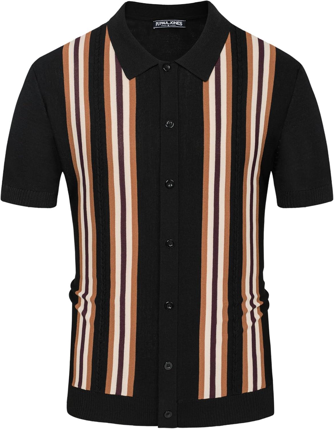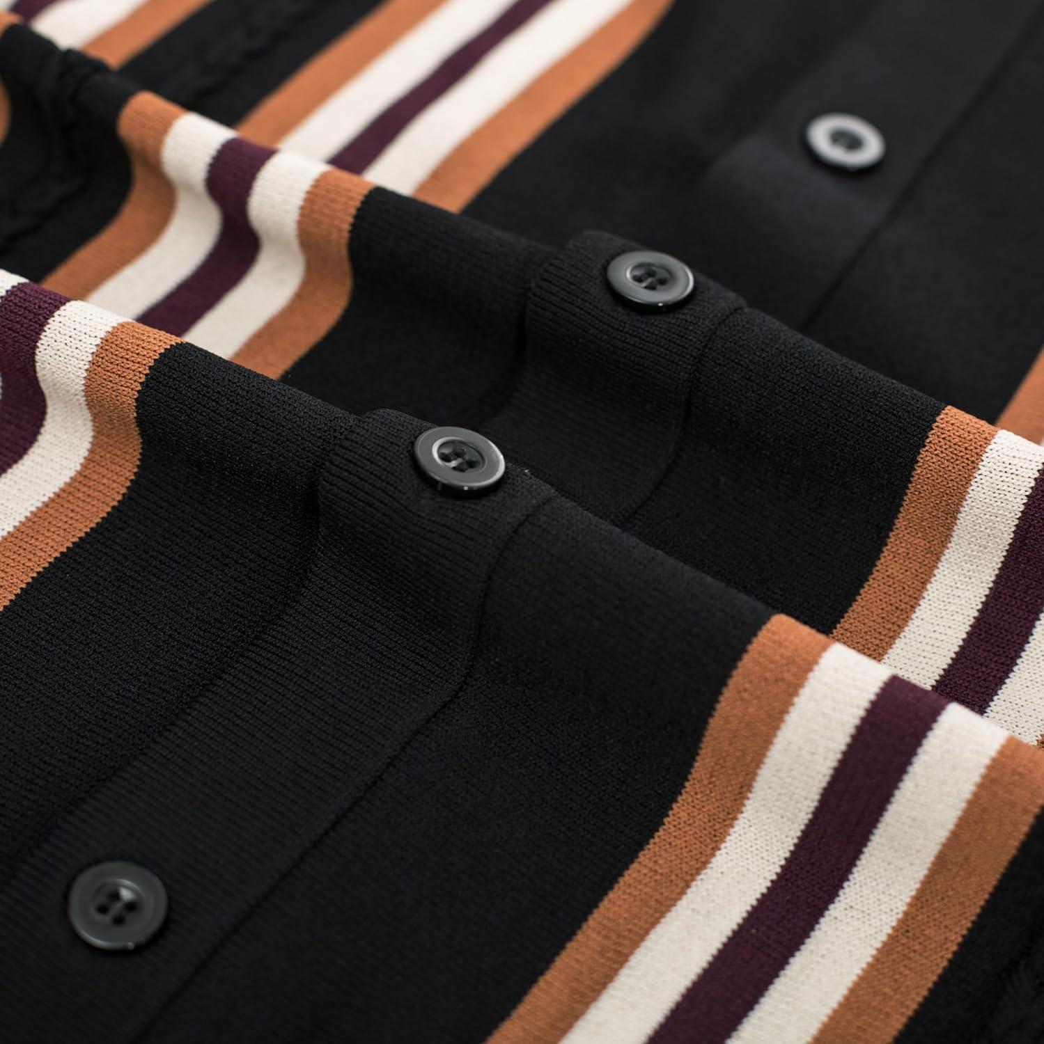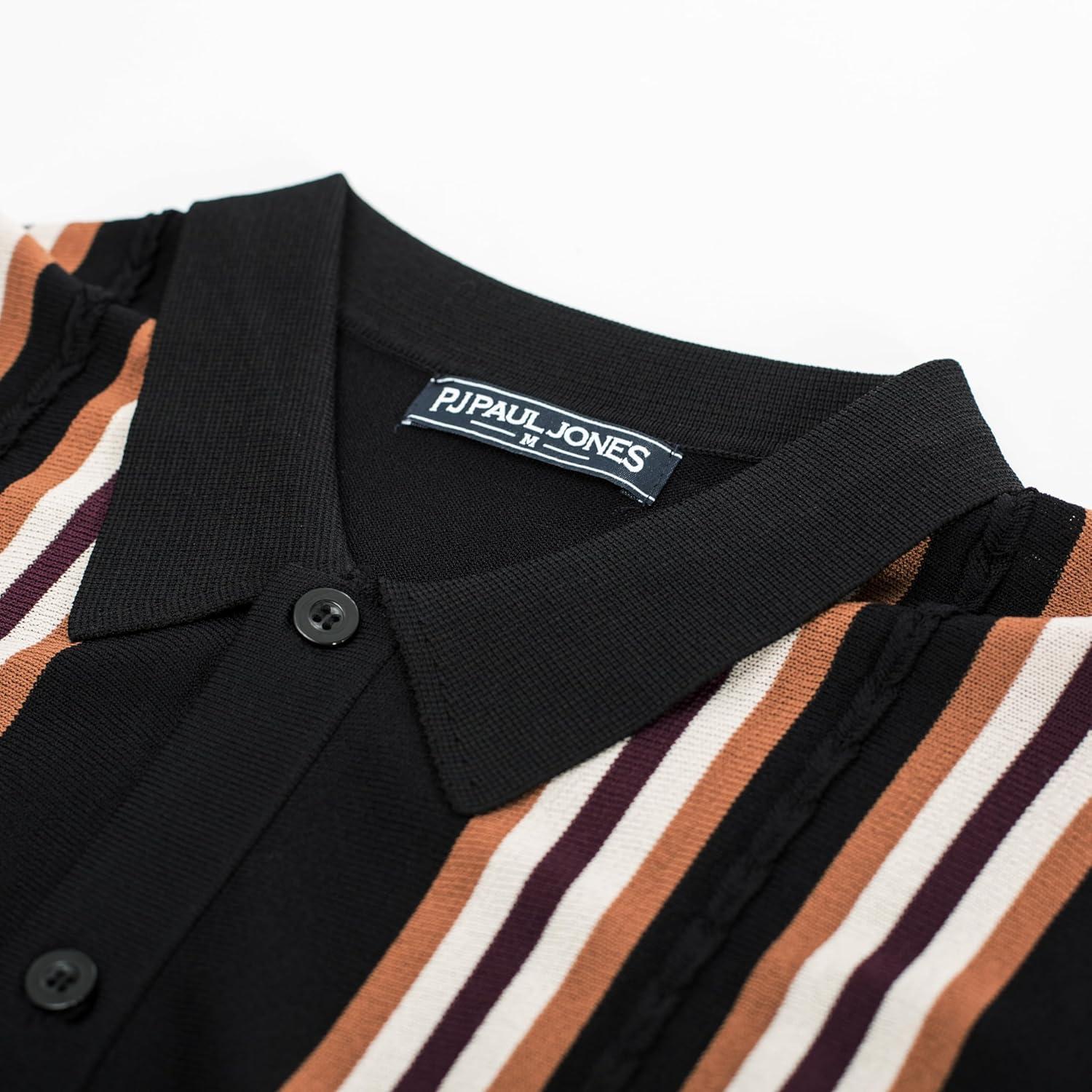 PJ PAUL JONES Mens Polo Shirts Vintage Striped Button Down Knitted Golf Shirts(Black Red)