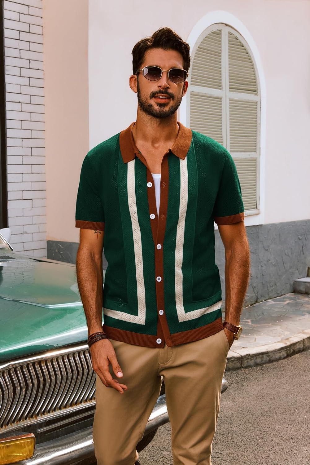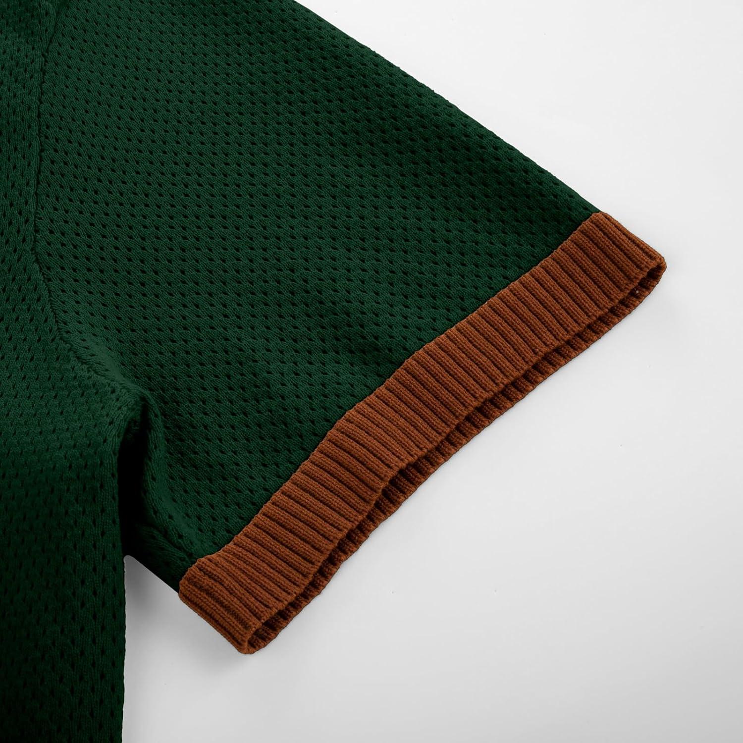 PJ PAUL JONES Mens Polo Shirts Vintage Striped Button Down Knitted Golf Shirts(Dark Green-vintage)