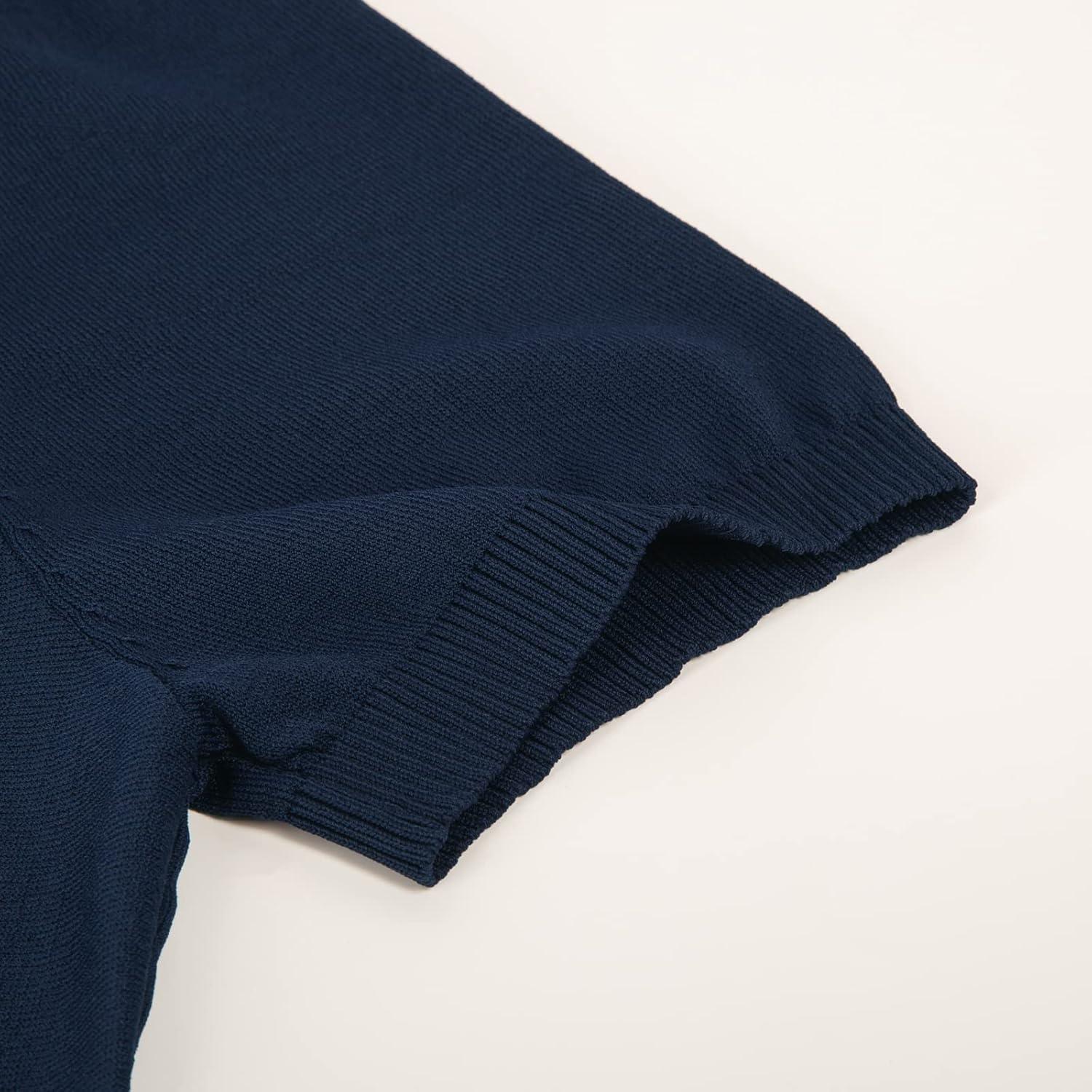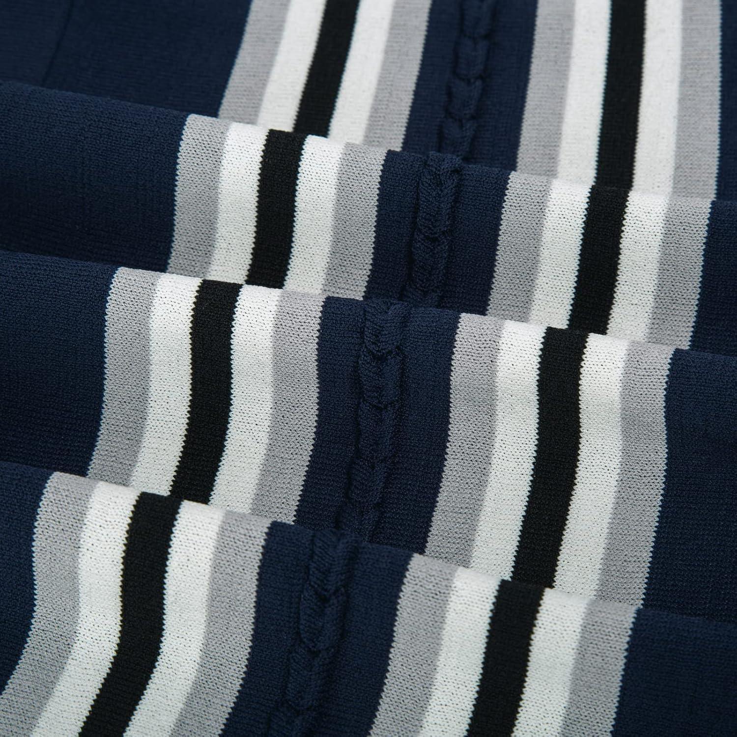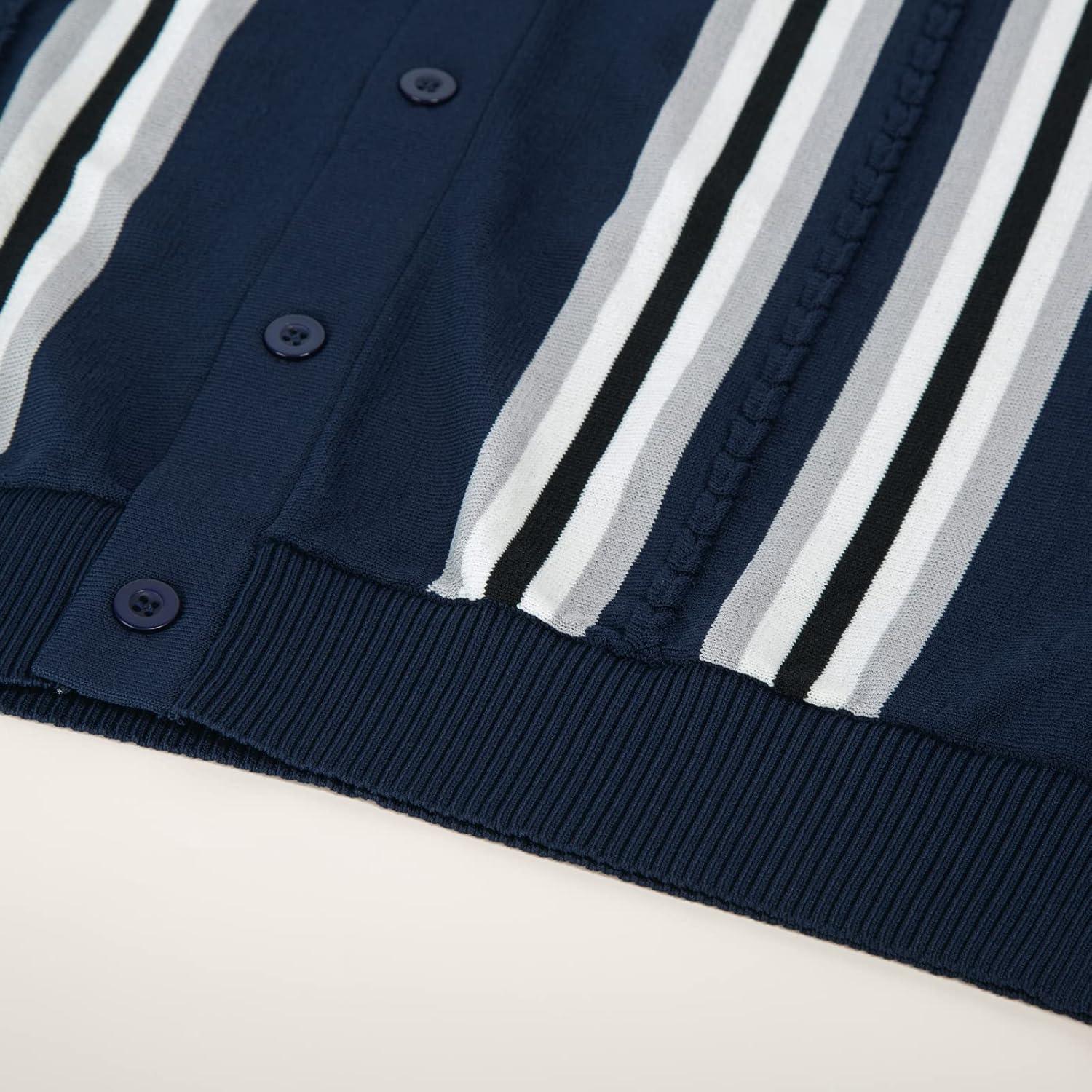 PJ PAUL JONES Mens Polo Shirts Vintage Striped Button Down Knitted Golf Shirts(Navy Blue)
